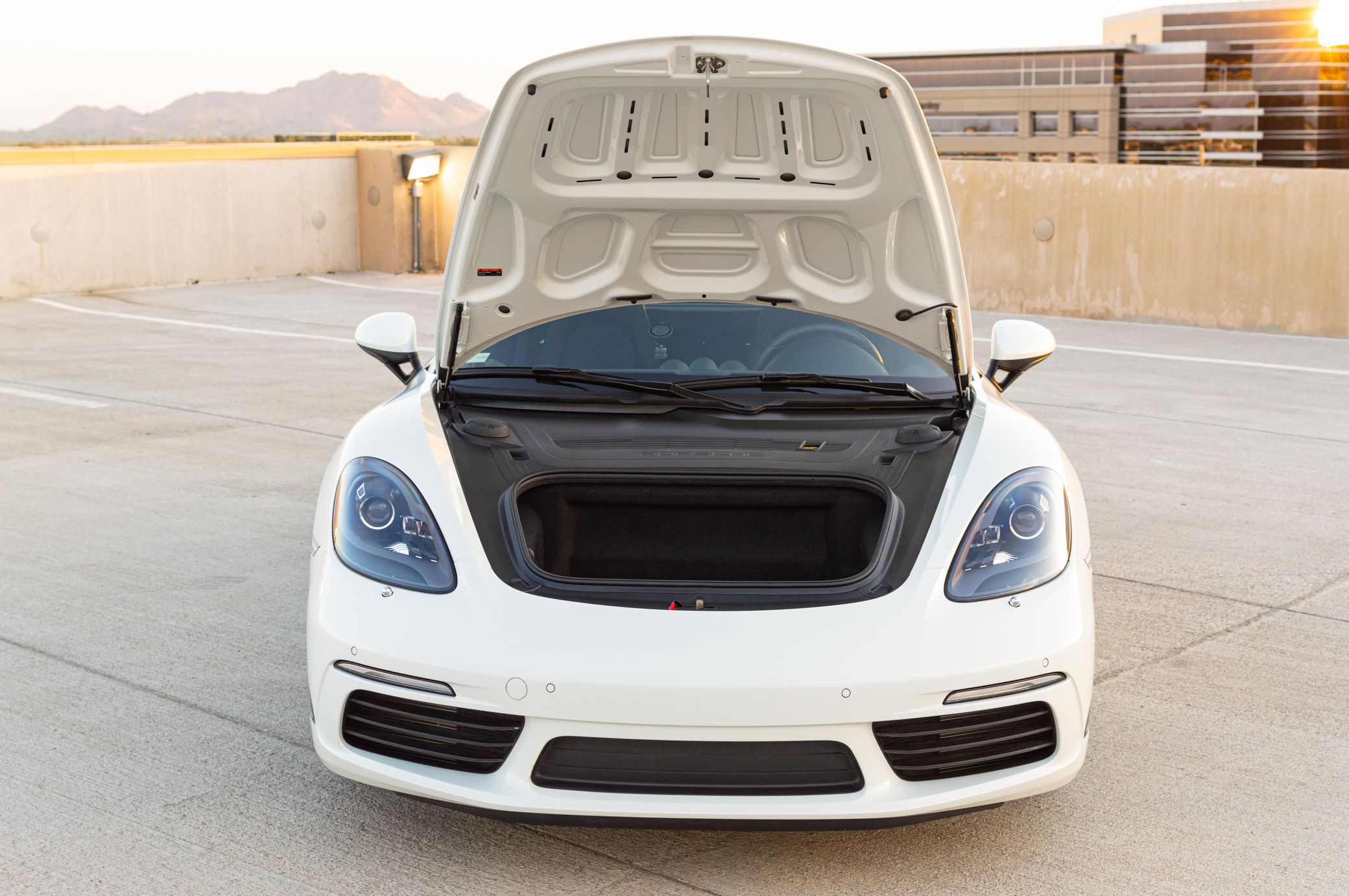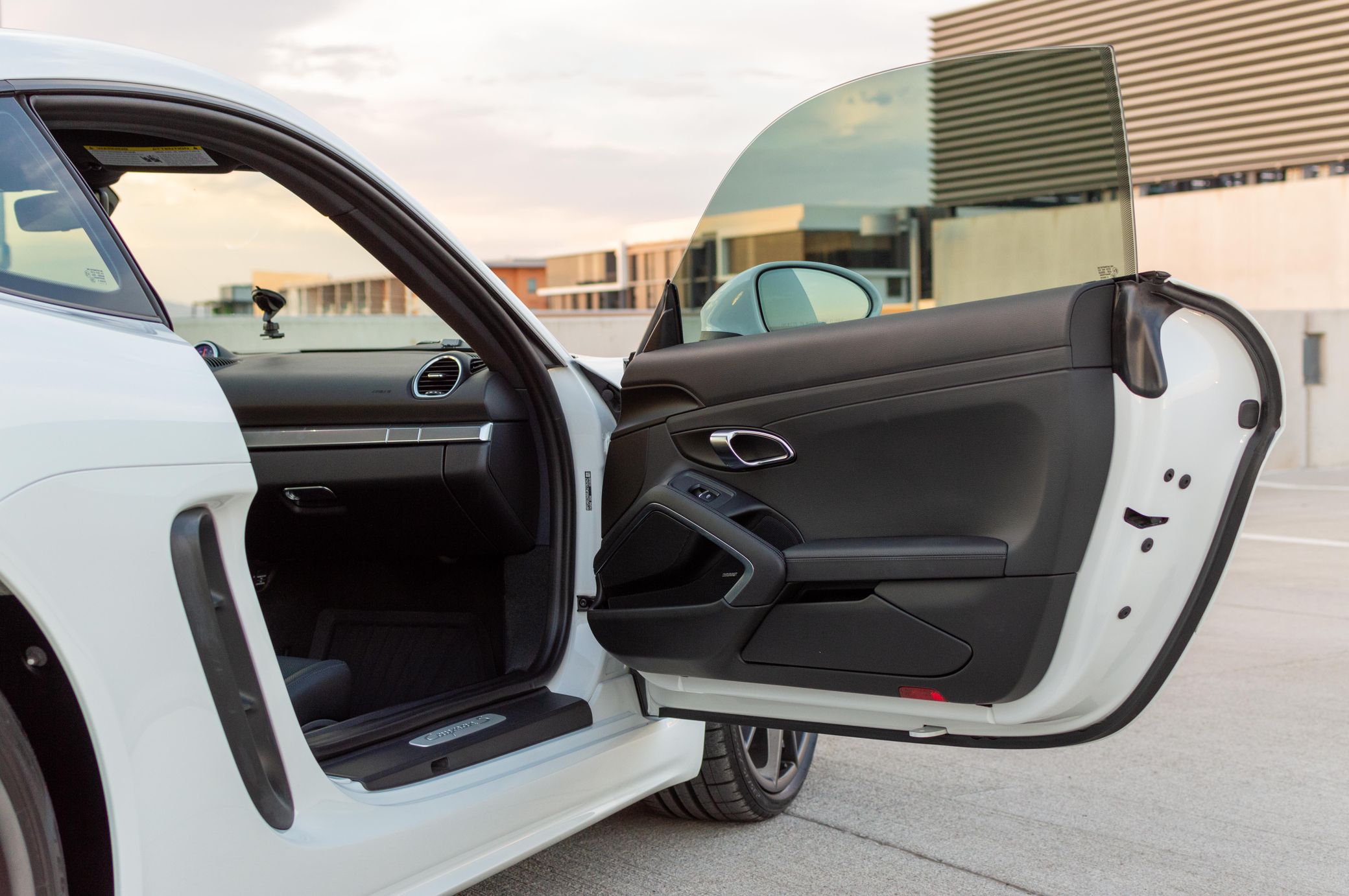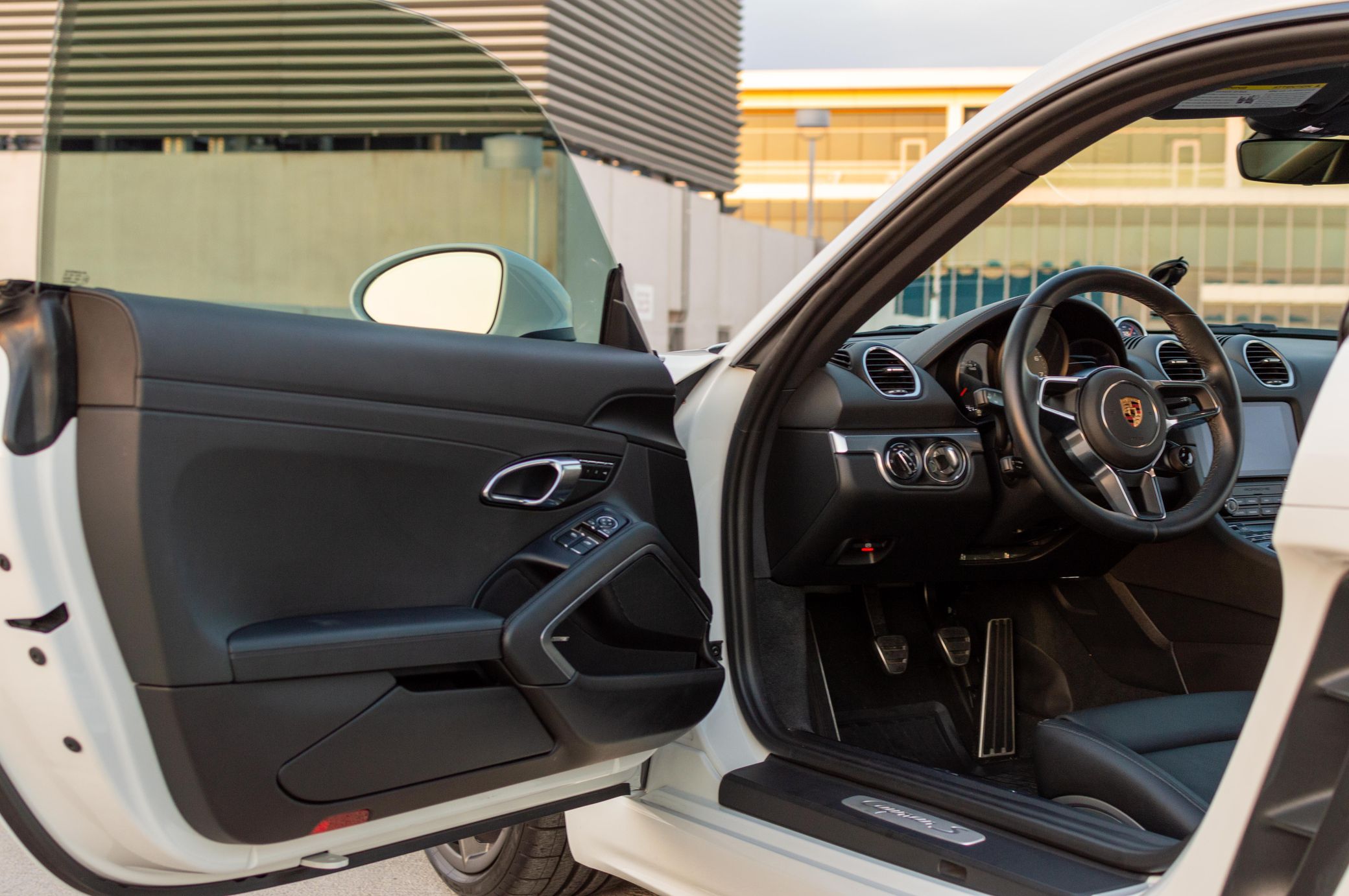 THIS… is a 2018 Porsche 718 Cayman S, finished in white with a black leather interior.