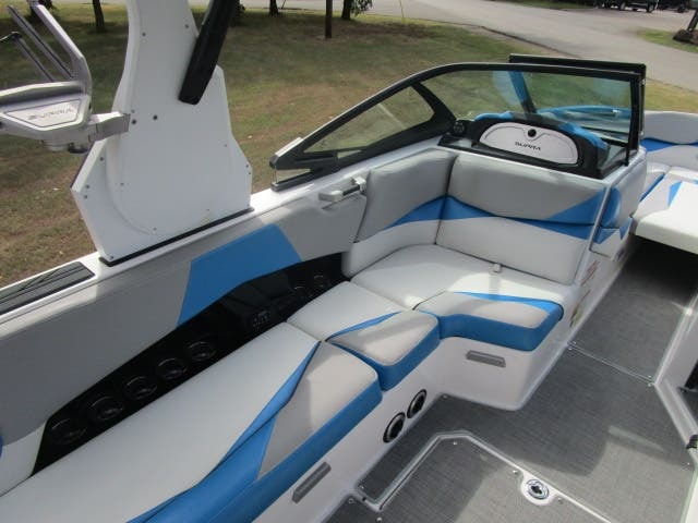 Indmar Roush Edition 6.2L 575 Supercharged V8 Engine, Closed Cooled, 81 Hours, Power Folding Tower w/ Bimini Top, Upgraded Stereo w/ Dual Subs & Tower Speakers, Transom Remote, Touch Screen Controls, SWELL Surf System, Center Hydraulic Smart Plate, Full Ballast System, Autowake Technology, Power & Heated Driver Seat, Swivel Board Racks, Over Tower Mooring Cover, Snap-out SeaGrass Style Flooring, Dual Batteries, Surf Pipe, Docking Lights, Bow Filler Cushion, Tower Rear View Camera, Steering Wheel Controls, Cockpit Heater, Flip-over Aft Seating, Custom Matching Tandem Axle Trailer w/ 18″ Wheels, Spare, Brakes, & Bow Ladder Included!