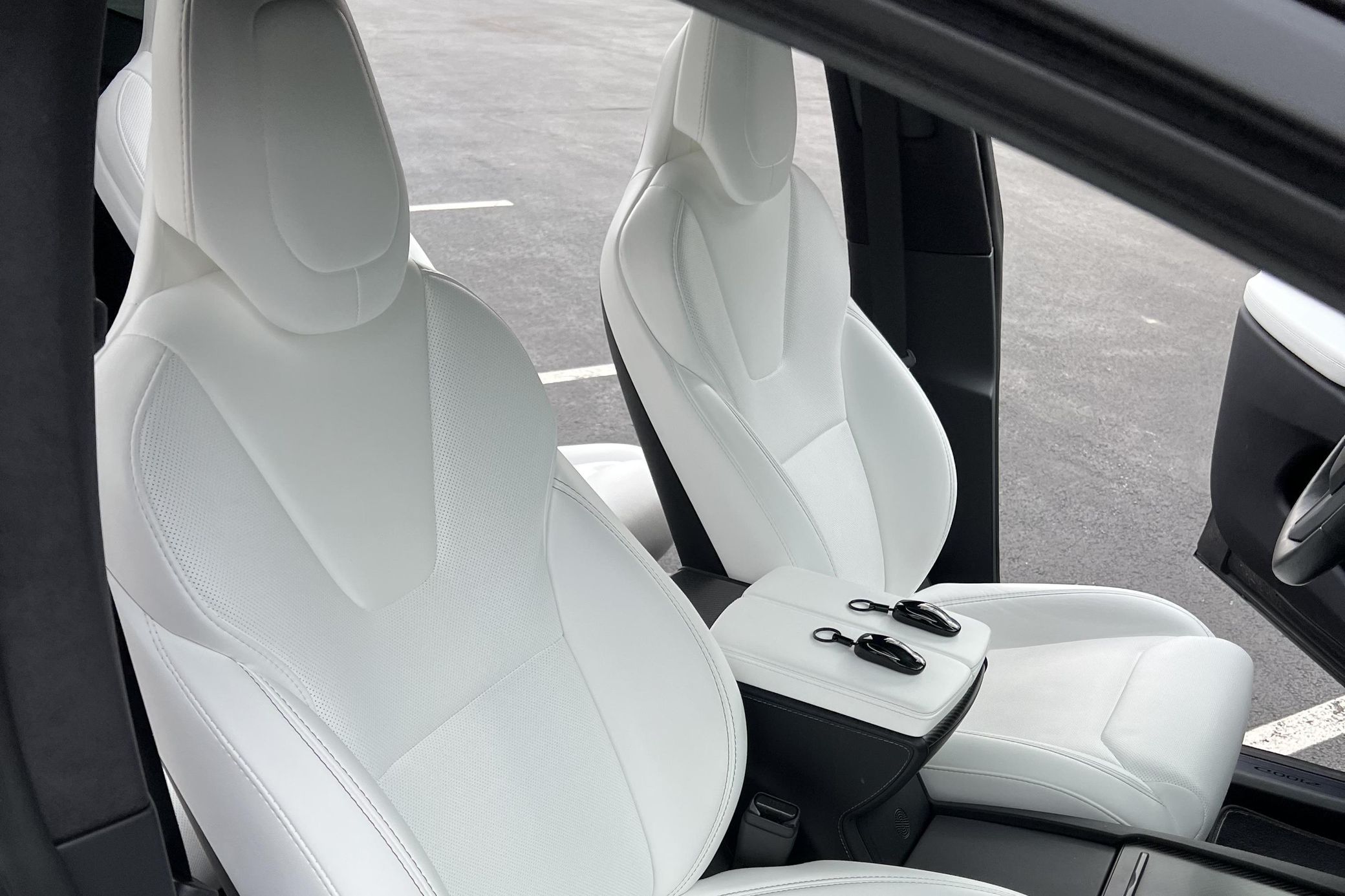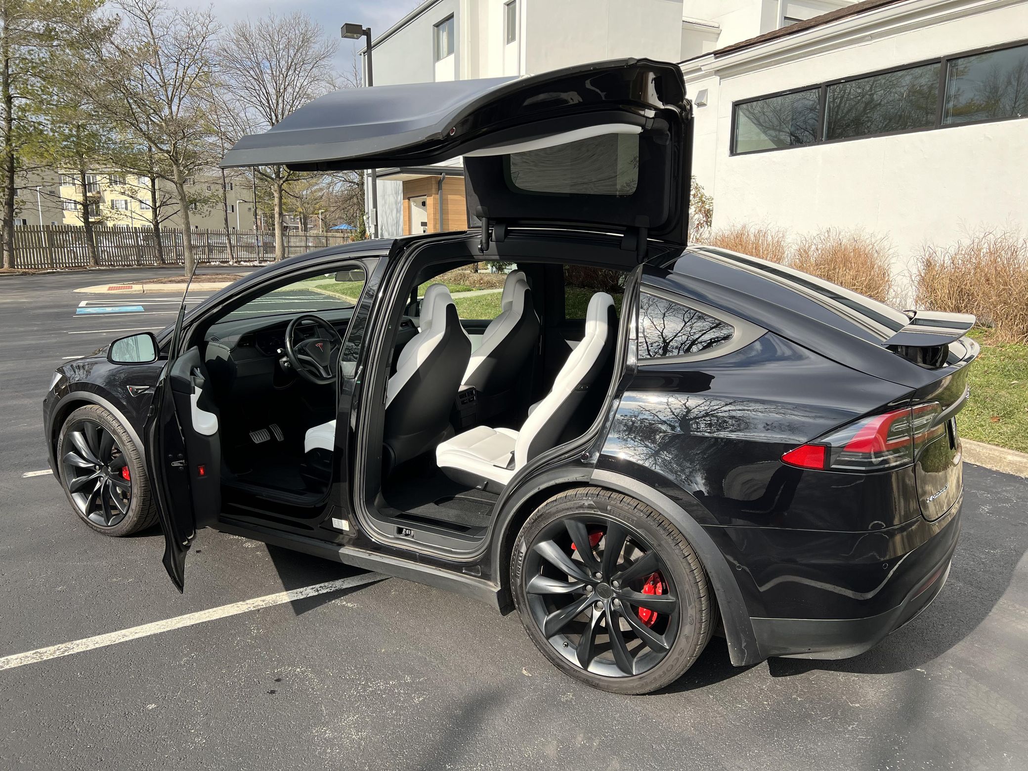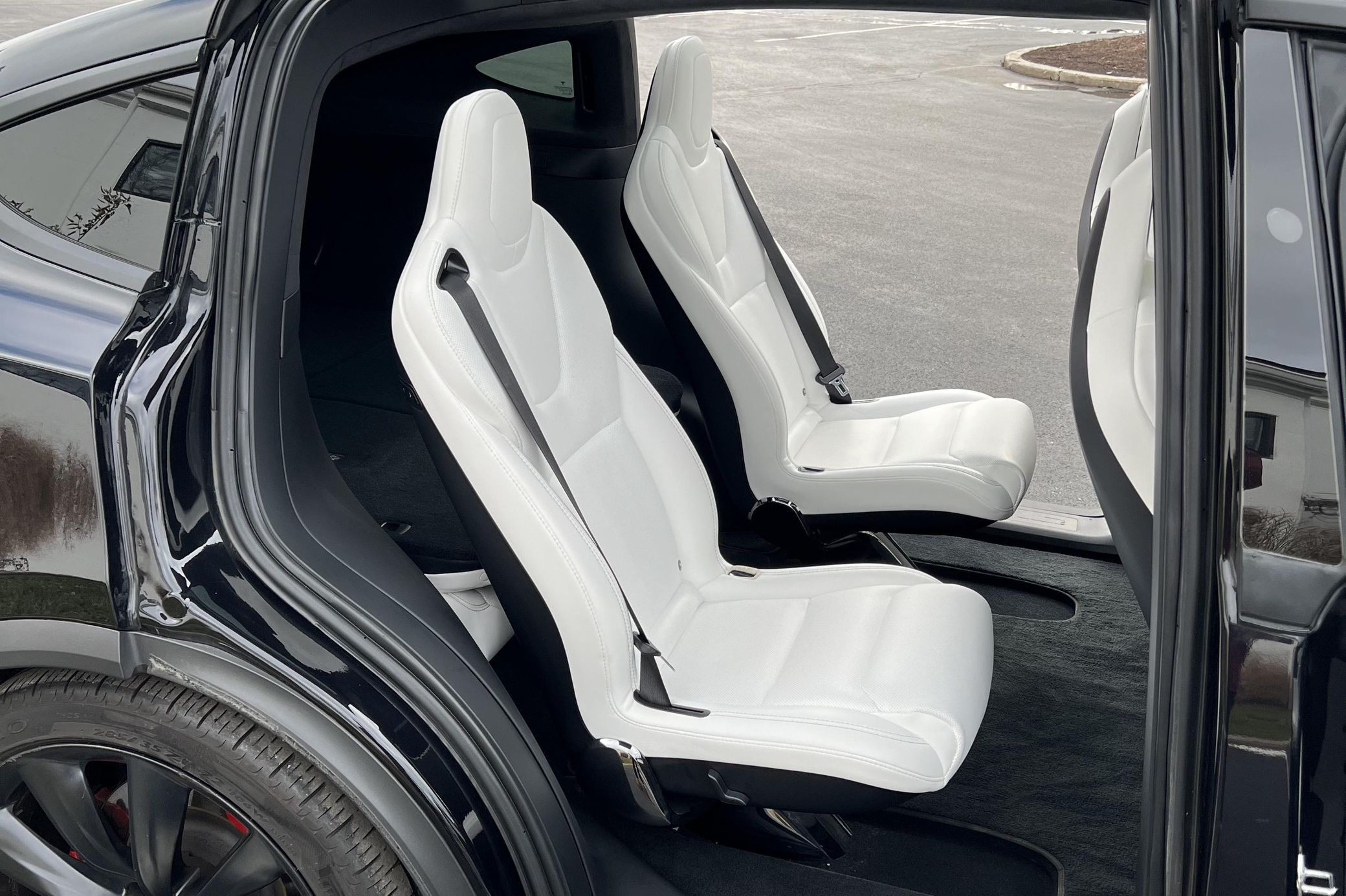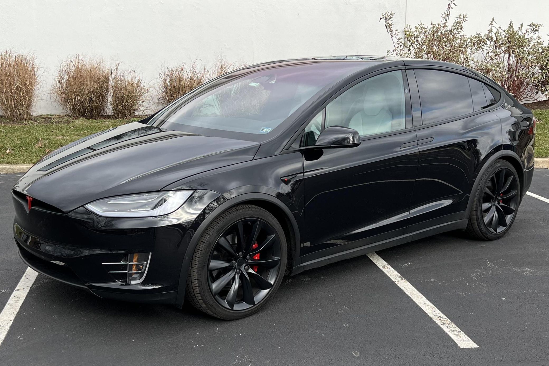 THIS… is a 2018 Tesla Model X P100D, finished in Obsidian Black Metallic with a black and white interior. The attached Carfax history report lists no accidents. It also shows that this is a one-owner SUV. Factory equipment includes Ludicrous and Ludicrous+ driving modes, Full Self-Driving Capability, Enhanced Autopilot technology, the Premium Upgrades Package, 22-inch wheels, an air suspension system, individual second-row seats, folding third-row seats, and a 17-inch touchscreen. This car’s window sticker is pictured in the gallery.