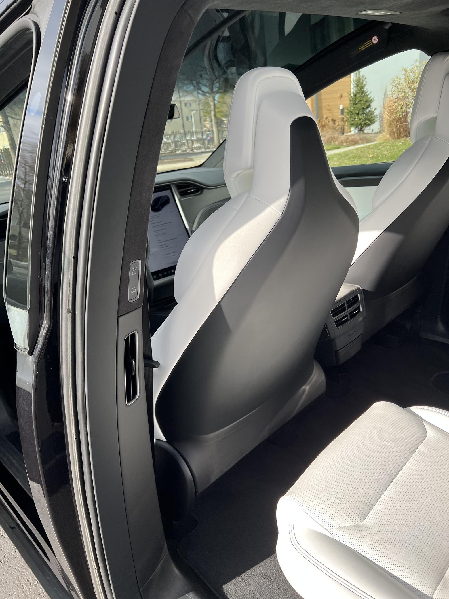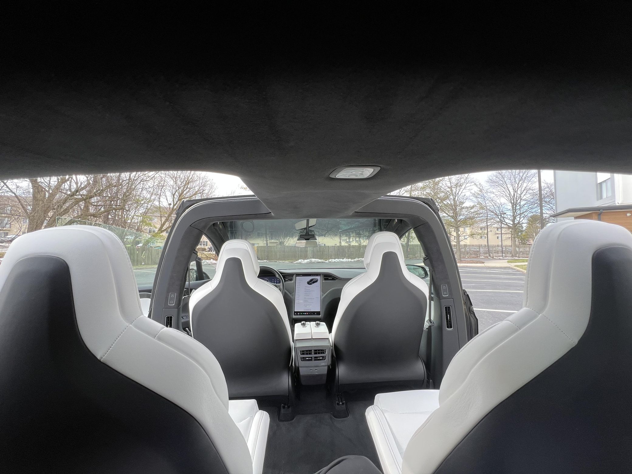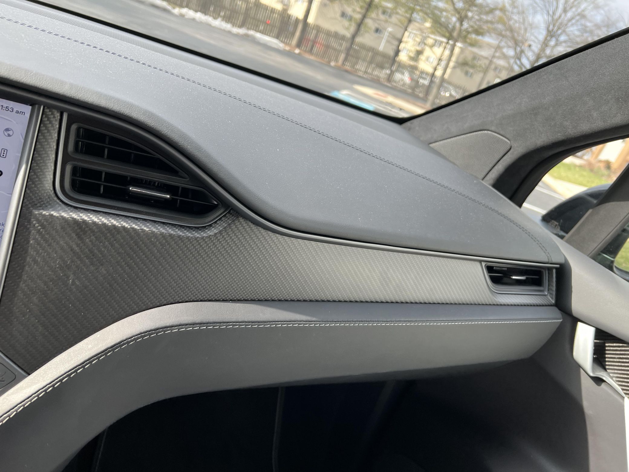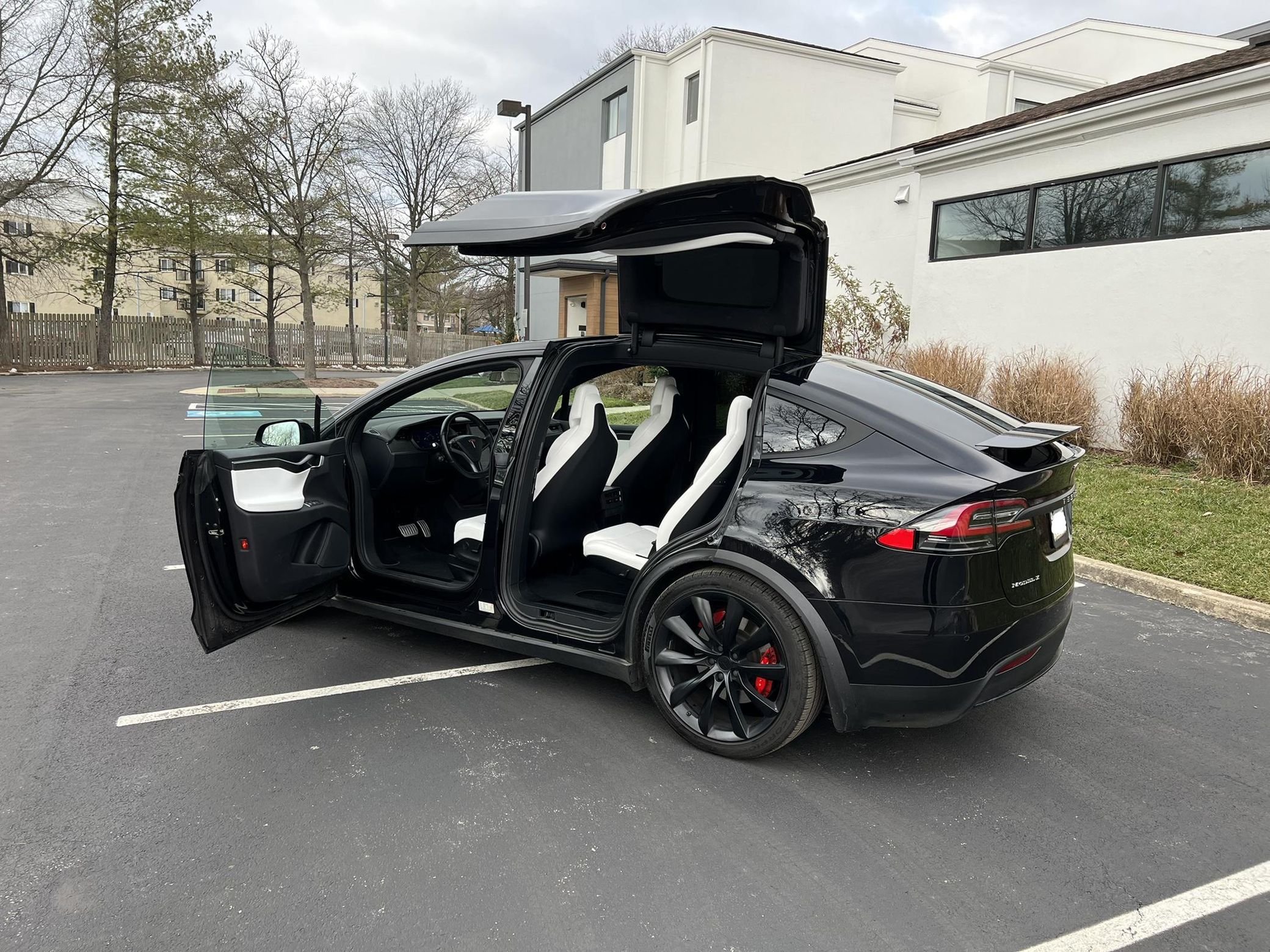 THIS… is a 2018 Tesla Model X P100D, finished in Obsidian Black Metallic with a black and white interior. The attached Carfax history report lists no accidents. It also shows that this is a one-owner SUV. Factory equipment includes Ludicrous and Ludicrous+ driving modes, Full Self-Driving Capability, Enhanced Autopilot technology, the Premium Upgrades Package, 22-inch wheels, an air suspension system, individual second-row seats, folding third-row seats, and a 17-inch touchscreen. This car’s window sticker is pictured in the gallery.