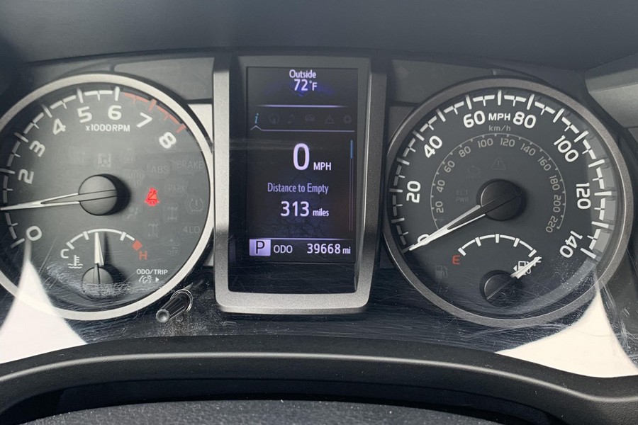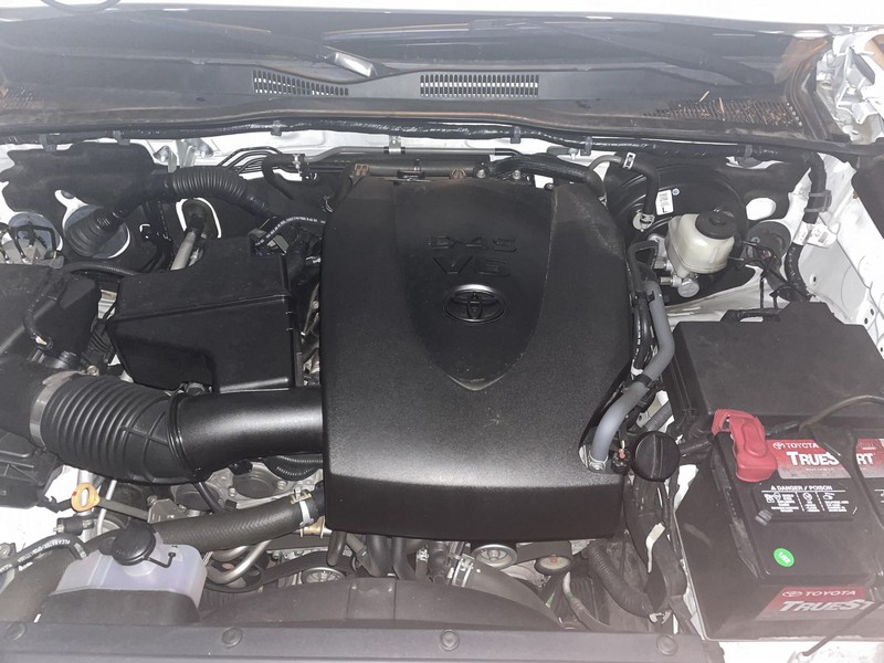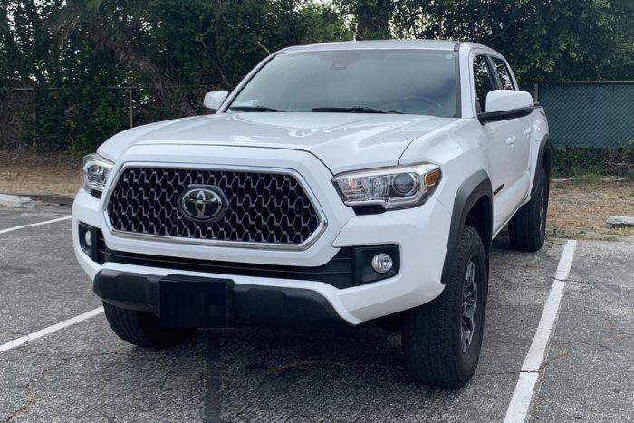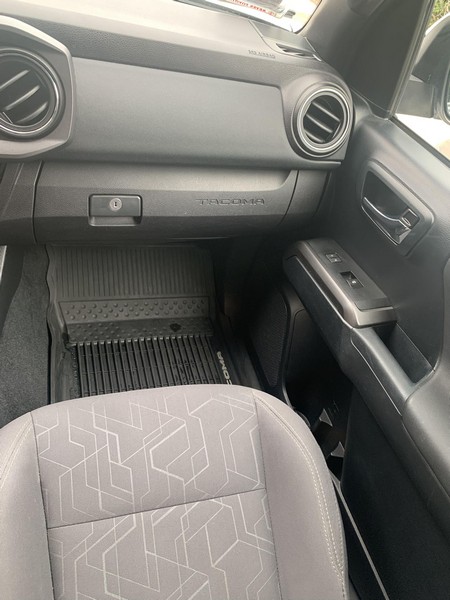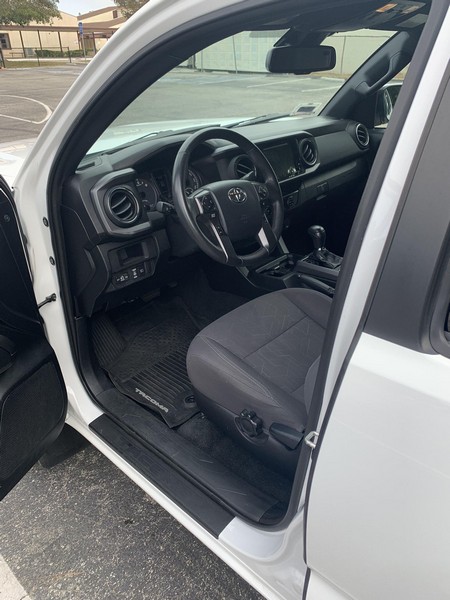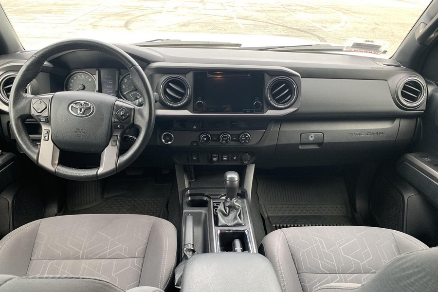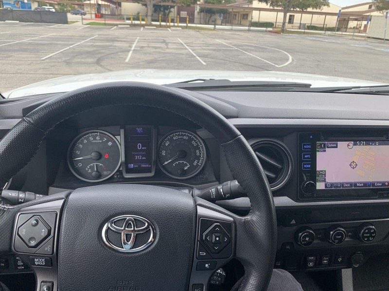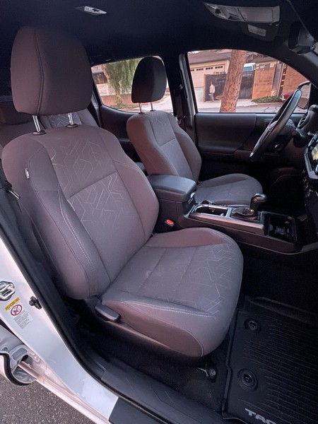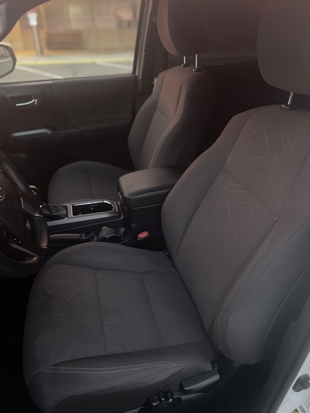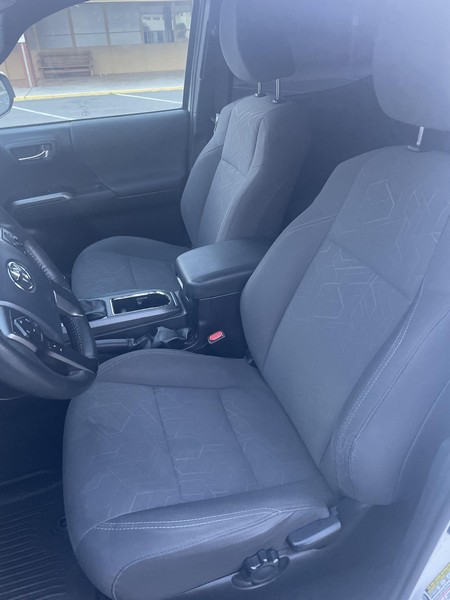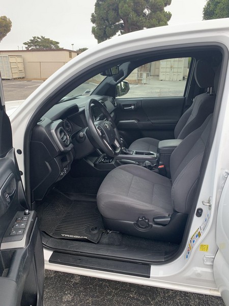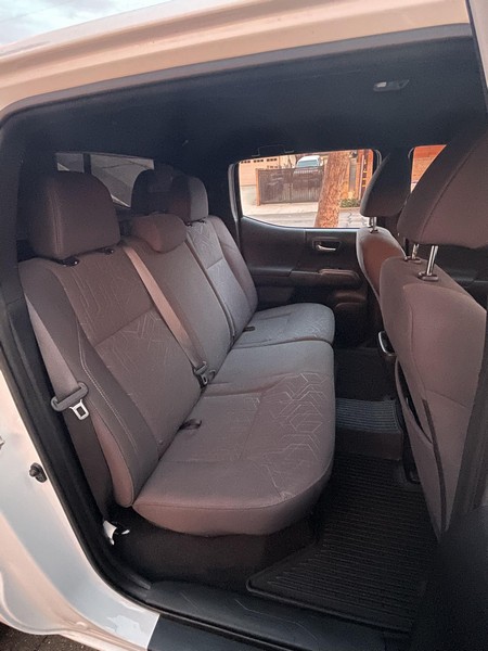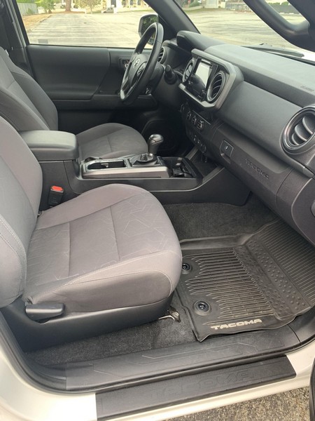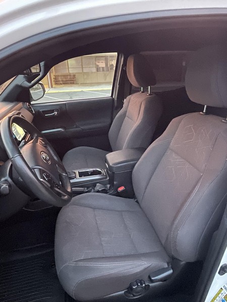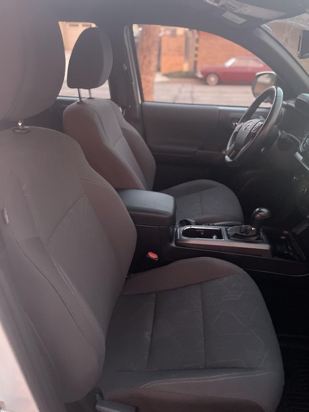 THIS… is a 2018 Toyota Tacoma TRD Off-Road Double Cab, finished in Super White with a Graphite interior. The attached Carfax history report shows no accidents or mileage discrepancies; it also shows that this Tacoma has been registered in California since new. Factory equipment includes a locking rear differential, off-road-tuned suspension with Bilstein shocks, a bed step, a 120V/400W in-deck AC power outlet, a power-sliding rear window with privacy glass, remote keyless entry, a wireless charger, and Toyota Safety Sense P safety systems. The seller reports no modifications. Power comes from a 3.5-liter V6 engine, rated at 278 horsepower and 265 lb-ft of torque. Output is sent to the rear wheels via a 6-speed automatic transmission.