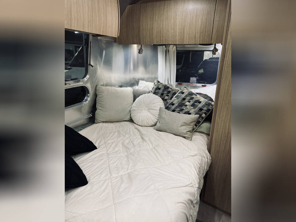 2019 Flying Cloud 19CB corner bed with the wild honey and landmark wood interior. Low usage and stored indoors from the elements, this Flying cloud comes with several extras in addition to the standard options offered by Airstream: Solar Panel, Window Awning Package, Convection Microwave, 3 Burner Cooktop, Remote Tire Pressure Monitoring System, Soft starter for AC, Upgraded Smart TV,Samsung DVD Player, HDMI Cable and Apple adapter to stream from an iPhone or iPad, Complete Hitch and Stabilizer Bar System, Small Portable Gas Grill, Portable Inflatable Automatic Air Mattress.