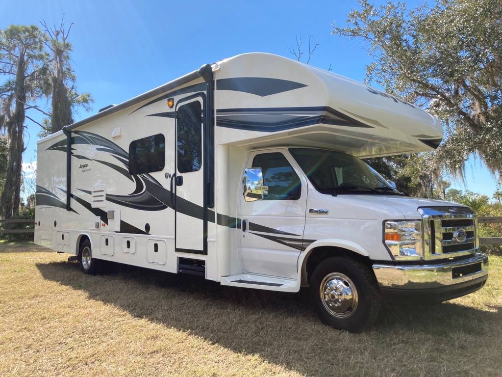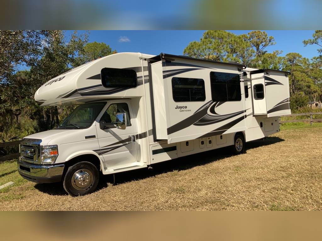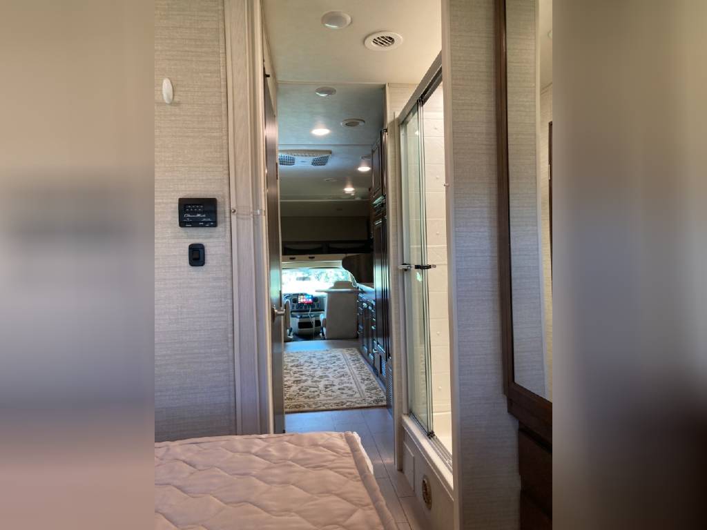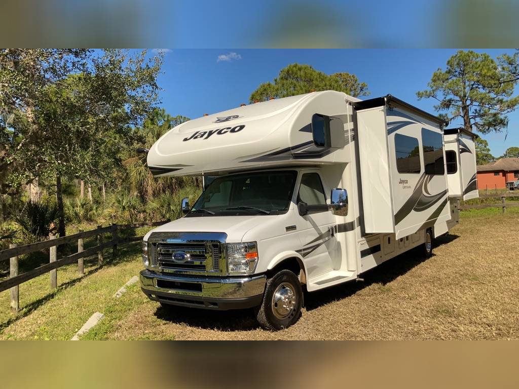 Garage kept, Upgraded steering stabilizer, mint condition, ceremic finish, additional roof sealant, new batteries, etc. The Jayco Difference:1. One-piece seamless fiberglass front cap for increased durability and protection2. 82-inch x 30-inch automotive-bonded panoramic windshield in front cap3. 750-pound overhead bunk capacity offers nearly 250 pounds more than the industry average for greater safety and peace of mind4. Integrated electric step maximizes ground clearance and floor space5. Integrated third brake light improves safety on the road6. Seatbelts in every seating position7. Frameless windows make exterior maintenance easier than ever and give the unit a sleek, modern look COMPUTER-BALANCED DRIVESHAFT Ensures smooth and efficient power transfer to the wheels… STANDARD FRONT STABILIZER BAR Reduces the body roll of a vehicle during cornering or over road irregularities… HEAVY-DUTY REAR STABILIZER BAR A larger bar and polyurethane bushings, instead of rubber, transfer power faster for extra support, more stability and easier handling… BILSTEIN® SHOCK ABSORBERS Feature a unique monotube gas-pressure design, providing optimum ride quality and vehicle control… HELLWIG® HELPER SPRINGS Work with the chassis’ existing springs to give the RV more support, improving stability under heavy loads.6.8L v10 (9,231 miles), Dual Ac’s, 50 AMP, Power Awnings, Auto Level Hydraulic Jacks, Onan 4k Gen, Original tires/batteries. STANDARD INTERIOR EQUIPMENT84 in. interior ceiling height with padded vinyl ceilingHigh-intensity, recessed LED ceiling lightsLED-lit, hardwood fasciaHardwood cabinet doors and drawersBall-bearing drawer guidesInterior command centerBlackout night roller shades31,000 BTU auto-ignition furnace6 gal. gas/electric DSI auto-ignition water heaterBlu-Ray™ player in living areaPrep for satellite dishCable TV hookup with RG-6 coaxDigital antenna with signal booster8 cu. ft., flush-mount, double-door refrigeratorFurrion® all-in-one cooktop and ovenResidential-sized microwaveIntegrated stainless steel kitchen sink with cutting board and grate sink coverLED-lit, pressed countertopsFlip-up countertop extension (select models) Decorative kitchen backsplashPop-up charging station with 110 outlet and USB plugsWater filtration systemShower with decorative surround, glass door, skylight and lightStainless steel bathroom sinkToilet with foot flushPowered roof vent in bathroom with wall switch Walk-around Queen-sized bed with bedspread and nightstandsUnder-bed storage (select models)Large wardrobesOverhead bunk with 750 lb. capacity