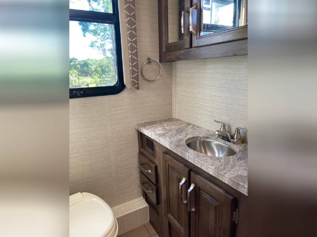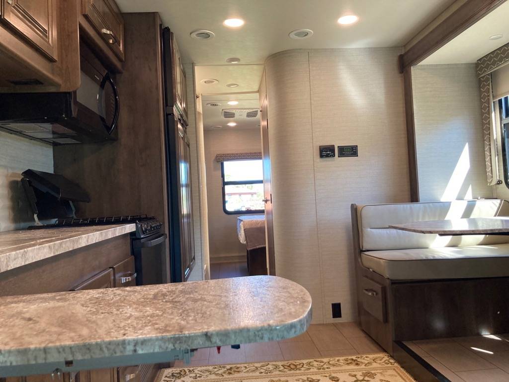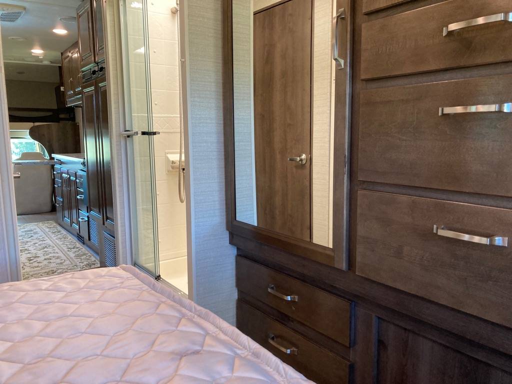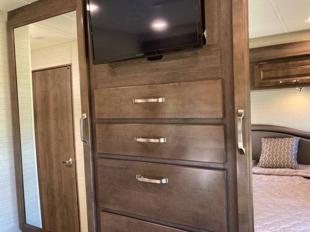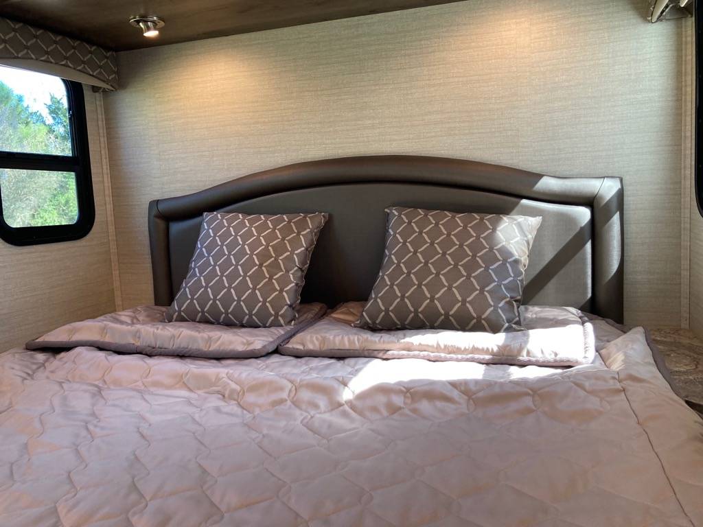 Garage kept, Upgraded steering stabilizer, mint condition, ceremic finish, additional roof sealant, new batteries, etc. The Jayco Difference:1. One-piece seamless fiberglass front cap for increased durability and protection2. 82-inch x 30-inch automotive-bonded panoramic windshield in front cap3. 750-pound overhead bunk capacity offers nearly 250 pounds more than the industry average for greater safety and peace of mind4. Integrated electric step maximizes ground clearance and floor space5. Integrated third brake light improves safety on the road6. Seatbelts in every seating position7. Frameless windows make exterior maintenance easier than ever and give the unit a sleek, modern look COMPUTER-BALANCED DRIVESHAFT Ensures smooth and efficient power transfer to the wheels… STANDARD FRONT STABILIZER BAR Reduces the body roll of a vehicle during cornering or over road irregularities… HEAVY-DUTY REAR STABILIZER BAR A larger bar and polyurethane bushings, instead of rubber, transfer power faster for extra support, more stability and easier handling… BILSTEIN® SHOCK ABSORBERS Feature a unique monotube gas-pressure design, providing optimum ride quality and vehicle control… HELLWIG® HELPER SPRINGS Work with the chassis’ existing springs to give the RV more support, improving stability under heavy loads.6.8L v10 (9,231 miles), Dual Ac’s, 50 AMP, Power Awnings, Auto Level Hydraulic Jacks, Onan 4k Gen, Original tires/batteries. STANDARD INTERIOR EQUIPMENT84 in. interior ceiling height with padded vinyl ceilingHigh-intensity, recessed LED ceiling lightsLED-lit, hardwood fasciaHardwood cabinet doors and drawersBall-bearing drawer guidesInterior command centerBlackout night roller shades31,000 BTU auto-ignition furnace6 gal. gas/electric DSI auto-ignition water heaterBlu-Ray™ player in living areaPrep for satellite dishCable TV hookup with RG-6 coaxDigital antenna with signal booster8 cu. ft., flush-mount, double-door refrigeratorFurrion® all-in-one cooktop and ovenResidential-sized microwaveIntegrated stainless steel kitchen sink with cutting board and grate sink coverLED-lit, pressed countertopsFlip-up countertop extension (select models) Decorative kitchen backsplashPop-up charging station with 110 outlet and USB plugsWater filtration systemShower with decorative surround, glass door, skylight and lightStainless steel bathroom sinkToilet with foot flushPowered roof vent in bathroom with wall switch Walk-around Queen-sized bed with bedspread and nightstandsUnder-bed storage (select models)Large wardrobesOverhead bunk with 750 lb. capacity