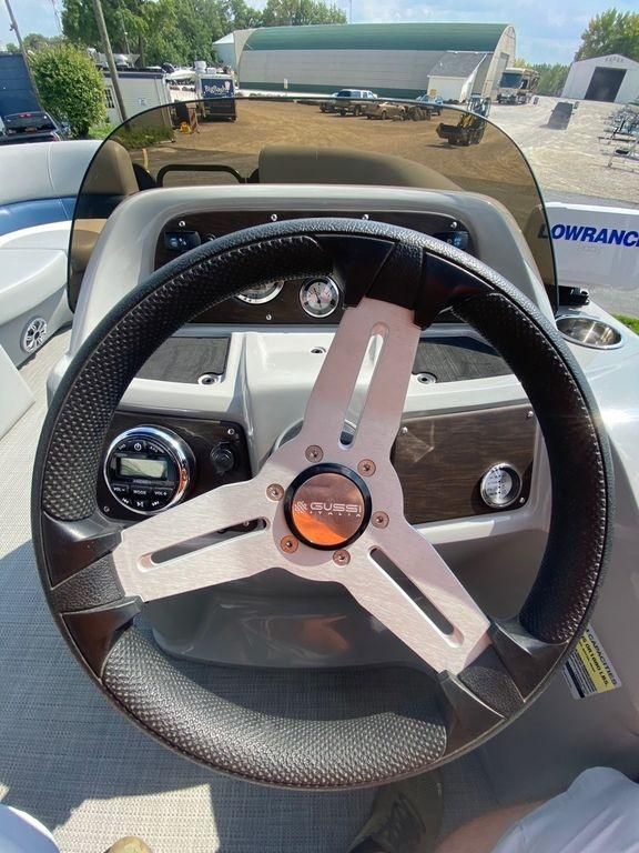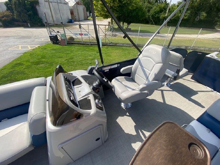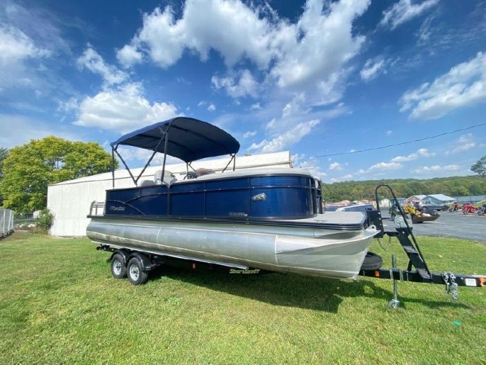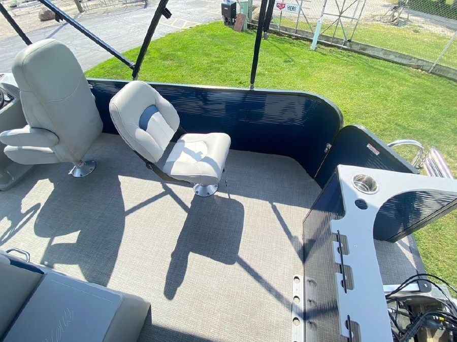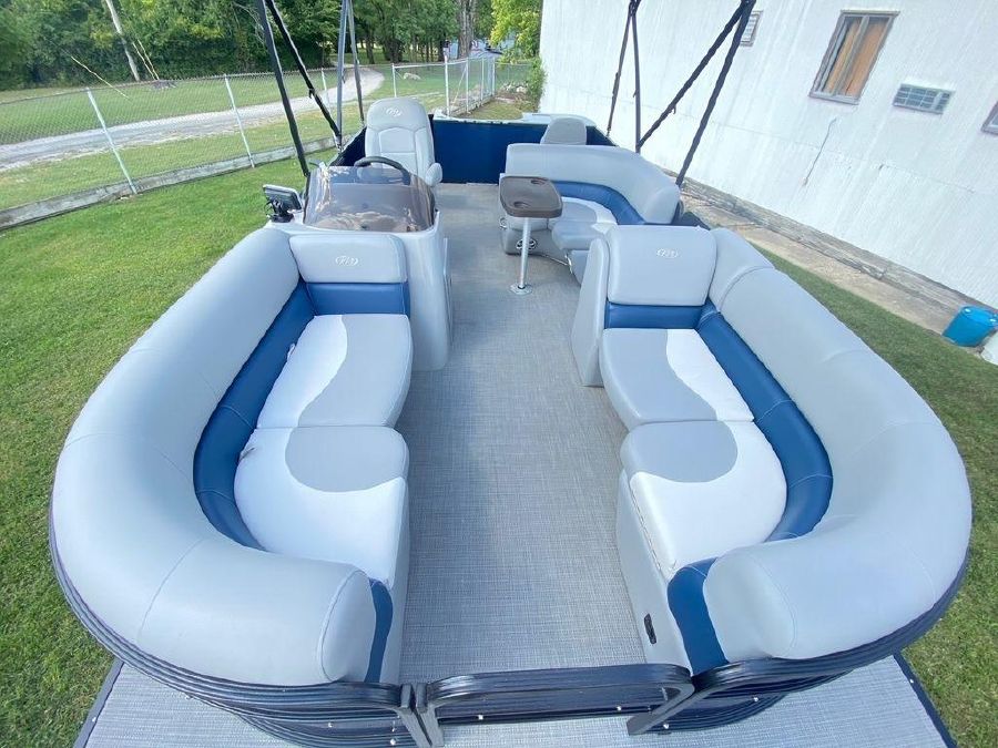 Just in stock! We sold this boat New in 2019 and it has been always stored at the marina year round. It only has 31 Hours!Extra Factory Options Include: 25″ Toon Upgrade, Blue Wall Panels, Black Powder Coated Rails, Silver Luna Flooring, Blue Bimini Top, Top Fabric Upgrade, Value Package, Kicker Speakers LED, Mid Back Helm Char, Color GPS Fish Finder, Hourmeter, Blue Mooring Cover, Sea Star Hydraulic Steering, Trolling Motor Outlet & Trolling Motor Gate