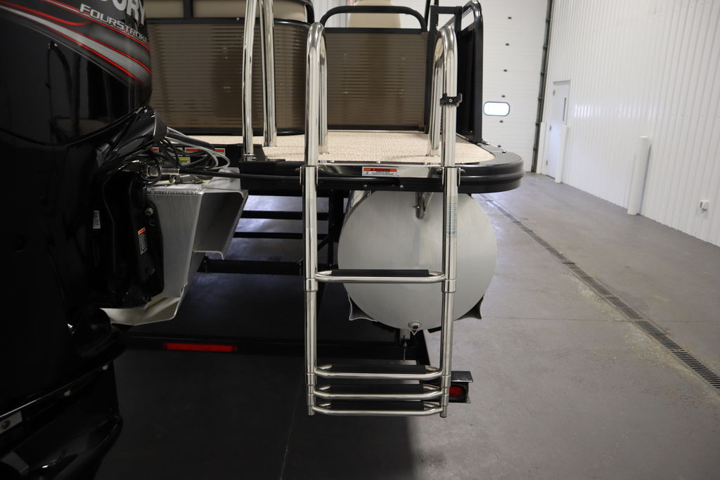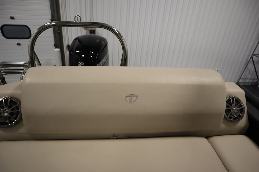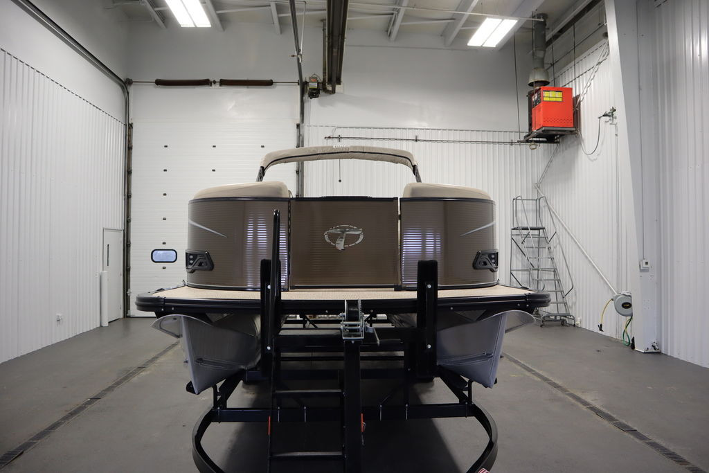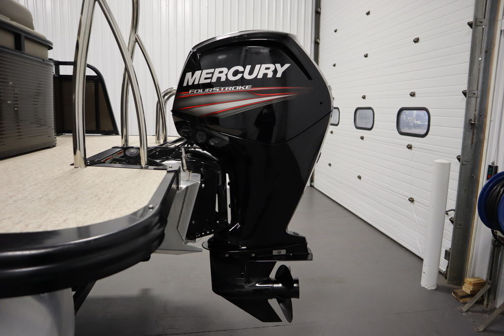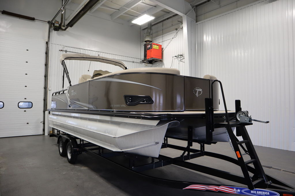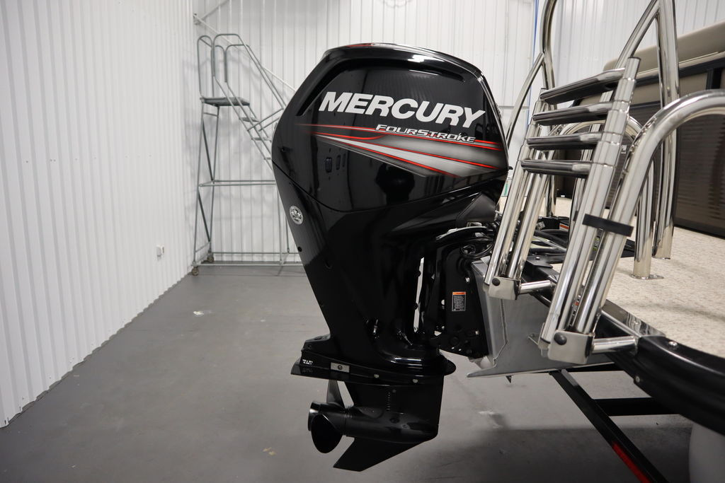 CLEAN 2019 TAHOE LTZ 2485 VRL PONTOON WITH TRAILER AND ONLY 29 ENGINE HOURS! A 115 hp Mercury Command Thrust 4-stroke EFI outboard powers this nicely equipped package.