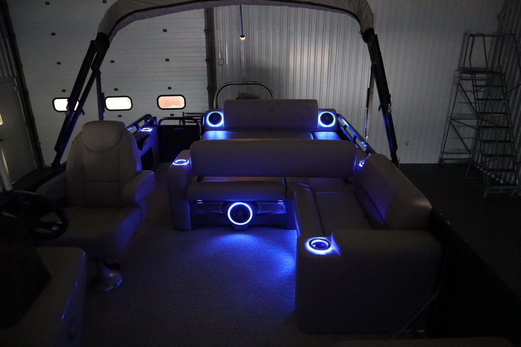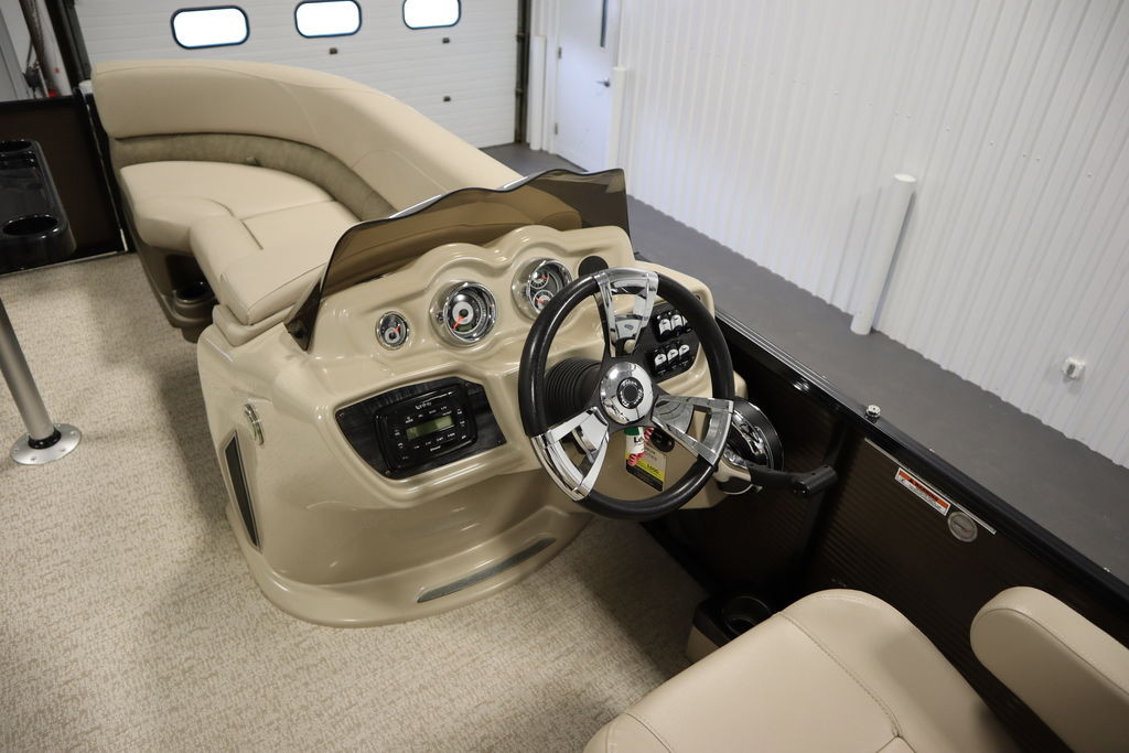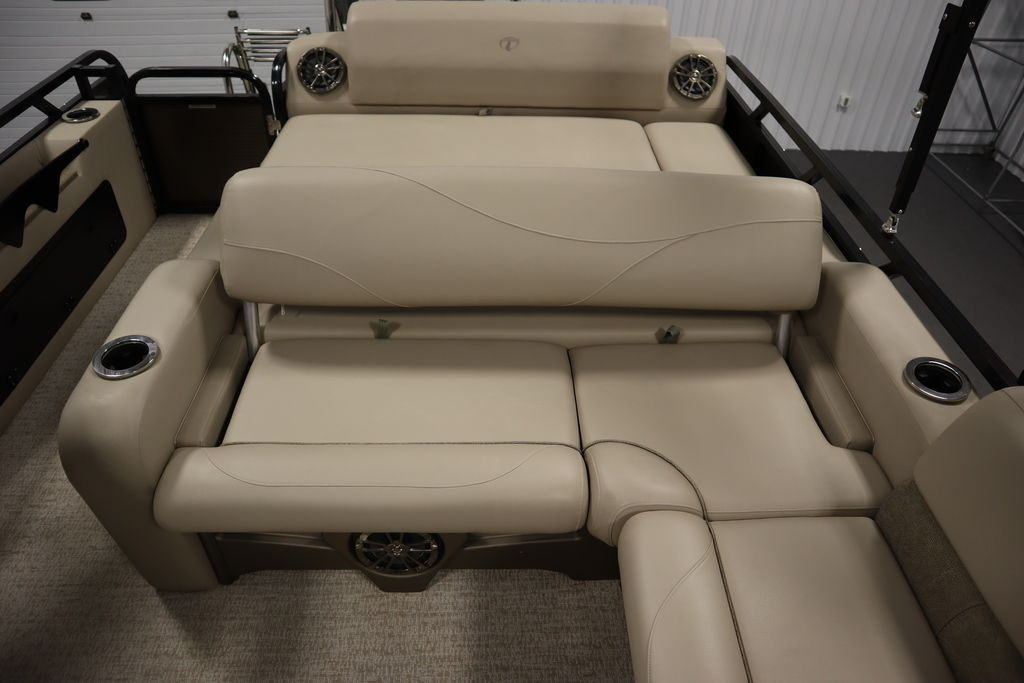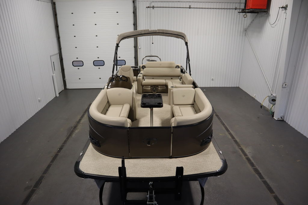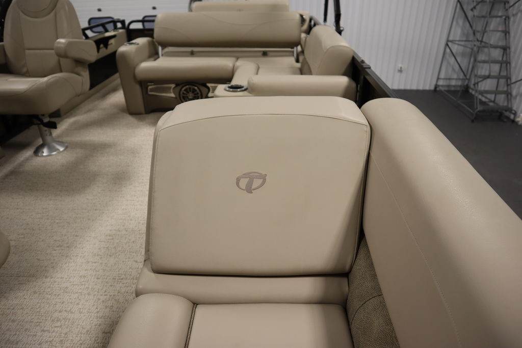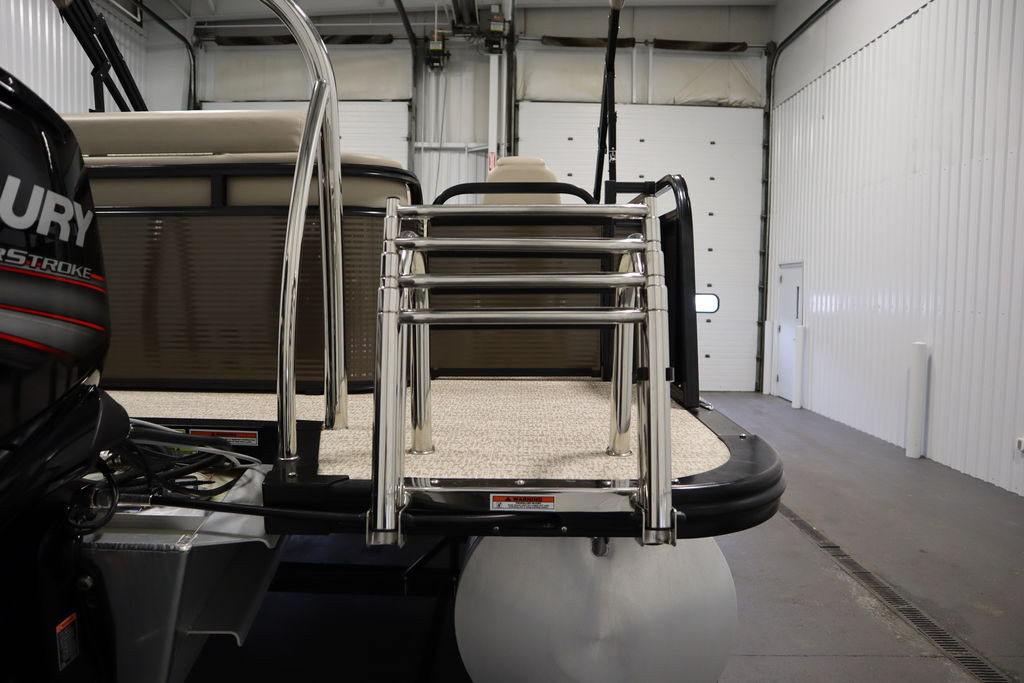 CLEAN 2019 TAHOE LTZ 2485 VRL PONTOON WITH TRAILER AND ONLY 29 ENGINE HOURS! A 115 hp Mercury Command Thrust 4-stroke EFI outboard powers this nicely equipped package.