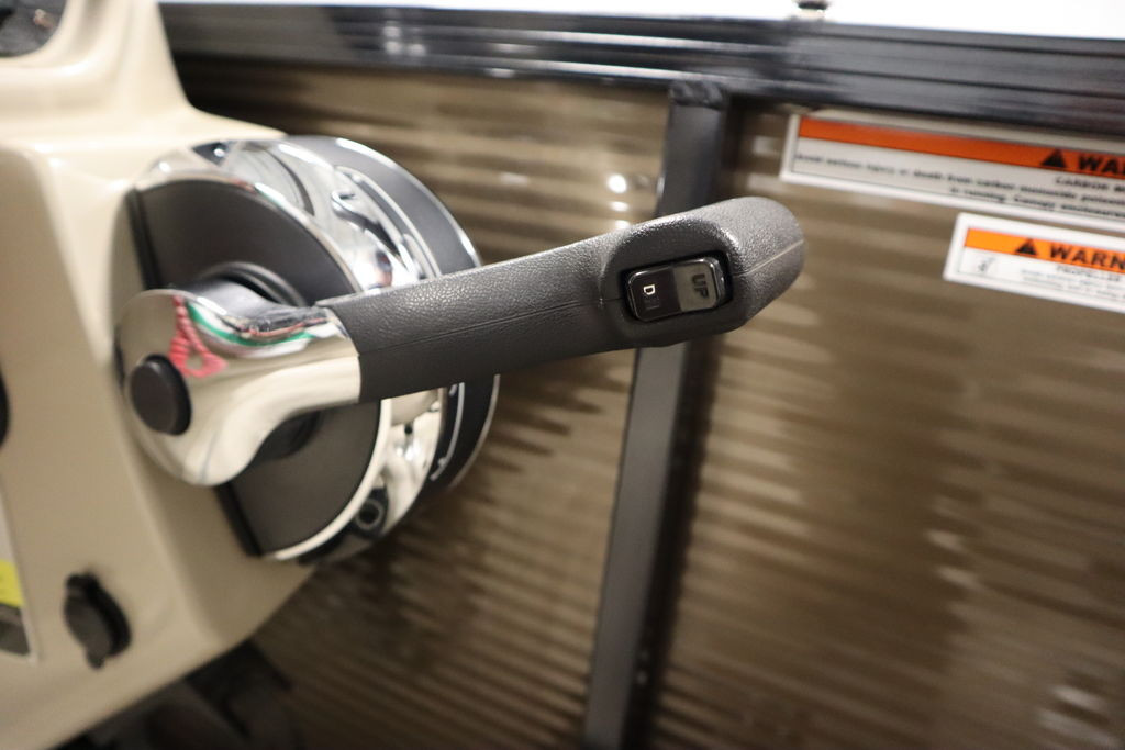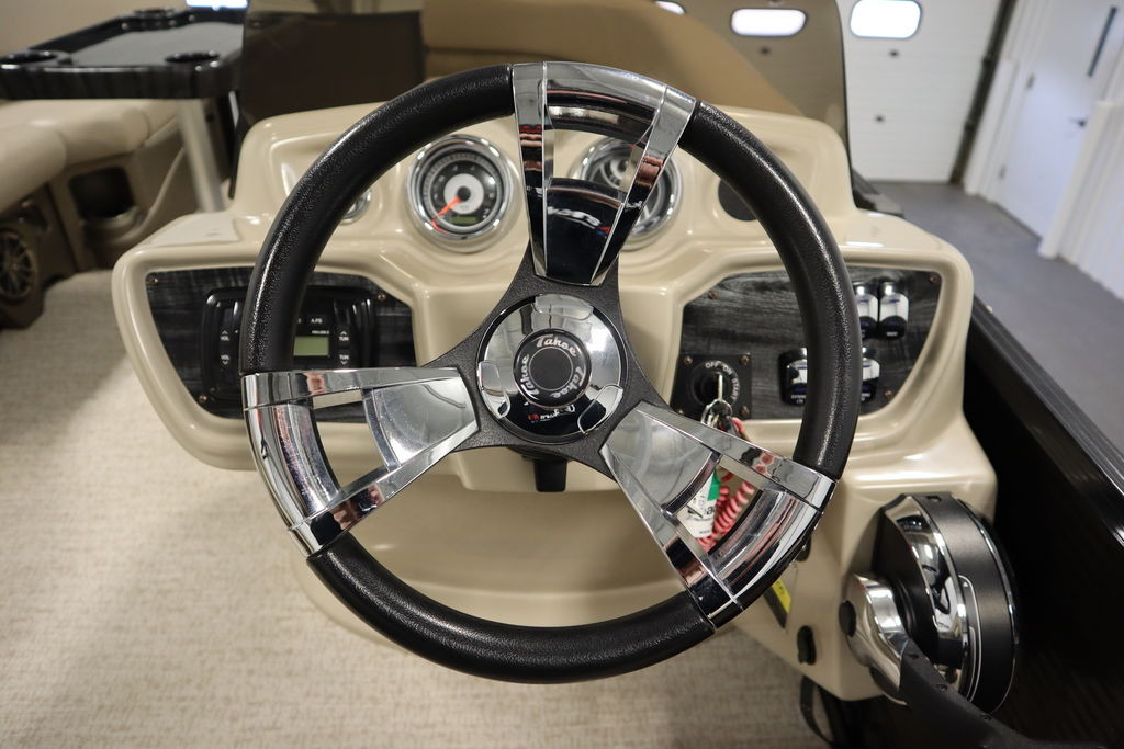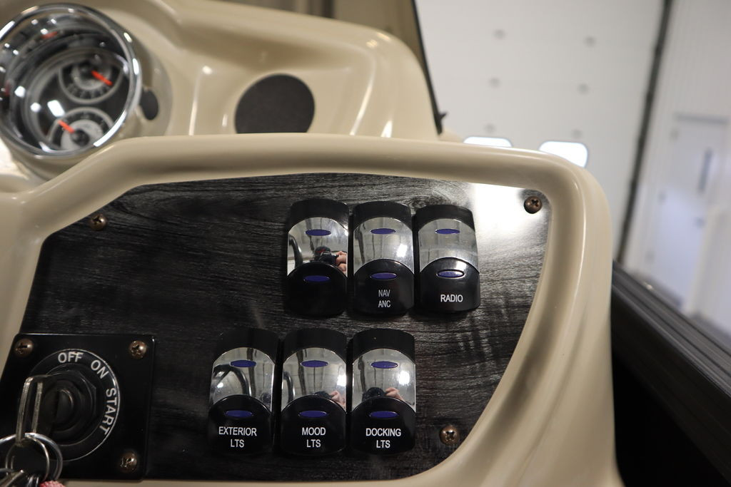 Lighted helm switches, tilt steering, 12-volt power outlet, and electric horn