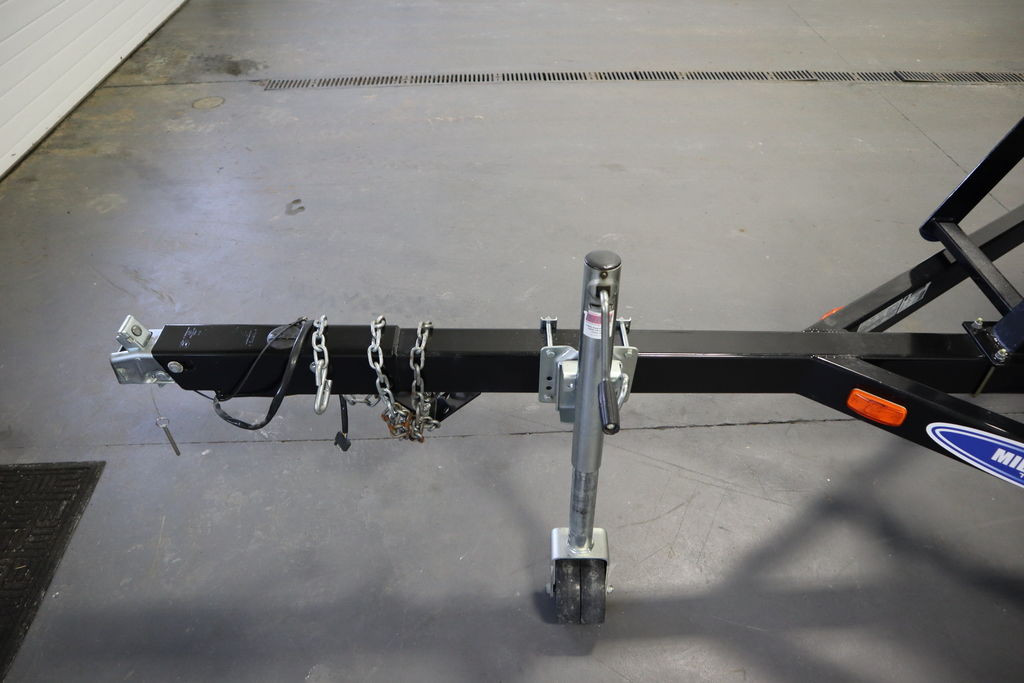 MidAmerica tandem-axle float-on bunk trailer with surge disc brakes and walk-up bow stand