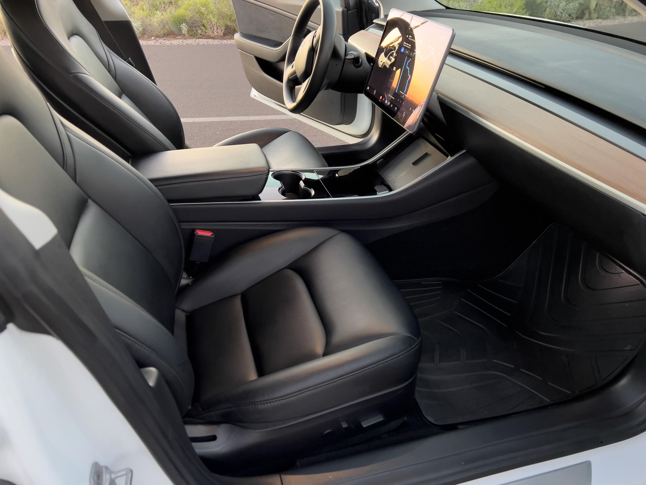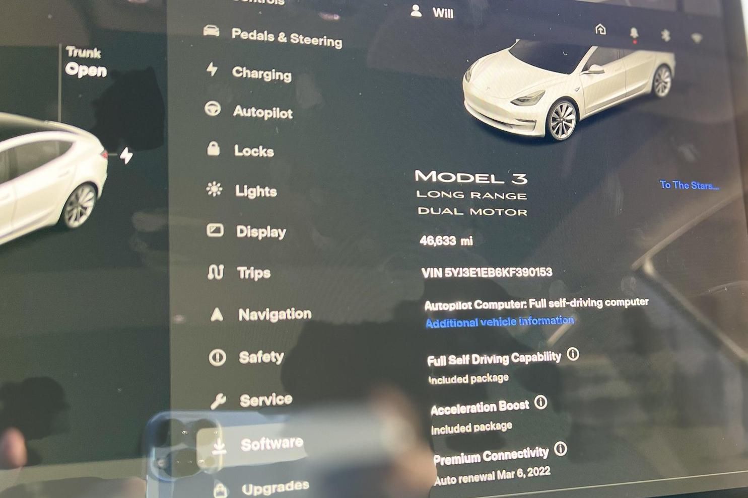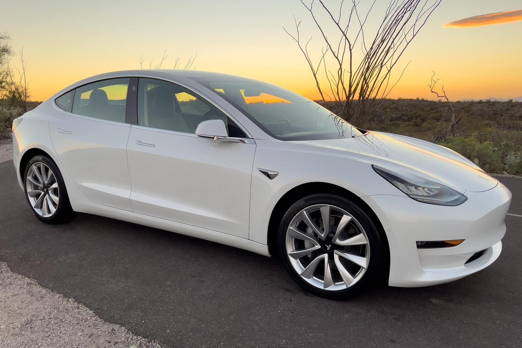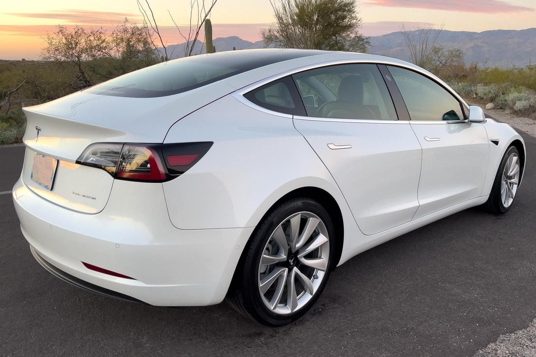 THIS… is a 2019 Tesla Model 3 Long Range AWD, finished in Pearl White.The attached Carfax history report indicates no accidents or mileage discrepancies. Equipment includes the Premium Interior Package (LED fog lights, heated and power-adjustable front seats, heated rear seats, floor mats, and upgraded sound system), 19-inch wheels, a panoramic roof, synthetic leather upholstery, a 15-inch touchscreen, navigation system, Full Self-Driving Capability, and more as detailed below. This Model 3 is also equipped with the Acceleration Boost option, which enables a 0-60 mph sprint of approximately 3.7 seconds, according to Tesla. At launch, the Model 3 was presented as a premium EV with a usable driving range and respectable performance, all at a reasonably attainable price. It was Tesla’s entry-level car. It’s still available in 2022, and it has gone through several evolutions (including many software updates) since its introduction. Power comes from a pair of electric motors that draw electricity from a 75-kilowatt-hour lithium-ion battery pack to zap all four wheels with 346 horsepower and 389 lb-ft of torque, according to third-party estimates. In 2019, the Long Range received a maximum driving range rating of 310 miles from the EPA.