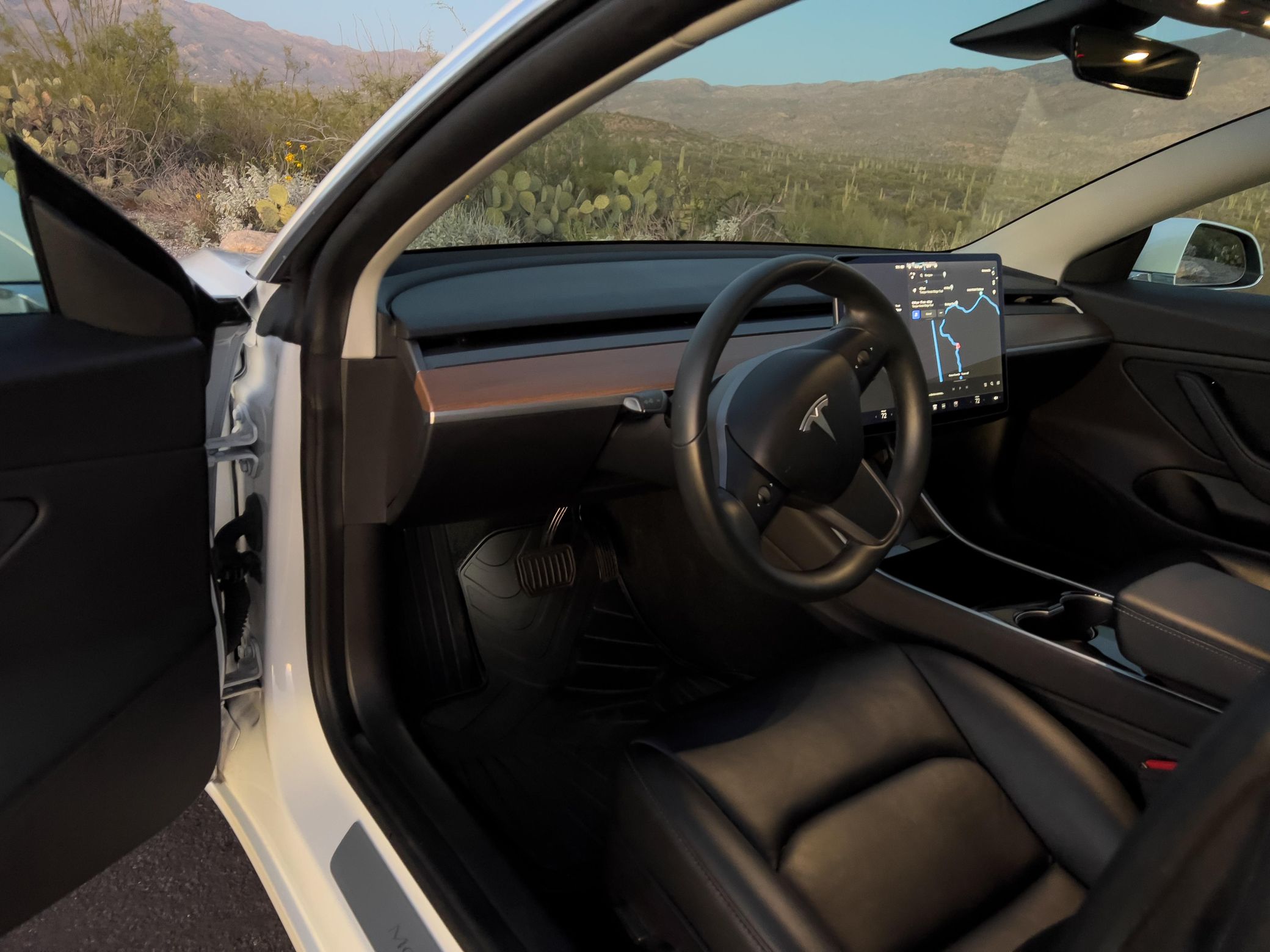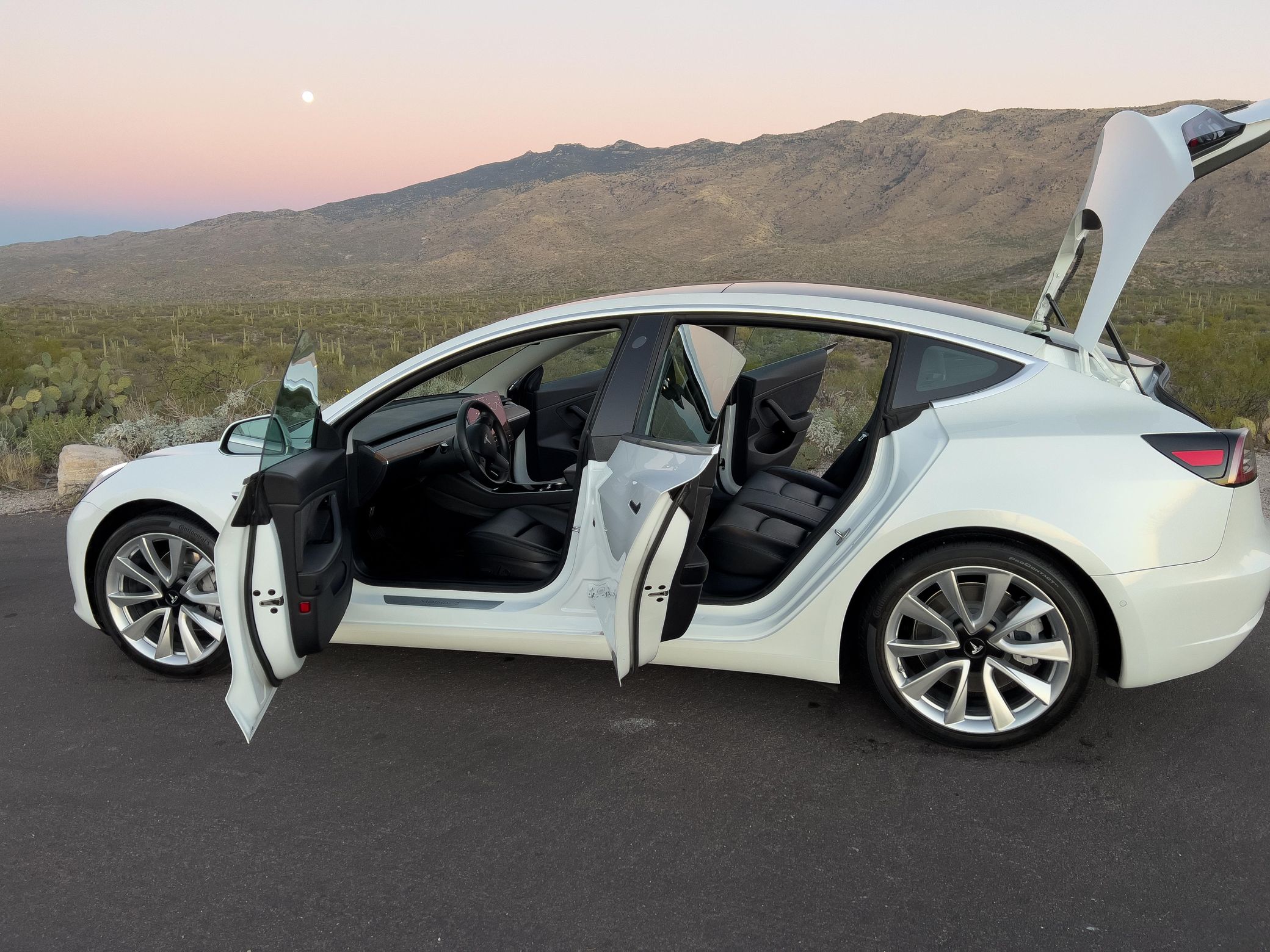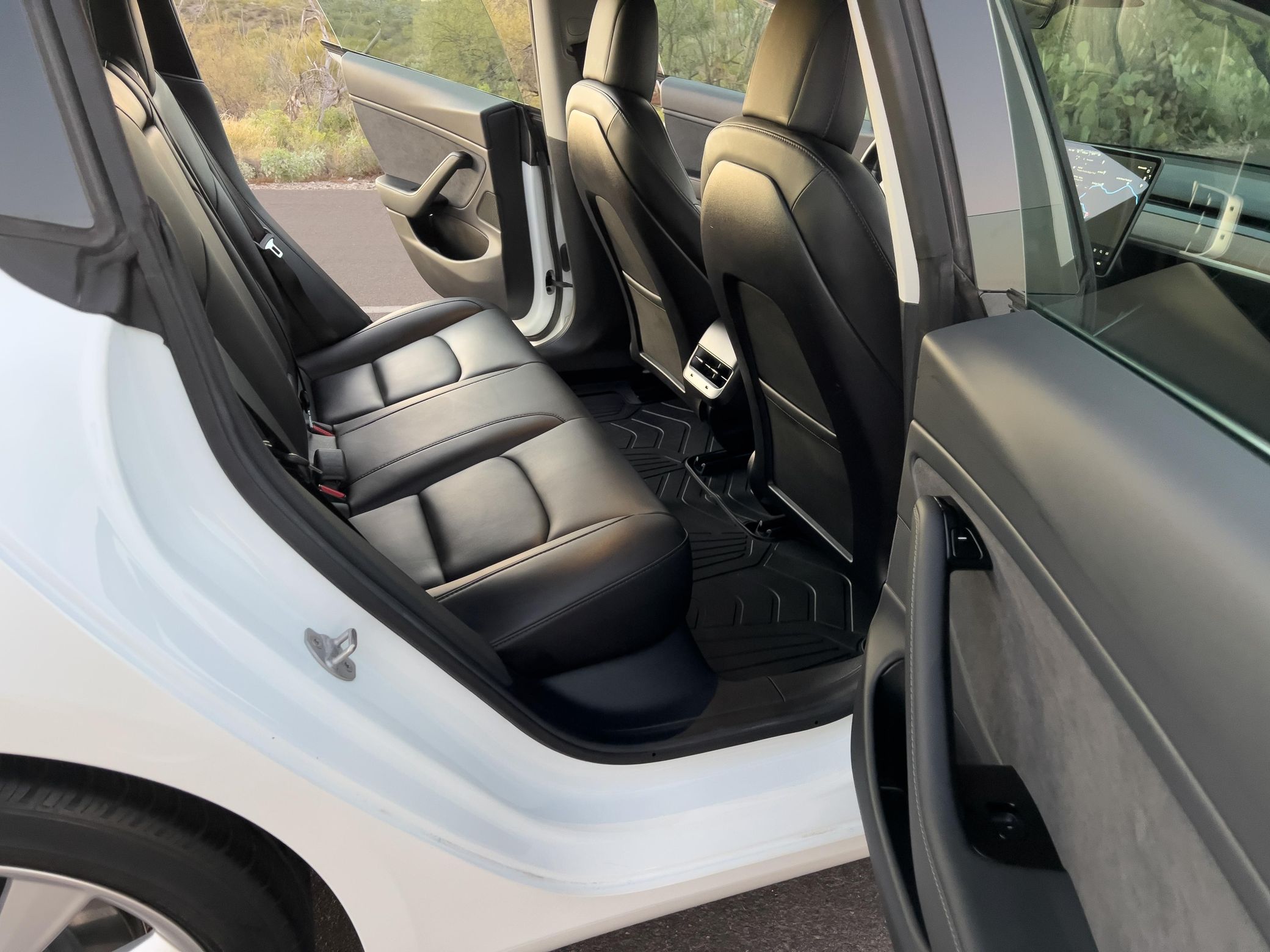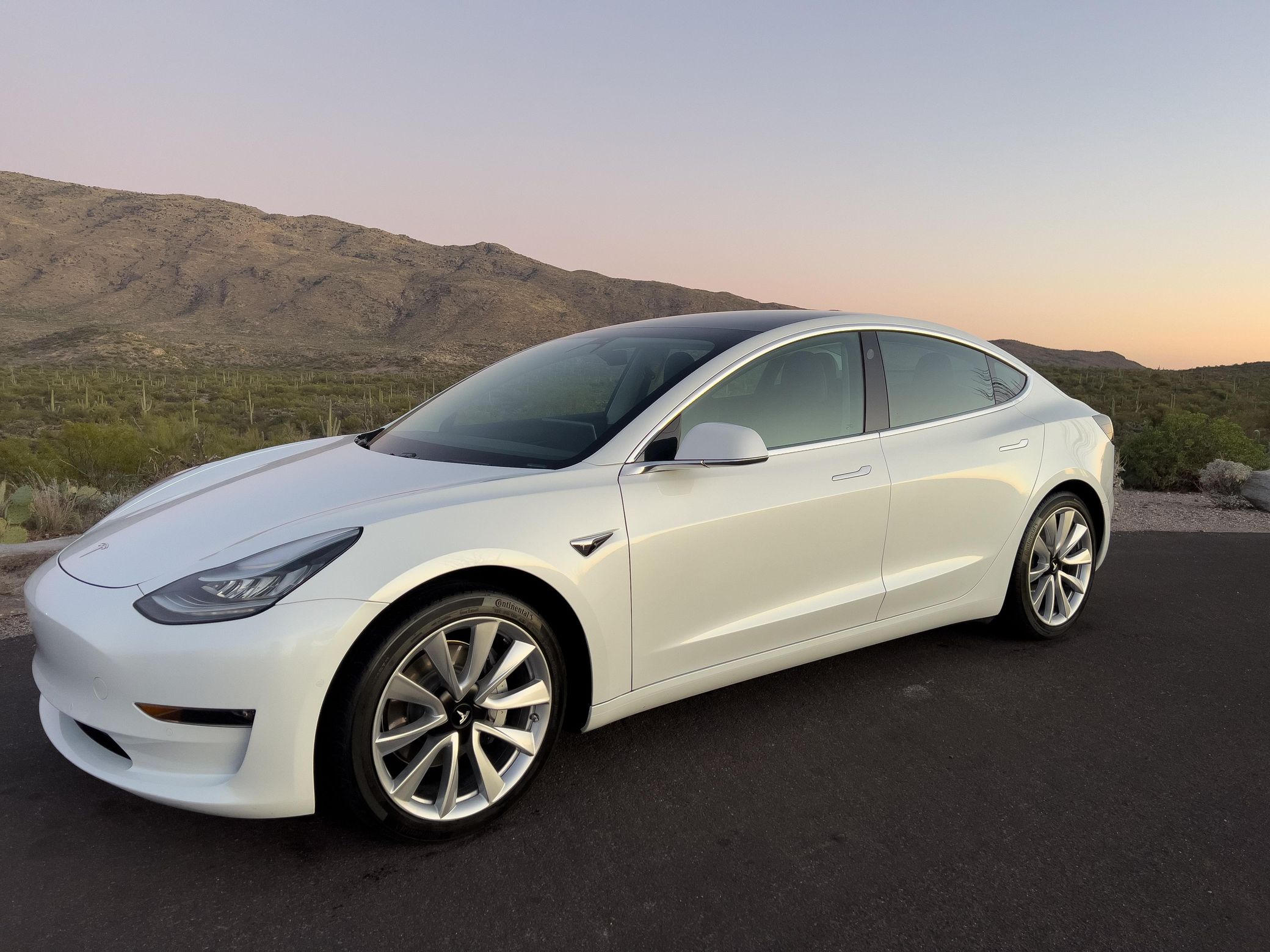 THIS… is a 2019 Tesla Model 3 Long Range AWD, finished in Pearl White.The attached Carfax history report indicates no accidents or mileage discrepancies. Equipment includes the Premium Interior Package (LED fog lights, heated and power-adjustable front seats, heated rear seats, floor mats, and upgraded sound system), 19-inch wheels, a panoramic roof, synthetic leather upholstery, a 15-inch touchscreen, navigation system, Full Self-Driving Capability, and more as detailed below. This Model 3 is also equipped with the Acceleration Boost option, which enables a 0-60 mph sprint of approximately 3.7 seconds, according to Tesla. At launch, the Model 3 was presented as a premium EV with a usable driving range and respectable performance, all at a reasonably attainable price. It was Tesla’s entry-level car. It’s still available in 2022, and it has gone through several evolutions (including many software updates) since its introduction. Power comes from a pair of electric motors that draw electricity from a 75-kilowatt-hour lithium-ion battery pack to zap all four wheels with 346 horsepower and 389 lb-ft of torque, according to third-party estimates. In 2019, the Long Range received a maximum driving range rating of 310 miles from the EPA.