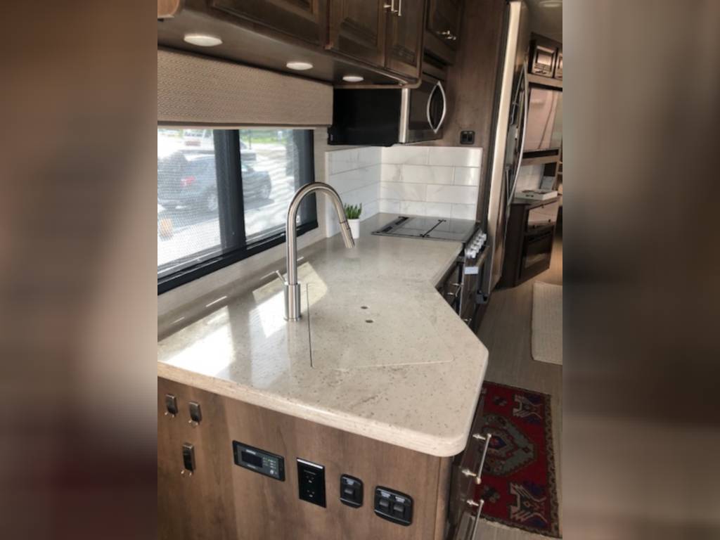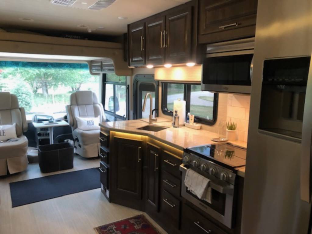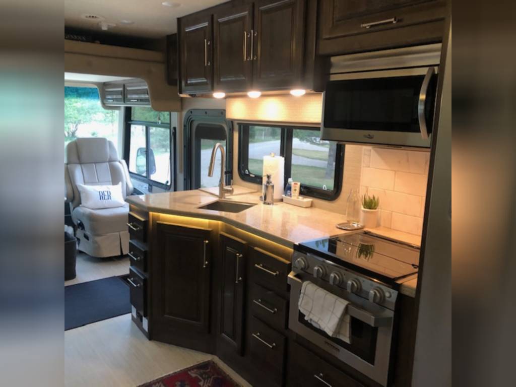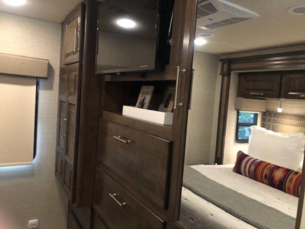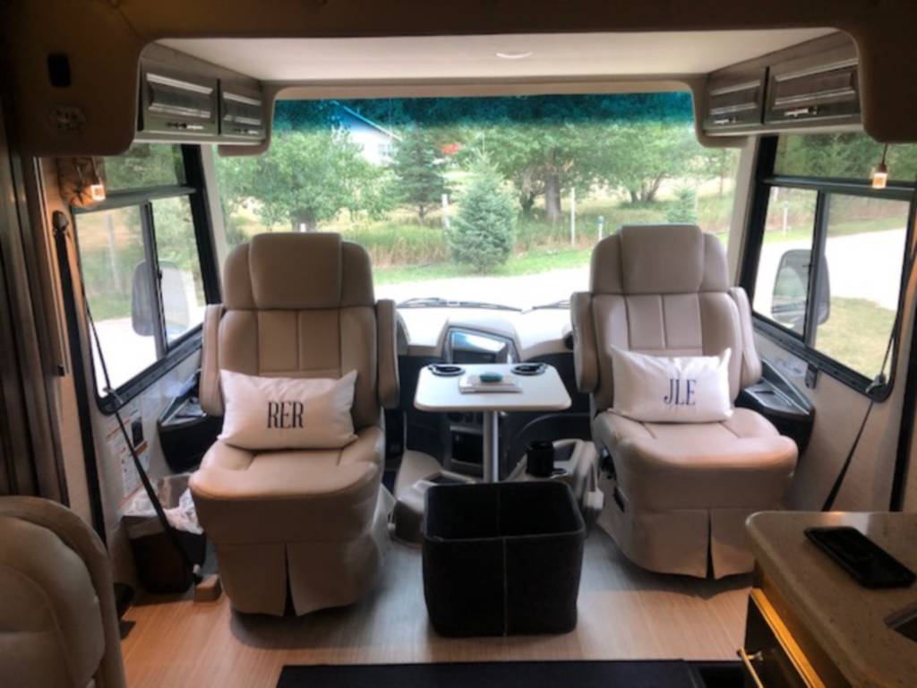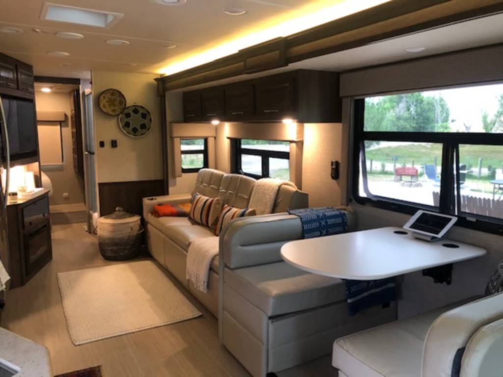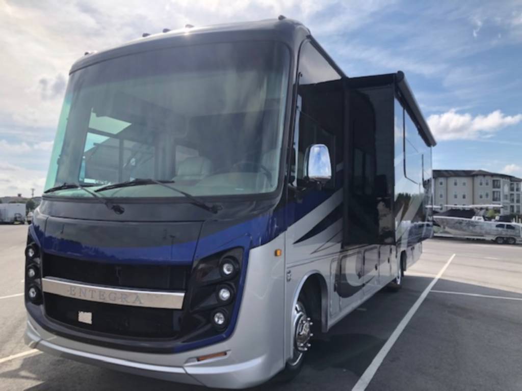 Well maintained 2020 Enterga Vision XL with optimal floorplan, 34B. The Ford V10 F53 proved to be more than enough power during our travels from coast to coast. All regular maintenance was serviced on time: oil change, tire rotation, generator oil change. The unit is immaculate and well cared for having traveled with no pets and non-smokers. Find all the regular features on the Entegra website for the Vision XL 34-B to see what this unit has to offer. In addition to the factory installed features we added – Exterior:Exterior Paint Guard to prevent Fading Magna Shades w/storage case (front, sides, wipers),Blue Ox Tow Bar, Rear Hitch, Front Stabilizer Bar, Rear Sway Bar (Roadmaster), RV Lock Digital Keylock, Snap Pads Leveler Pads, Surge Protector, Flag Pole w/ladder mount. Interior:Splendide Washer/Dryer Combo (2 yr warranty),Winegard Satellite /Direct TV receiver/3 TV’s connected, Smart TV /Living Room, Tochta King Memory Mattress/Custom Sized w/rounded corners *Fitted with custom mattress cover and Sateen Sheet Set, Residential size Bathroom Sink and Faucet, Bunk Ladder/Custom made w/additional steps & rail, Bedroom Dimmer Switch, Speakers both Coach & House speakers professionally installed for better sound, Fantastic Automatic Vents w/remotes (living & bath), Cabinet lighting.