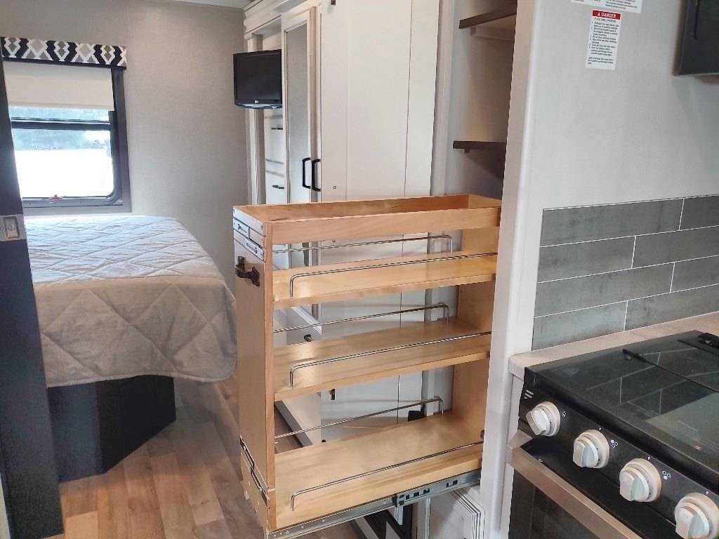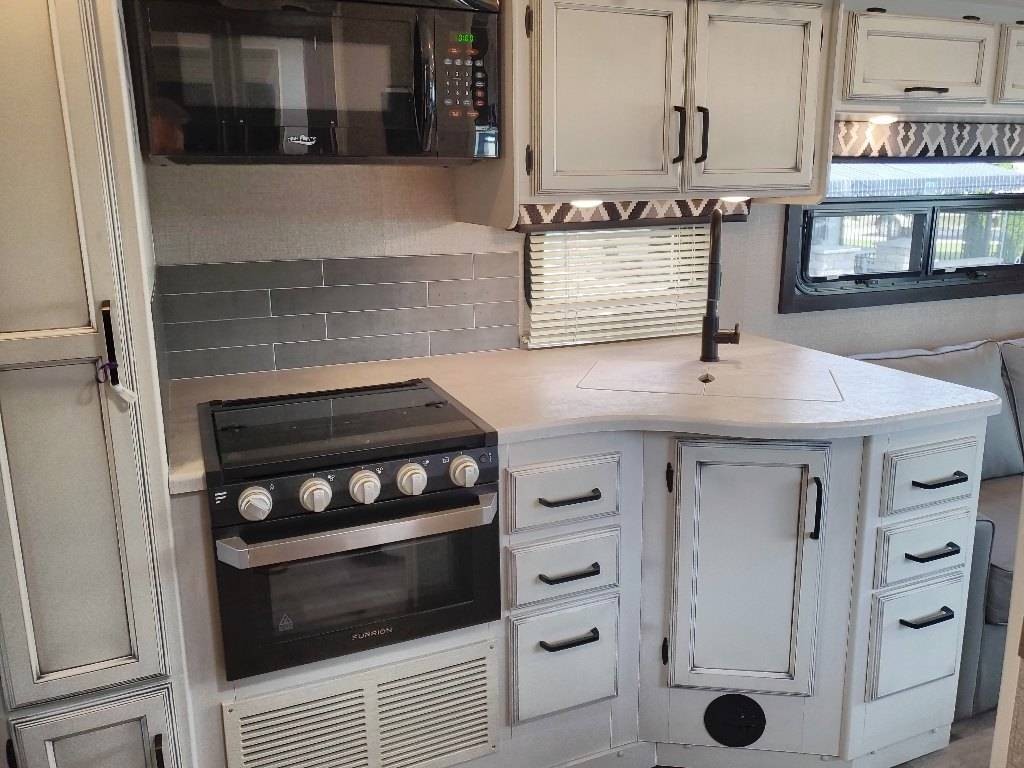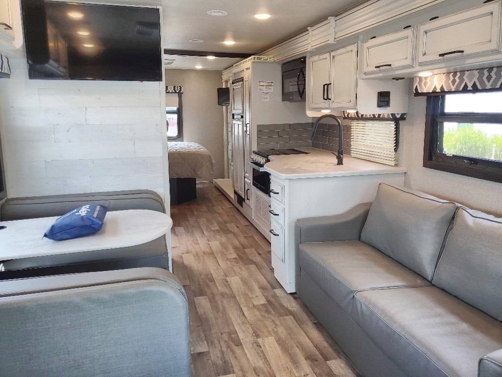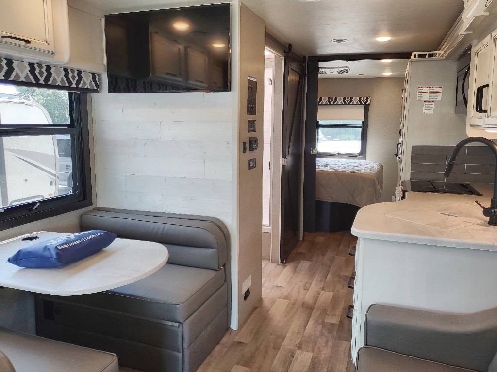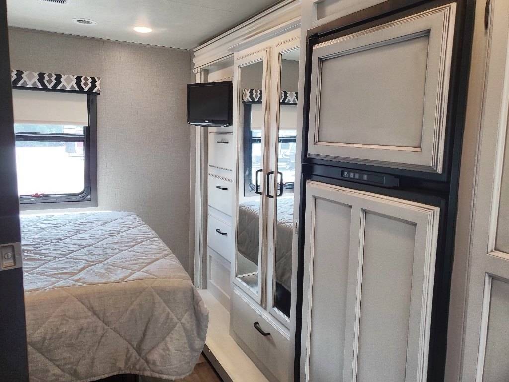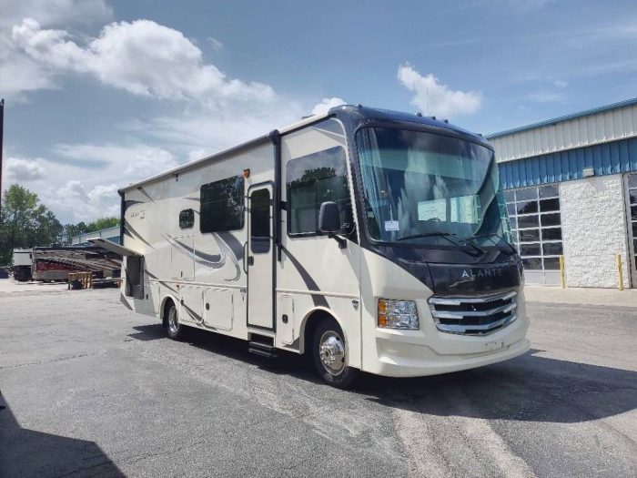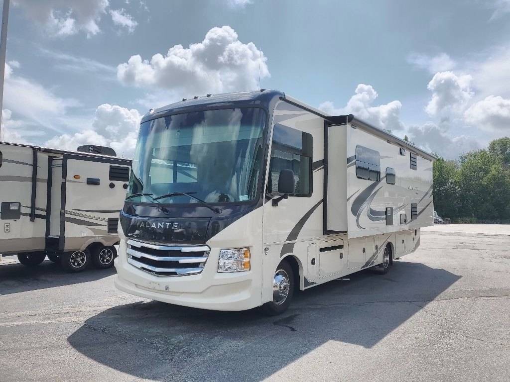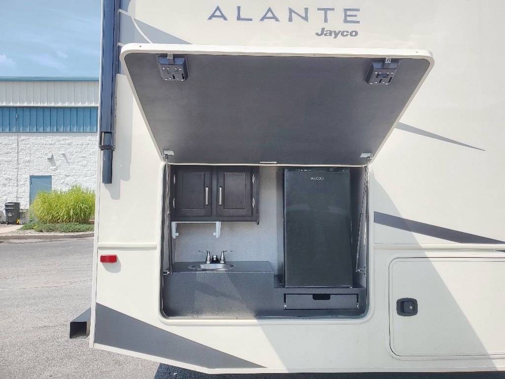 2020 JAYCO ALANTE FEATURES INCLUDE: Outside Kitchen, Frameless windows, 4KW Onan generator, 30 amp cord, 2nd A/C, automatic leveling jacks, exterior entertainment center with TV, power drop down overhead bunk, ball bearing drawer guides, hardwood cabinet doors, large booth dinette, 39″ HDTV with DVD player, bedroom TV, GPS navigation, tankless water heater, slide-out cover awnings, bead-foam Insulation (R-24 max roof, R-9 max floor, R-7 max walls), champagne high-gloss fiberglass walls, lockable pass-through storage compartments, one-piece fiberglass front and rear cap, seamless crowned fiberglass roof, 2-door fridge, pull-out pantry, power bath vent, skylight, double coach battery, cruise control, back up & side cameras, power entrance step, power patio awning, hitch with 7-way plug, 4 Wheel disc anti-lock brakes, Queen bed, heated holding tanks, fully laminated walls, roof, & floor, roof ladder and much more.