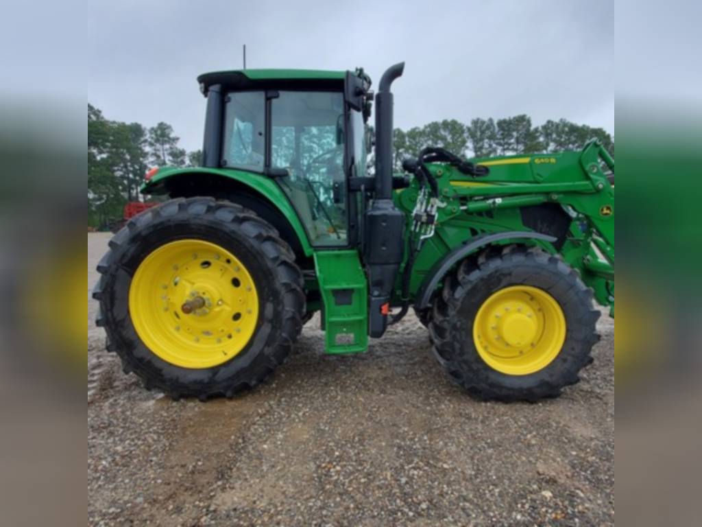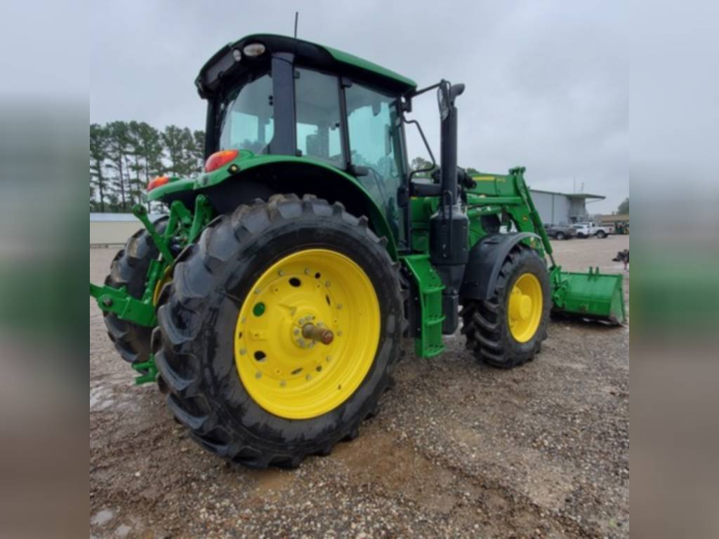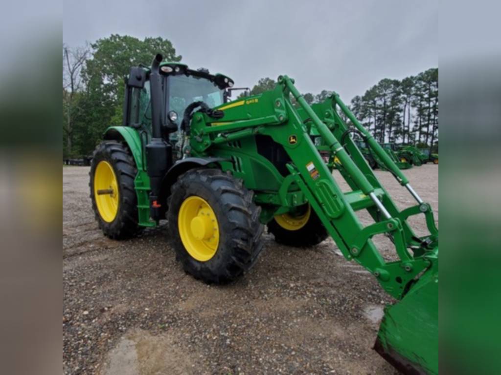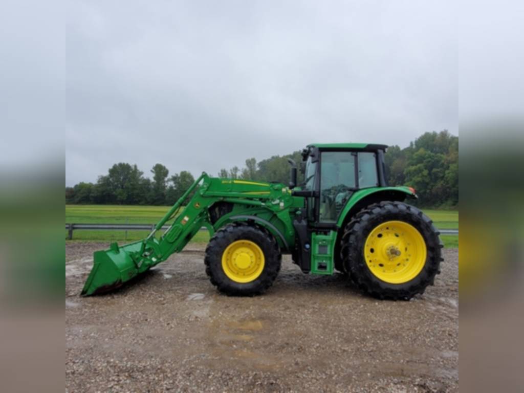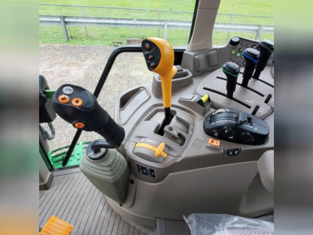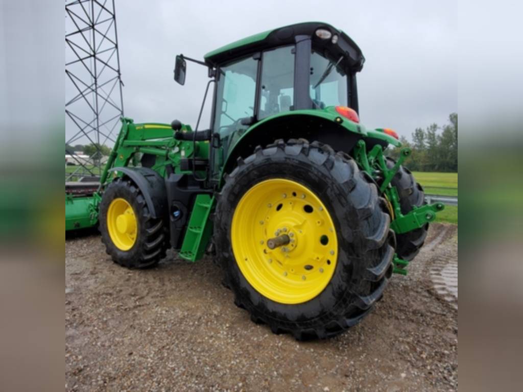 2020 John Deere, 6155M, row_crop_tractors, Cab: Cab, Front Axle: MFWD, Guidance-ready: Yes, Guidance Receiver: No, Guidance Display: No, Rear PTO: 540/1000, Rear Tires: Singles, Tire Width: Mid, Loader: Yes, Options: Loader Ready, No package, PowrQuad Plus – 20/20, 40 km/h, AutoTrac Ready, No AutoTrac Package, 6M Cab – Standard Cab with RH Console, Standard Seat, Mirrors – Manual Telescopic, Standard Radio, Hydraulic Pump – 114 l/min, 3 Mechanical SCVs (3 SCVs 450 Series), Rear PTO – 540/1000 rpm, Draft Links with Telescopic Ball End – Category 3N / Category 3, Center Link with Ball End – Category 3, Sway Control Blocks, R&P Rear Axle – 92 mm Shaft, Cast Wheels (Cast Disk), Rear Wheels Size 460/85R42, Rear and Front Tire Brand – Firestone, 4WD Front Axle – Unsuspended, Adjustable Steel Wheels, 420/85R28 139A8 R1W Radial, Shipment Preparation – by Ship Overseas, Toolbox, Front Fenders 4WD – Turnable, Cooling Compartment, Cold Start Package I, Fuel Heater System, Fuel Tank Bottom Guard, PTO Remote Control, Higher Hitch Lift Capacity, 2 Beltline Road Lights – H4, Alternator 14 V/200 A, Battery 12 V/174 AH, Panorama roof, M-SCV 3F (Mechanical Valve, 3 Functions), , Very nice one yr old tractor with self-leveling 640R loader. AutoTrac Ready. Good Firestone rubber. 160 hrs.