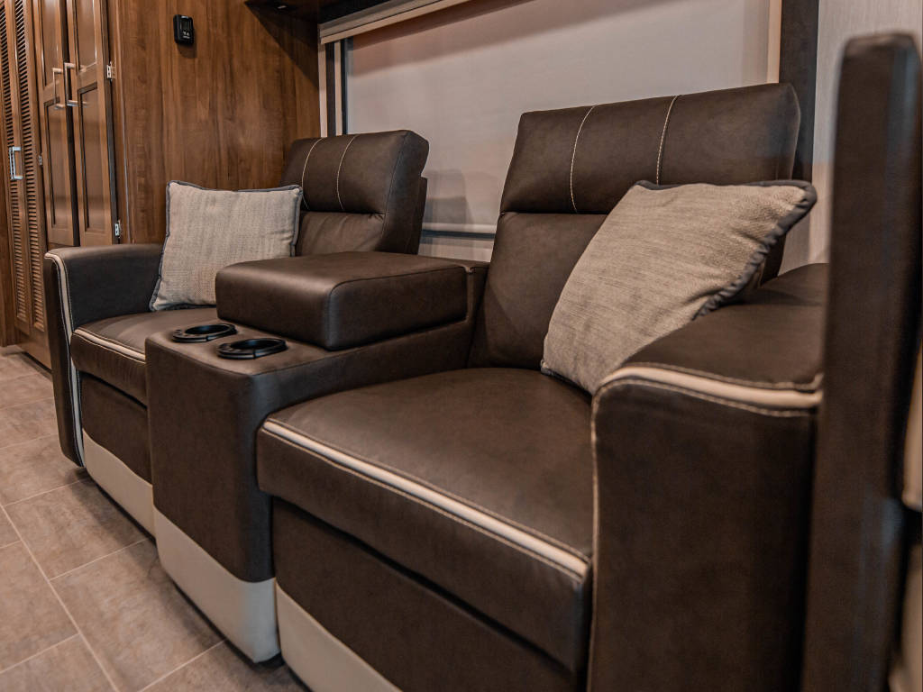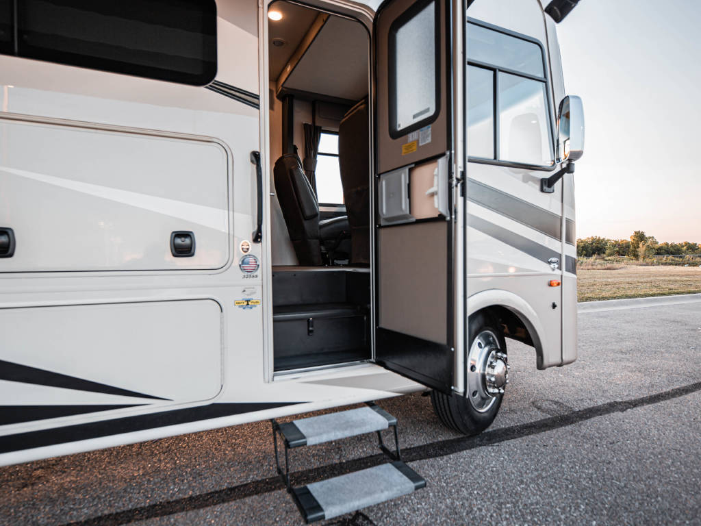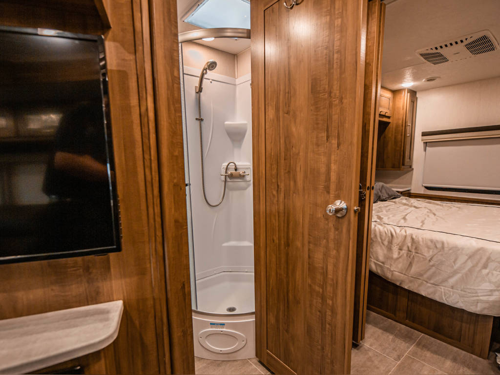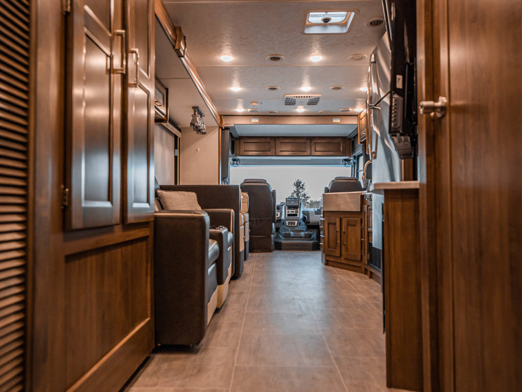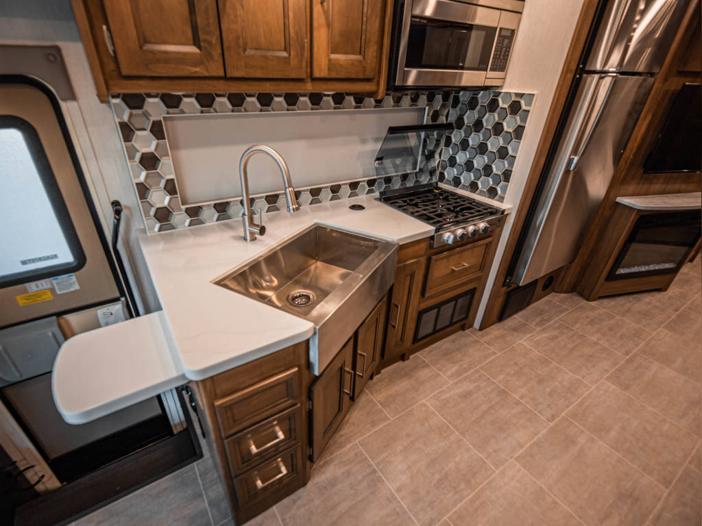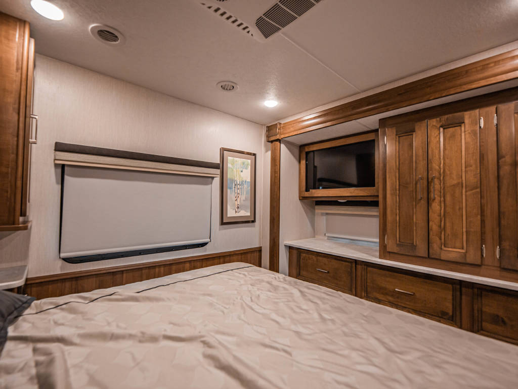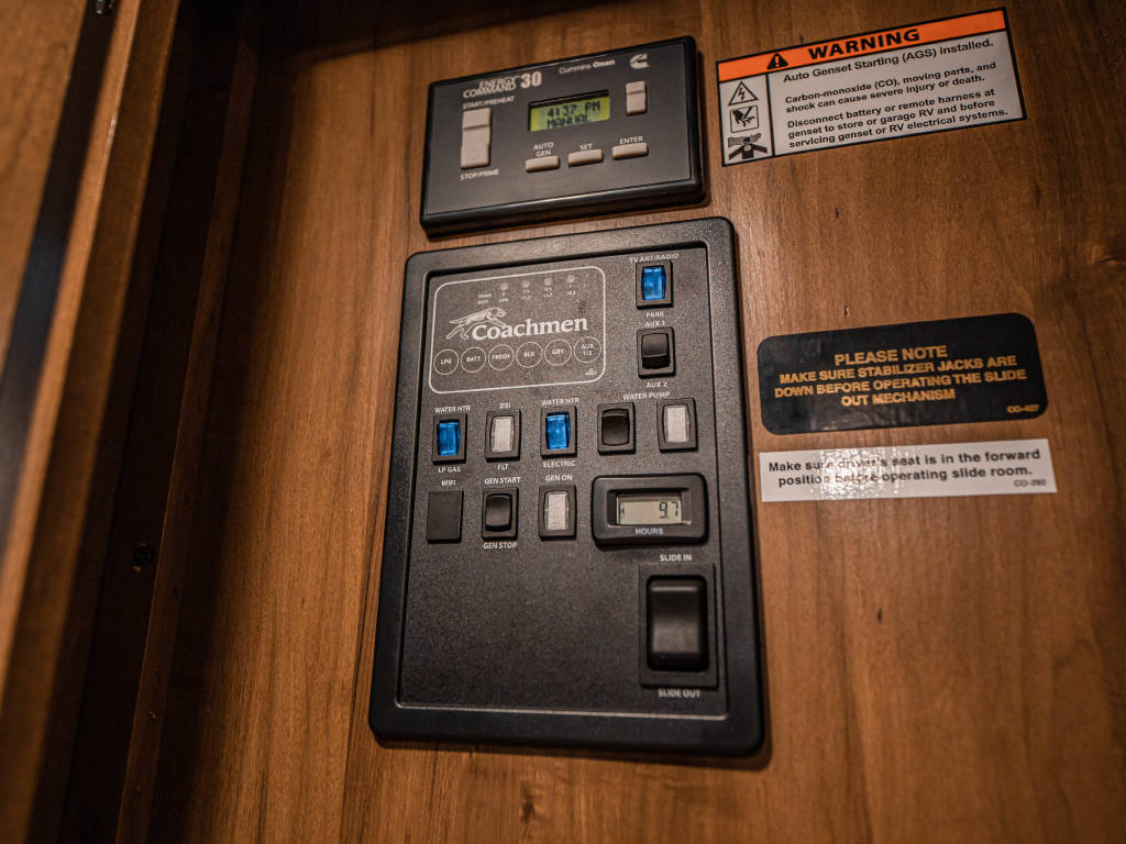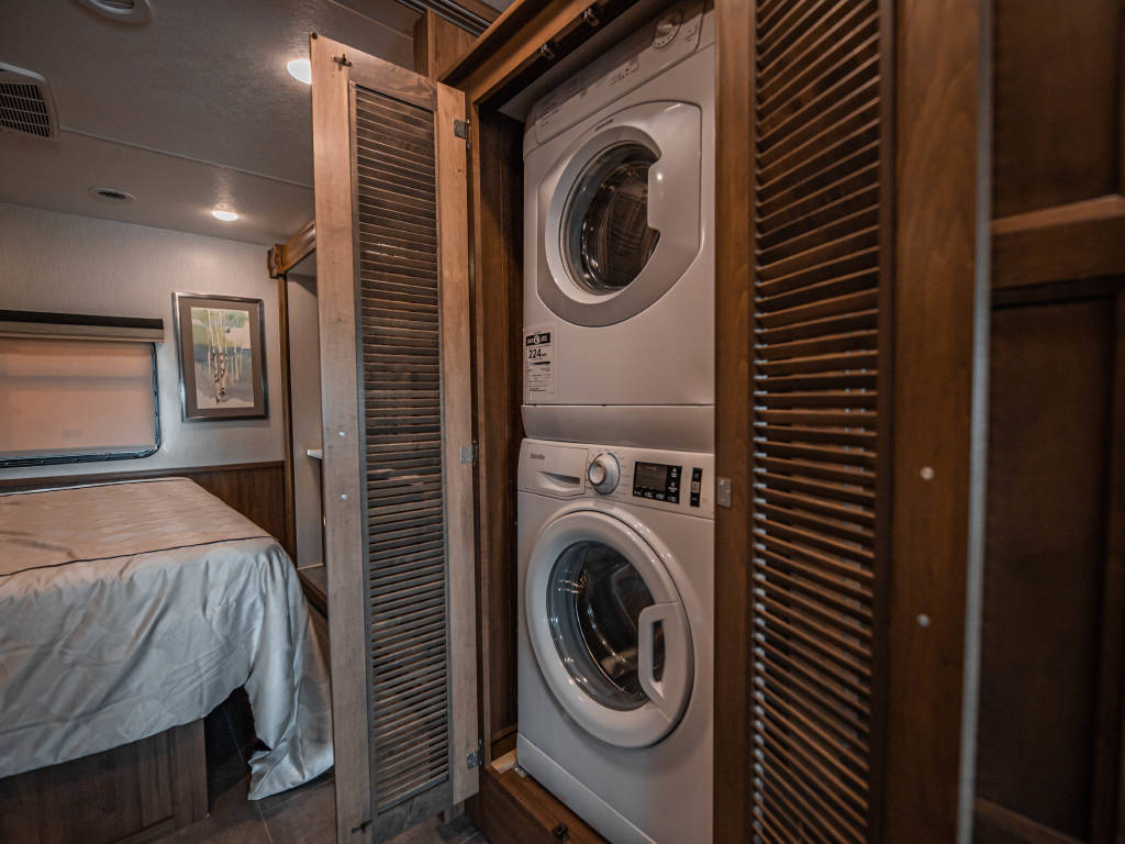 One-owner 2021 Coachman Encore ERA325SSF! This Class A beauty is paired with a Ford F53 Chassis and the 7.3L V8 Godzilla Gas engine with 350 HP and 468 lb ft. of torque. This RV has high definition back up and side cameras, automatic leveling jacks, outdoor kitchen with sink & mini fridge, exterior TV with Bluetooth Audio Speakers in the awning, roof-mounted 100-watt solar panel, frameless tinted windows, exterior heated bus mirrors, 20% angled dash, 40″ LED living room TV, fiberglass front and rear caps, ***1-piece laminated pebbled fiberglass roof with AZDEL composite (walkable)***, electric 5,000 BTU fireplace, stackable washer and dryer, ***Safe T Plus Front Stabilizer***.