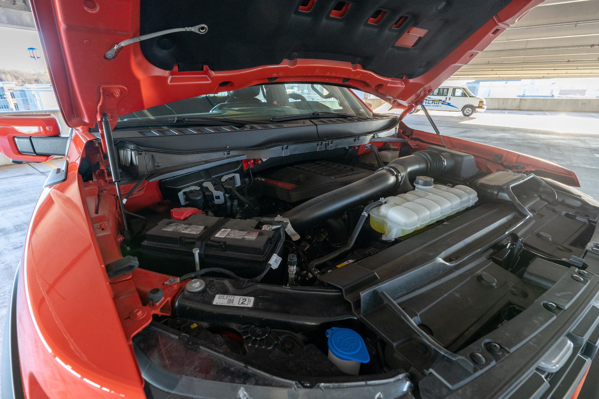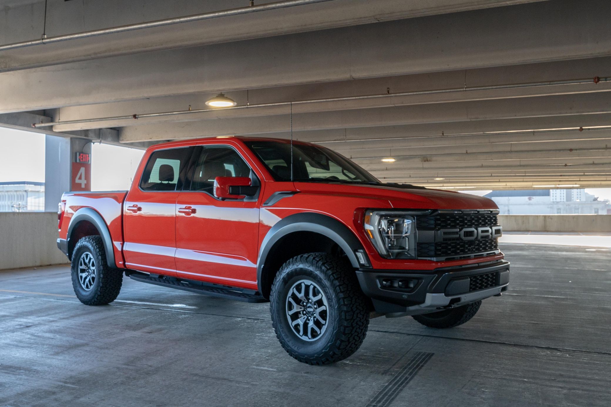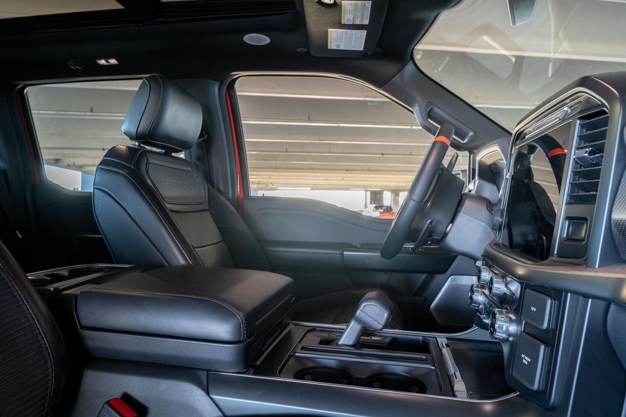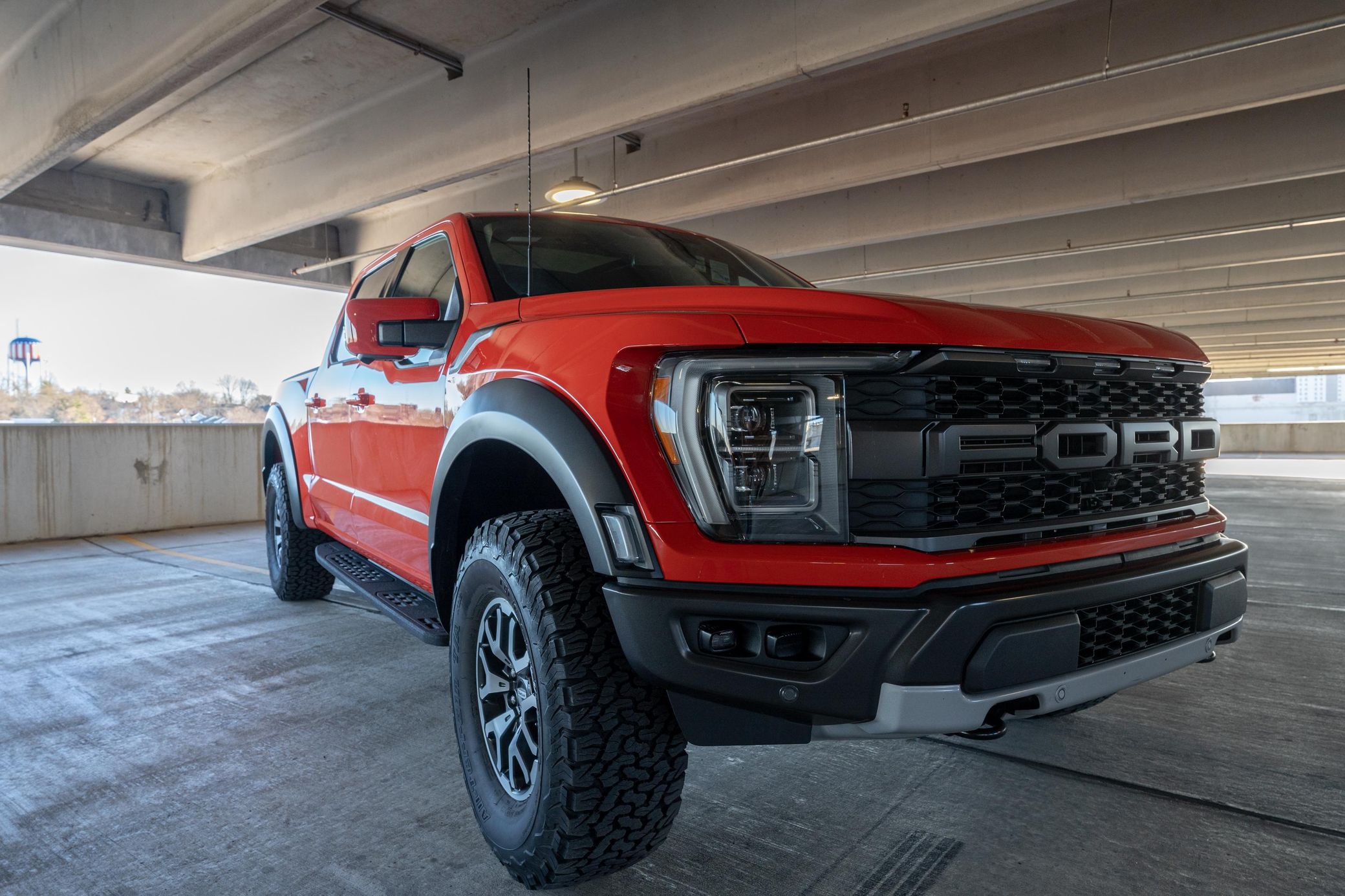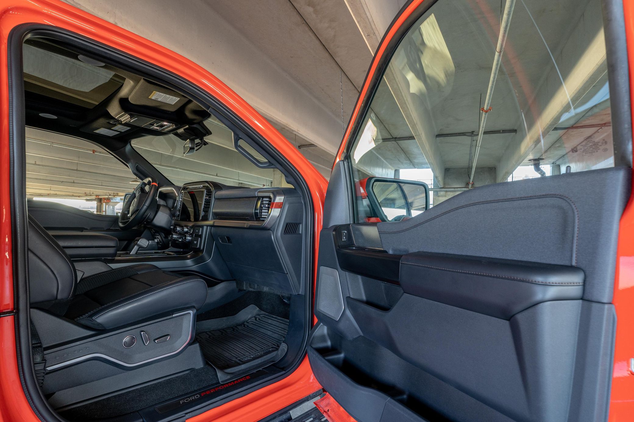 THIS… is a 2021 Ford F-150 Raptor, finished in Code Orange Metallic with a black interior. The attached Carfax history report lists no accidents or damage in this truck’s past. Factory equipment includes the Power Tech and Raptor Carbon packages, an 18-speaker Bang & Olufsen audio system, 17-inch wheels, a Raptor-specific off-road suspension system, skid plates, running boards, a trailer hitch, heated and ventilated front seats, a 360-degree camera system, and rear parking sensors. Modifications reported by the seller are limited to Decked bed drawers and Line-X spray-in bed liner. Designed to speed across the desert Baja racing-style, the third-generation F-150 Raptor made its debut for the 2021 model year. In addition to styling changes, Ford upgraded the rear suspension to a coil-spring setup to replace the old leaf springs. Additionally, the new Raptor gets a fully digital instrument cluster, a 12-inch touchscreen infotainment system, and a shift lever that folds flat into the center console area. Power for this Raptor comes from a turbocharged 3.5-liter “EcoBoost” V6, which produces 450 horsepower and 510 lb-ft of torque. The engine spins the 4 wheels via a 10-speed automatic transmission linked to a pair of shift paddles and a 2-speed transfer case.