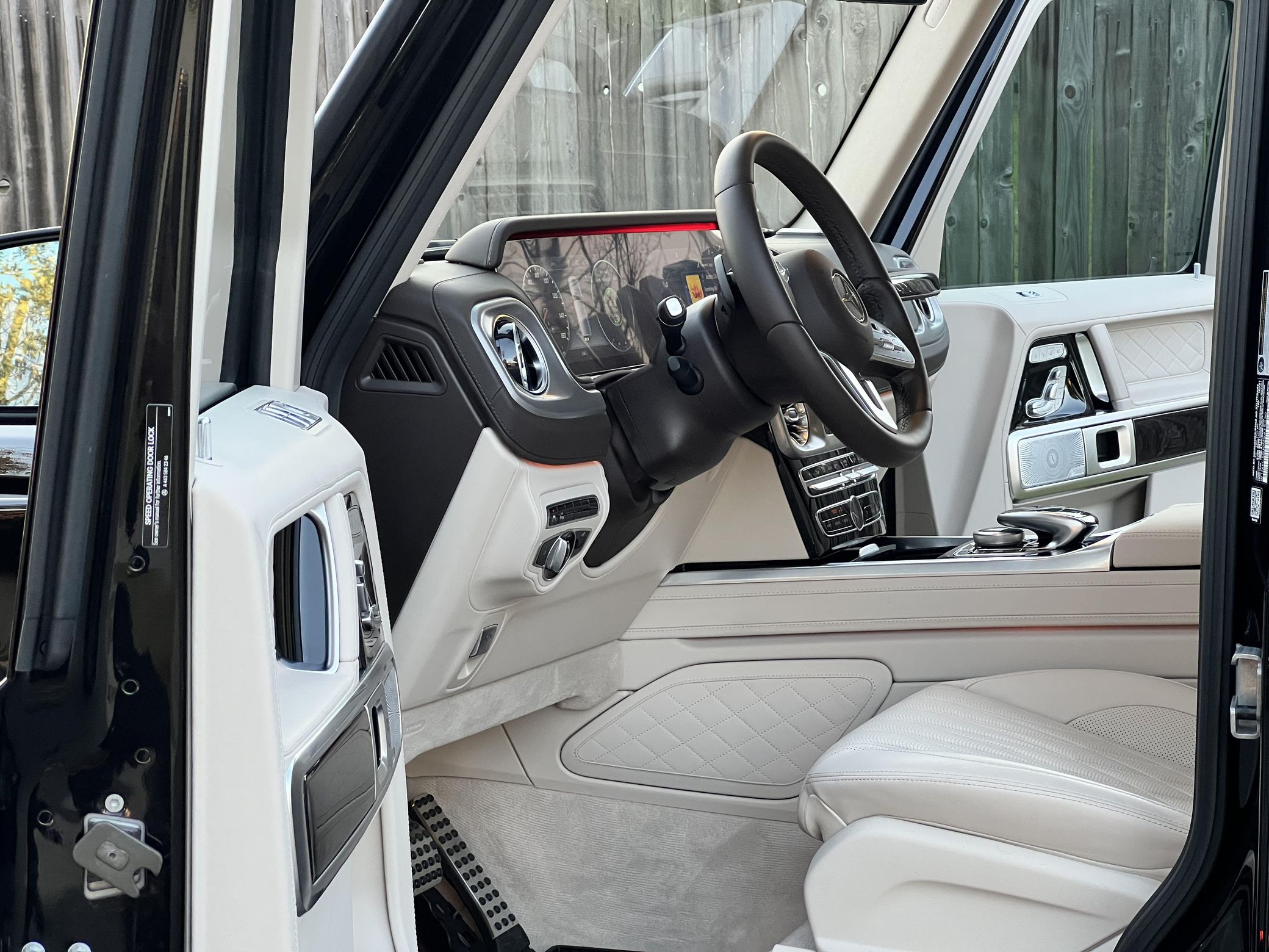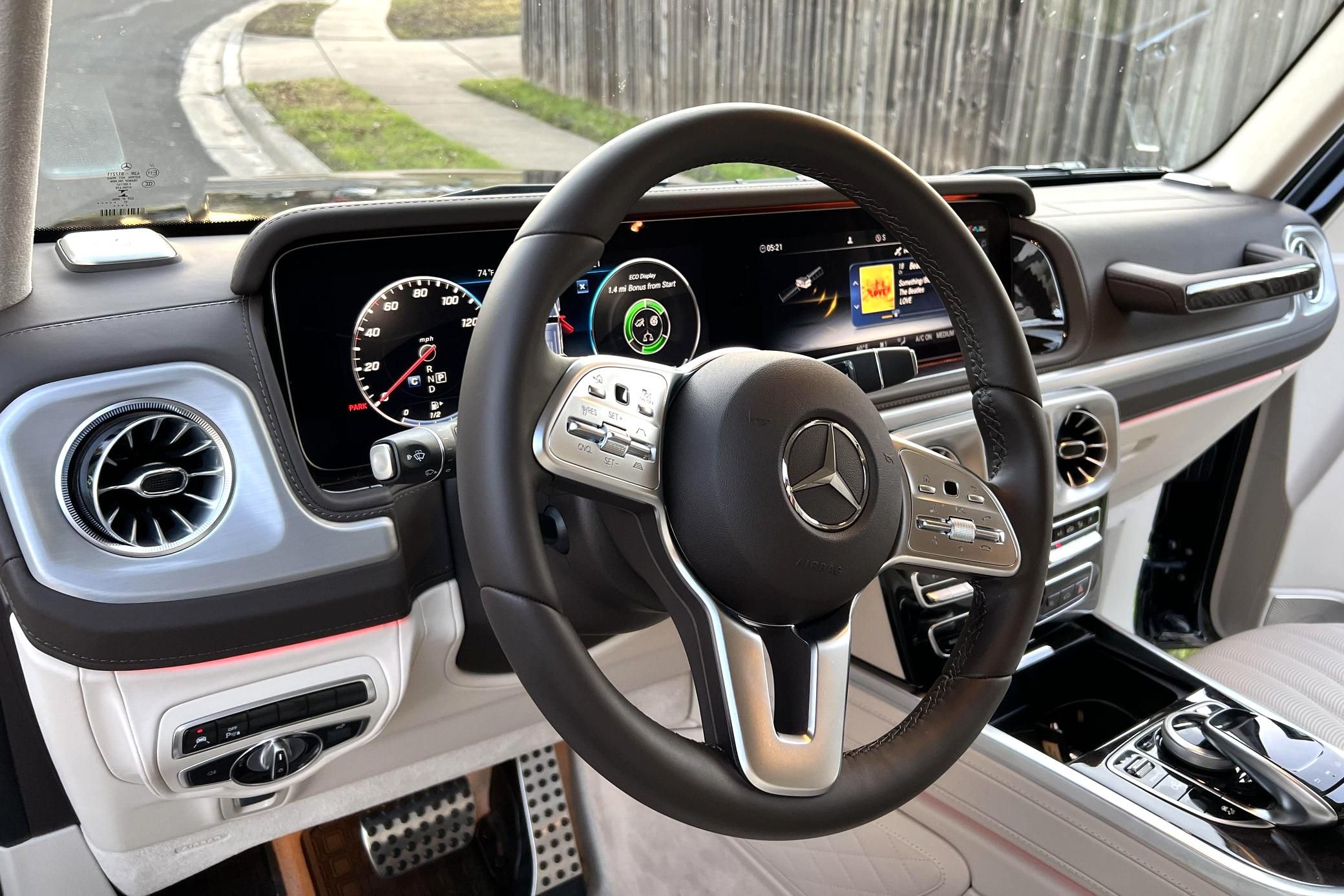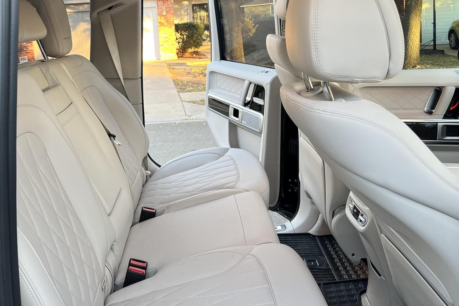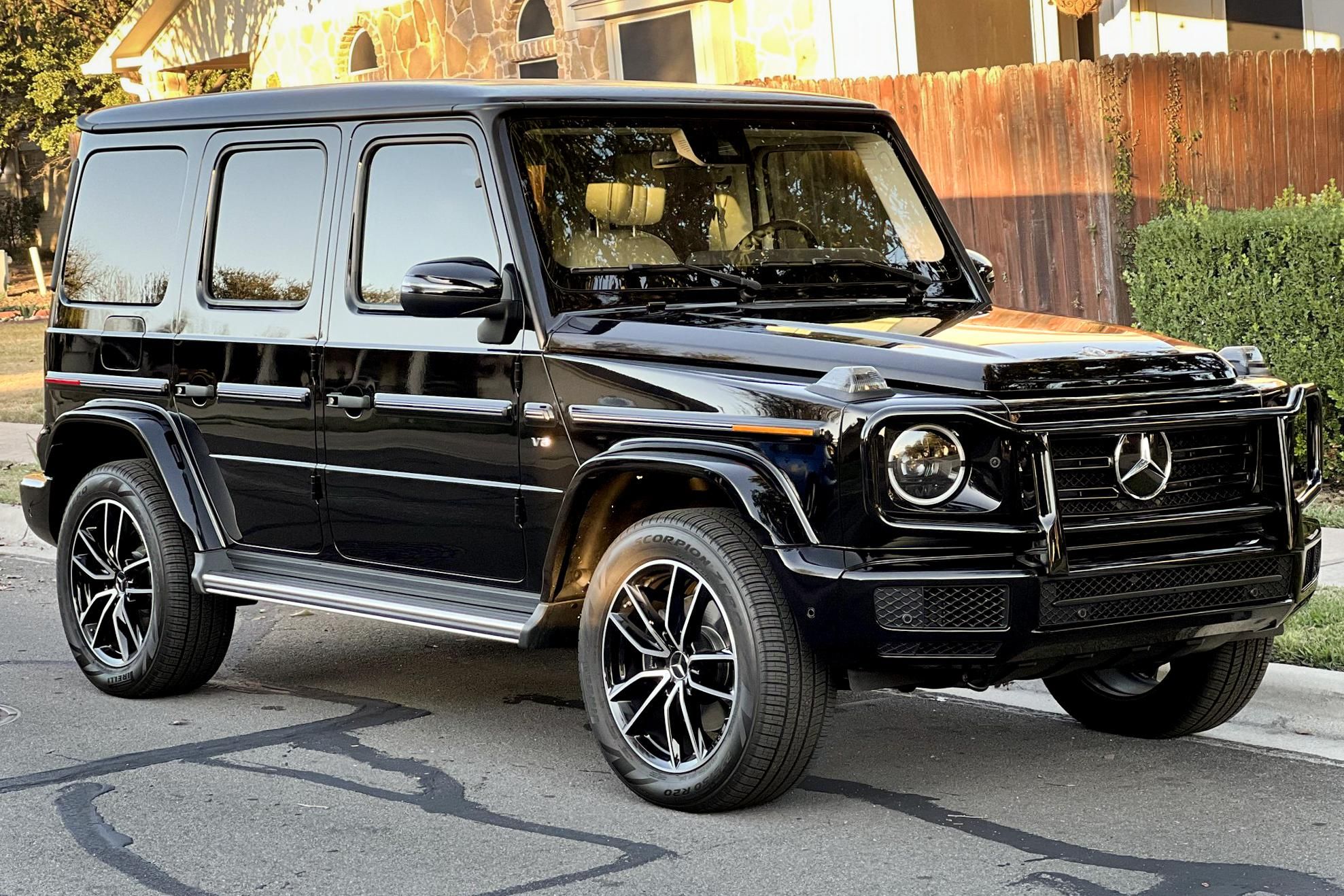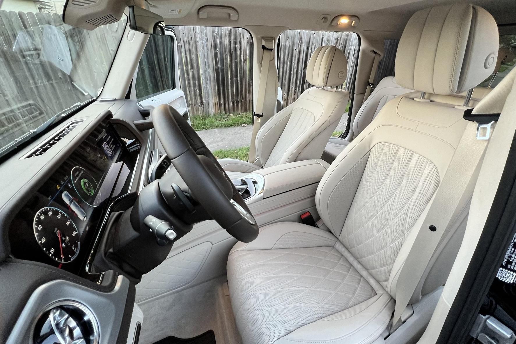 THIS… is a 2021 Mercedes-Benz G550, finished in Obsidian Black with a Macchiato Beige interior. The attached Carfax history report indicates no accidents or mileage discrepancies. According to the window sticker pictured in the photo gallery, this G550 carried a sticker price of $152,520 and came equipped with the AMG Line, Night, and Exclusive Interior Plus packages, locking differentials, adaptive damping suspension, brown ash interior trim, a Burmester sound system, and much more as detailed below. The seller reports no modifications. Mercedes-Benz gave the emblematic G-Class its first complete overhaul for the 2019 model year. Mercedes-Benz notably redesigned the frame and the steering system, and it stuffed more tech features into the cabin, but it kept the three locking differentials. Power comes from a 4.0-liter twin-turbocharged V8, rated at 416 horsepower and 450 lb-ft of torque. Output is sent to all four wheels through a 9-speed automatic transmission and a 2-speed transfer case.