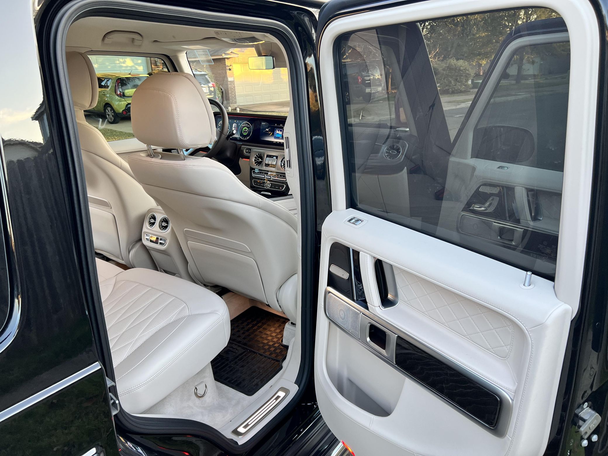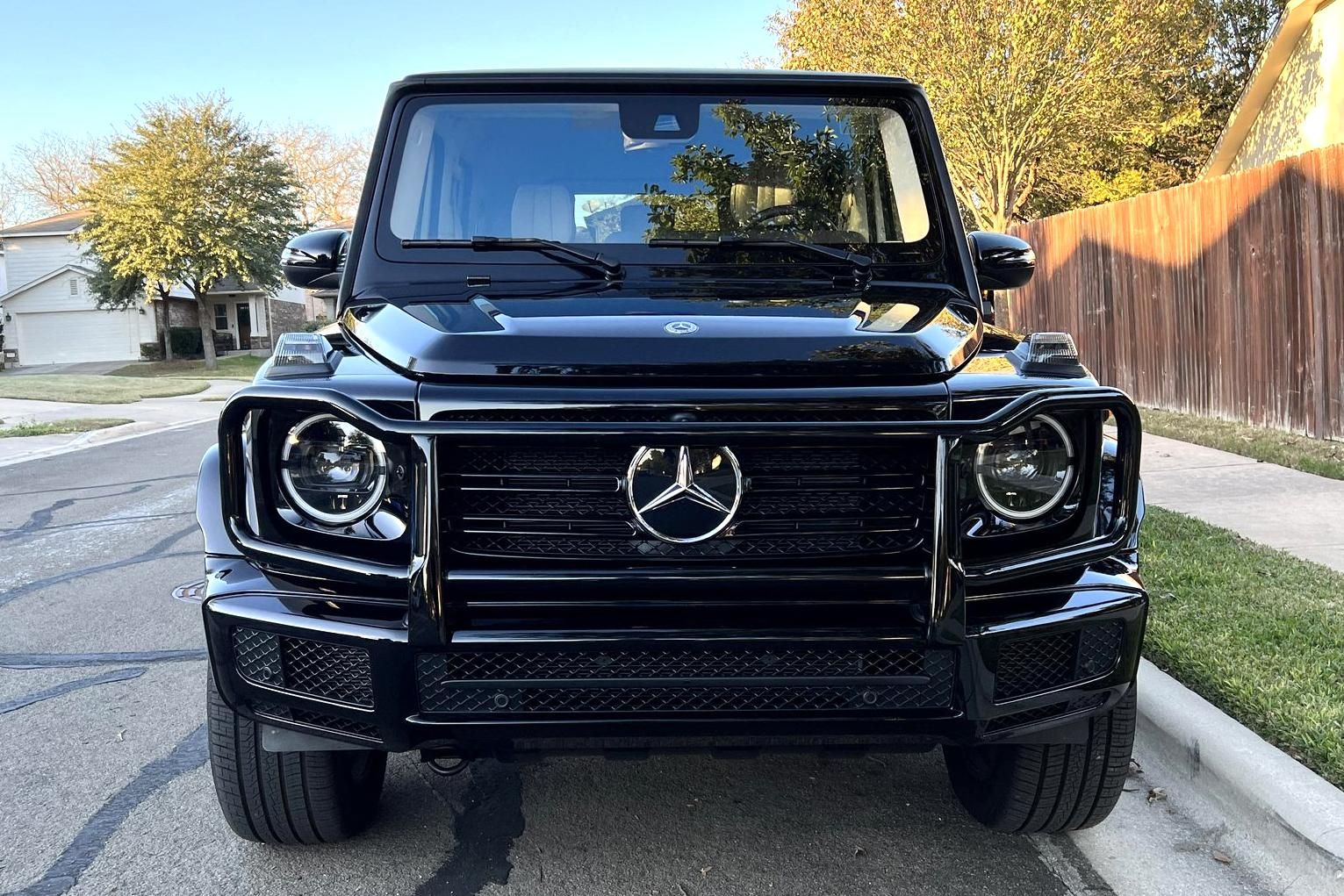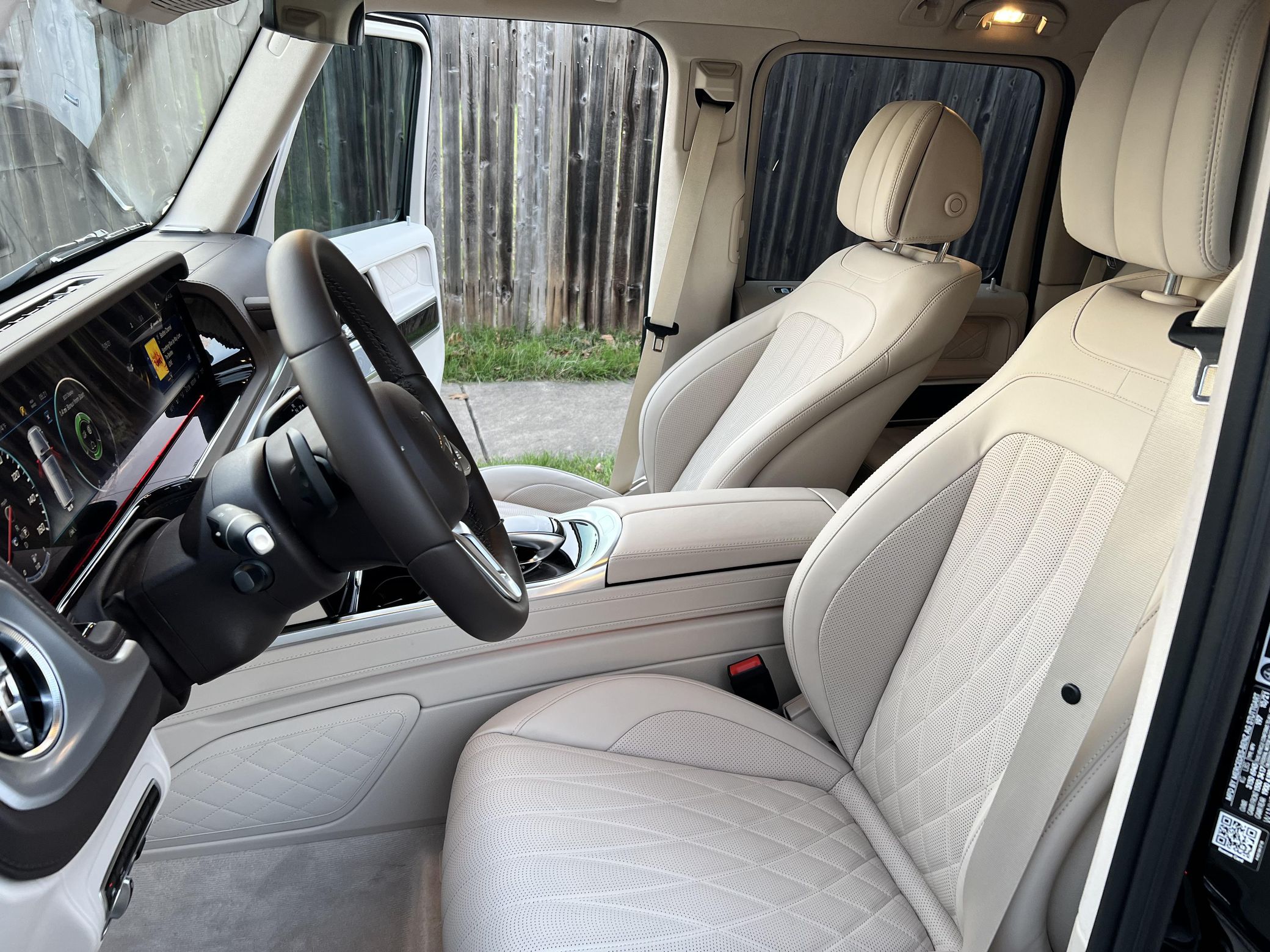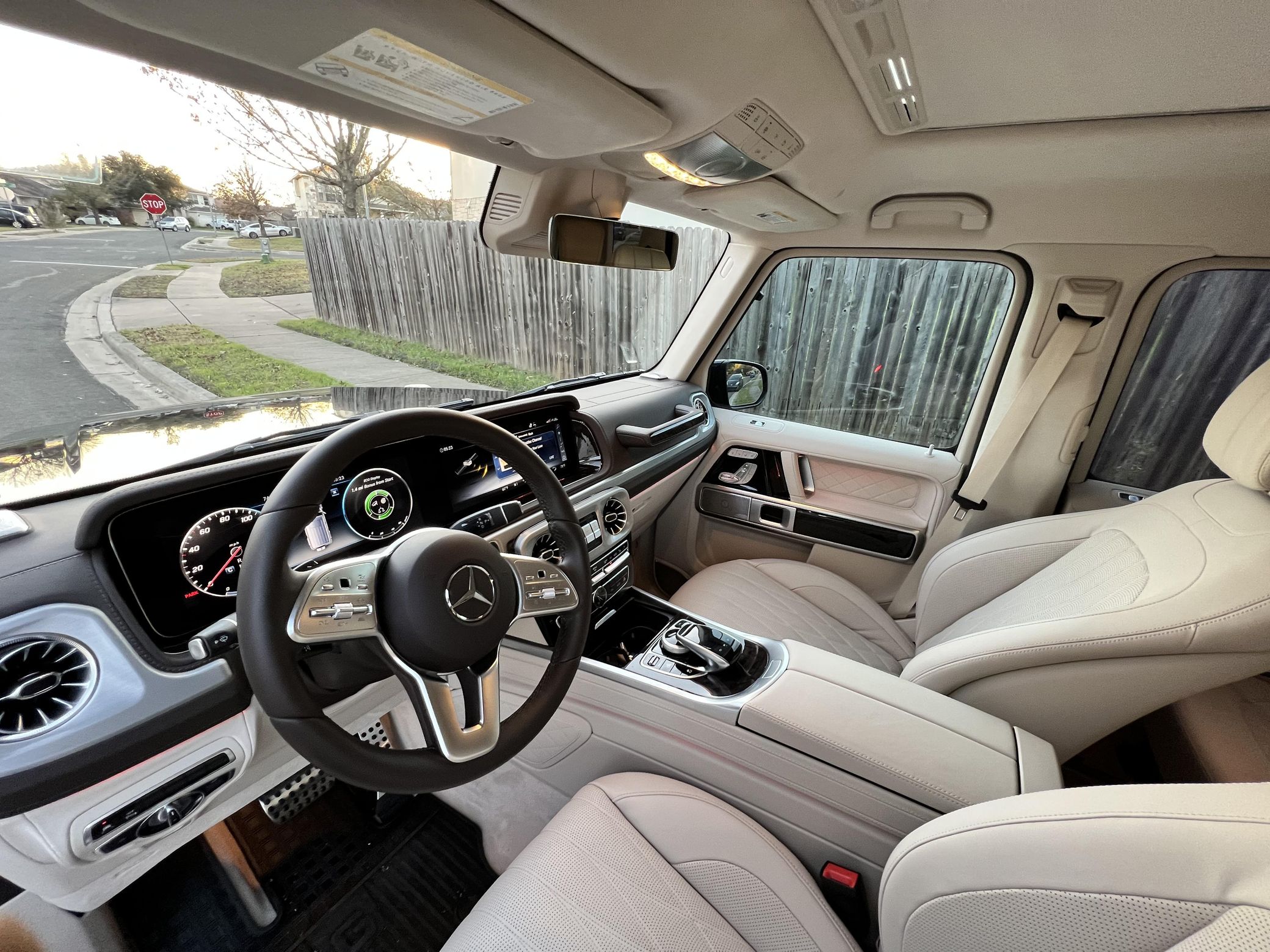 THIS… is a 2021 Mercedes-Benz G550, finished in Obsidian Black with a Macchiato Beige interior. The attached Carfax history report indicates no accidents or mileage discrepancies. According to the window sticker pictured in the photo gallery, this G550 carried a sticker price of $152,520 and came equipped with the AMG Line, Night, and Exclusive Interior Plus packages, locking differentials, adaptive damping suspension, brown ash interior trim, a Burmester sound system, and much more as detailed below. The seller reports no modifications. Mercedes-Benz gave the emblematic G-Class its first complete overhaul for the 2019 model year. Mercedes-Benz notably redesigned the frame and the steering system, and it stuffed more tech features into the cabin, but it kept the three locking differentials. Power comes from a 4.0-liter twin-turbocharged V8, rated at 416 horsepower and 450 lb-ft of torque. Output is sent to all four wheels through a 9-speed automatic transmission and a 2-speed transfer case.