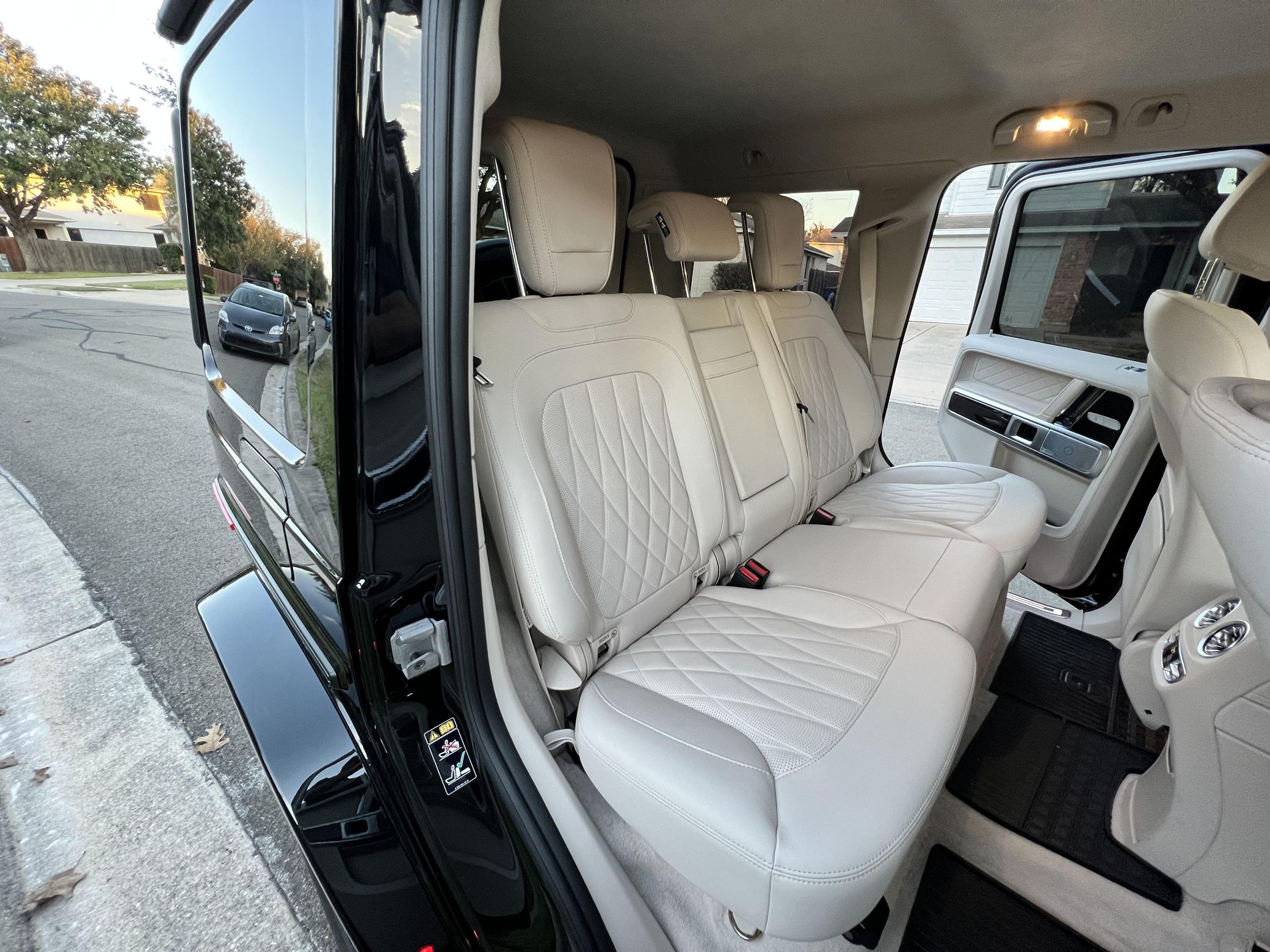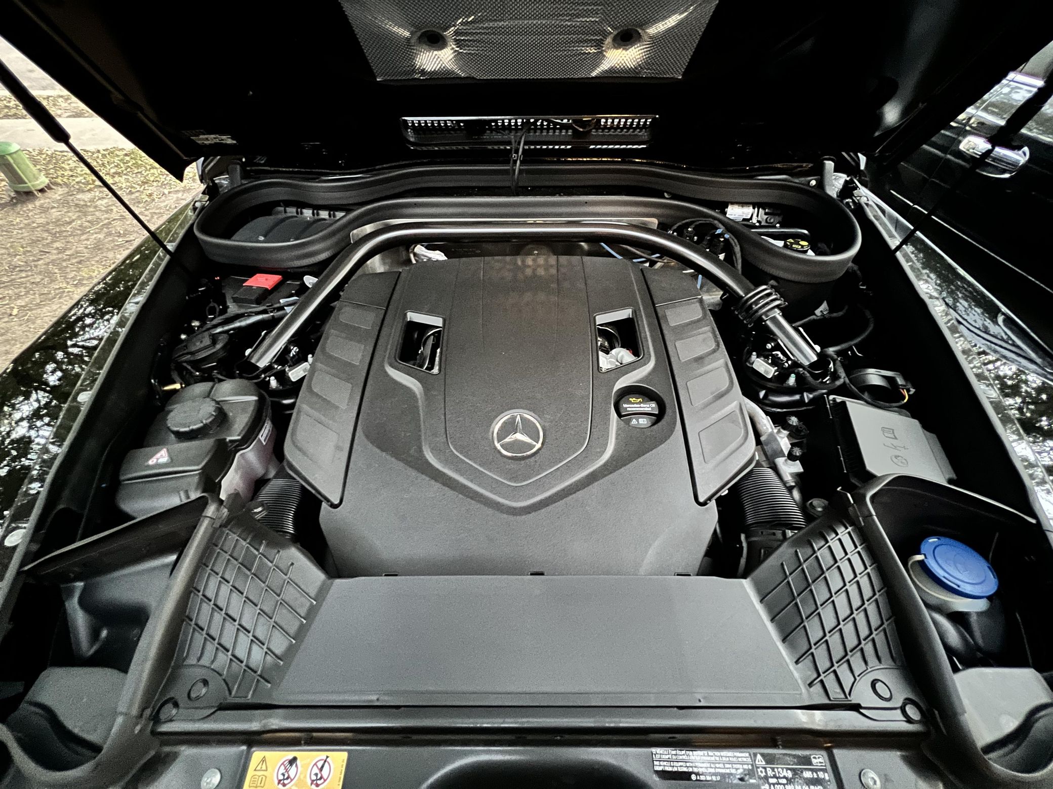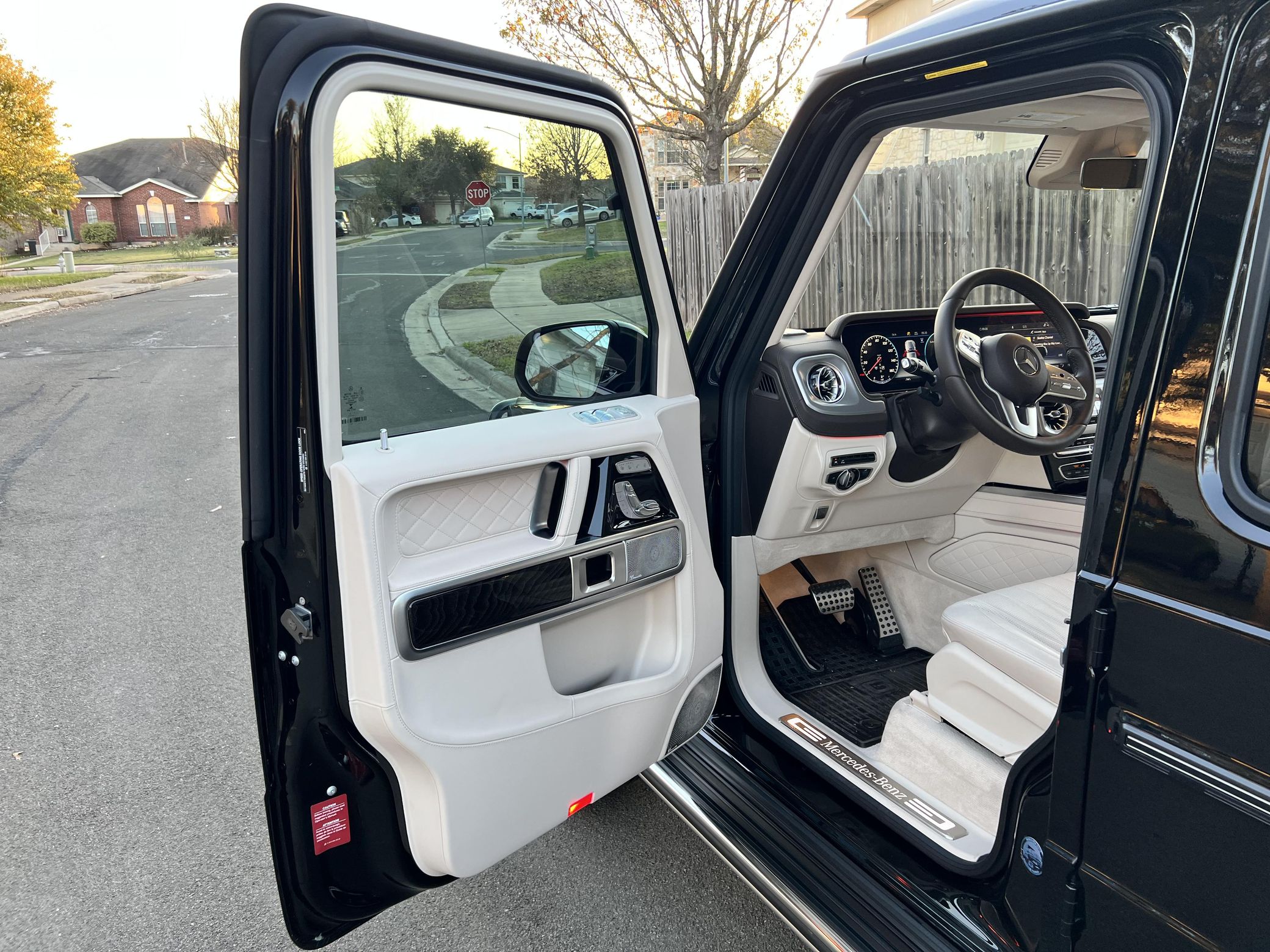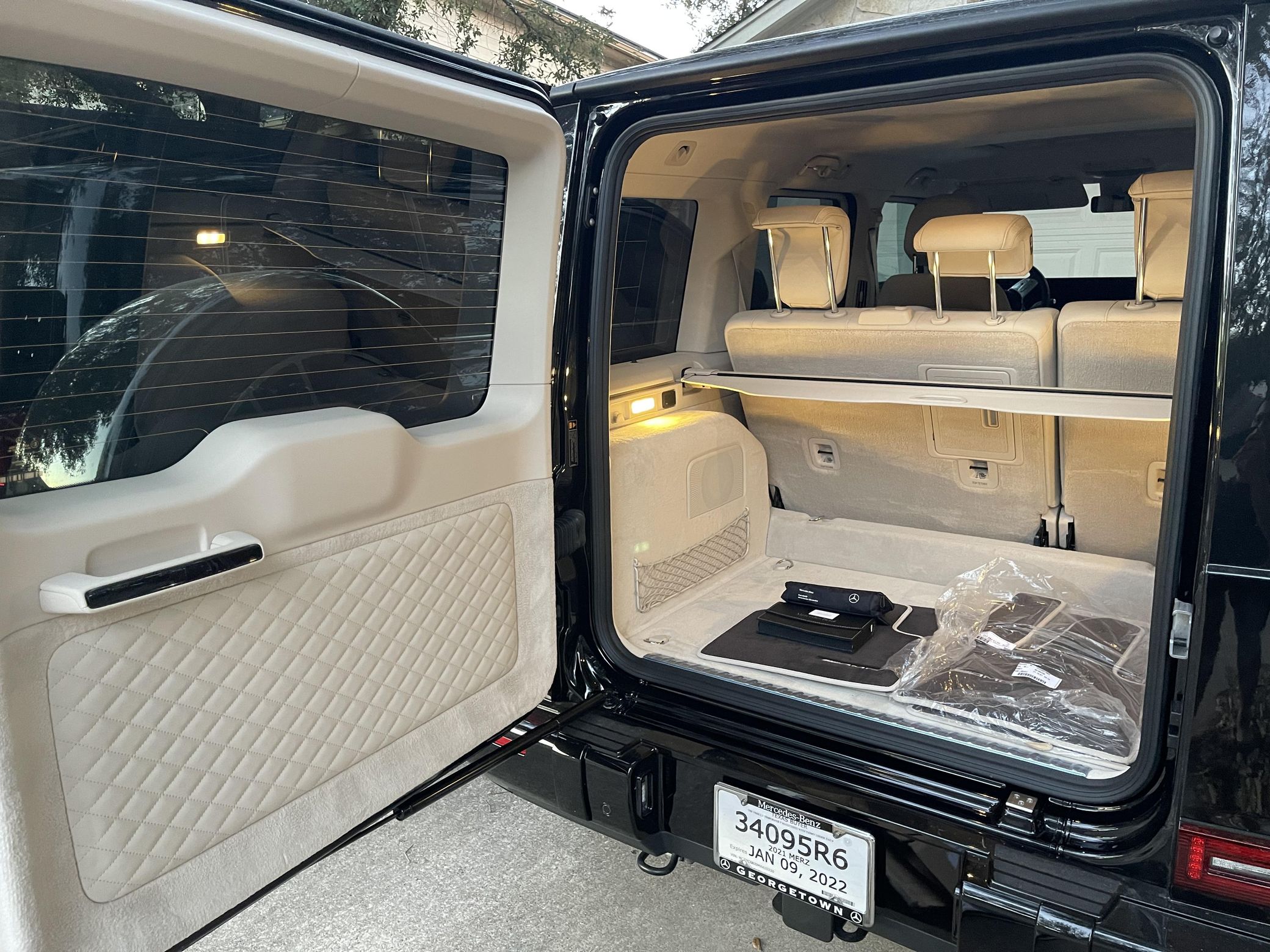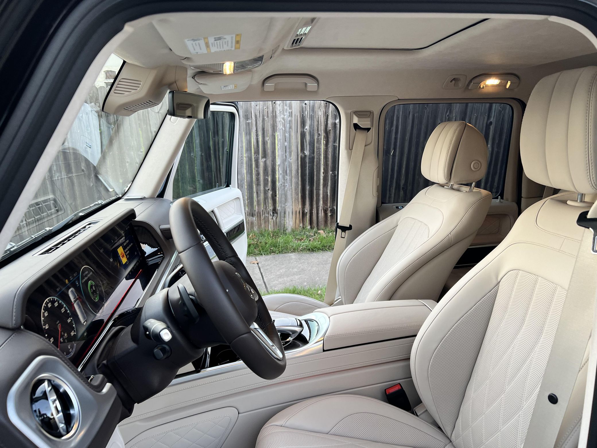 THIS… is a 2021 Mercedes-Benz G550, finished in Obsidian Black with a Macchiato Beige interior. The attached Carfax history report indicates no accidents or mileage discrepancies. According to the window sticker pictured in the photo gallery, this G550 carried a sticker price of $152,520 and came equipped with the AMG Line, Night, and Exclusive Interior Plus packages, locking differentials, adaptive damping suspension, brown ash interior trim, a Burmester sound system, and much more as detailed below. The seller reports no modifications. Mercedes-Benz gave the emblematic G-Class its first complete overhaul for the 2019 model year. Mercedes-Benz notably redesigned the frame and the steering system, and it stuffed more tech features into the cabin, but it kept the three locking differentials. Power comes from a 4.0-liter twin-turbocharged V8, rated at 416 horsepower and 450 lb-ft of torque. Output is sent to all four wheels through a 9-speed automatic transmission and a 2-speed transfer case.