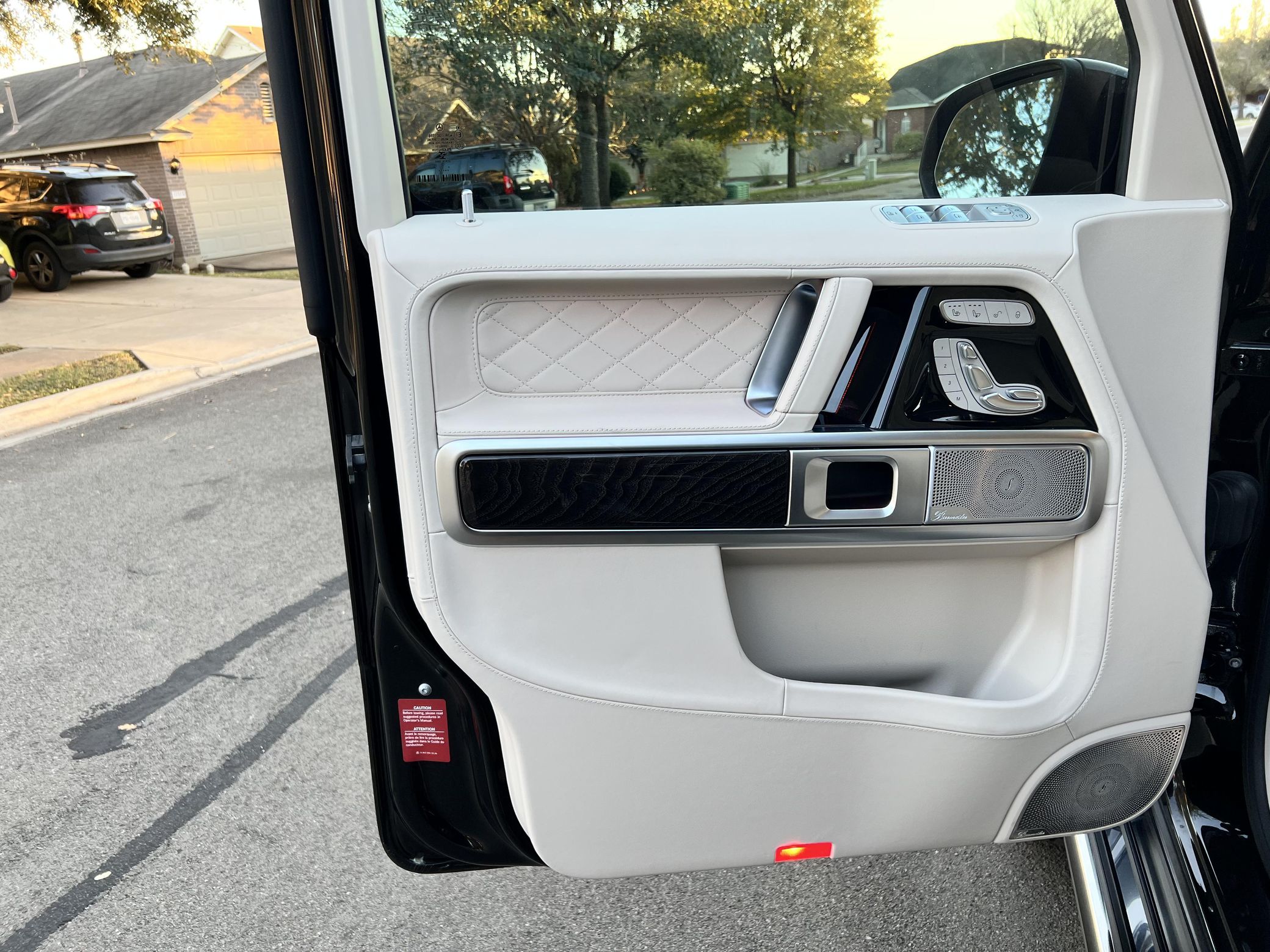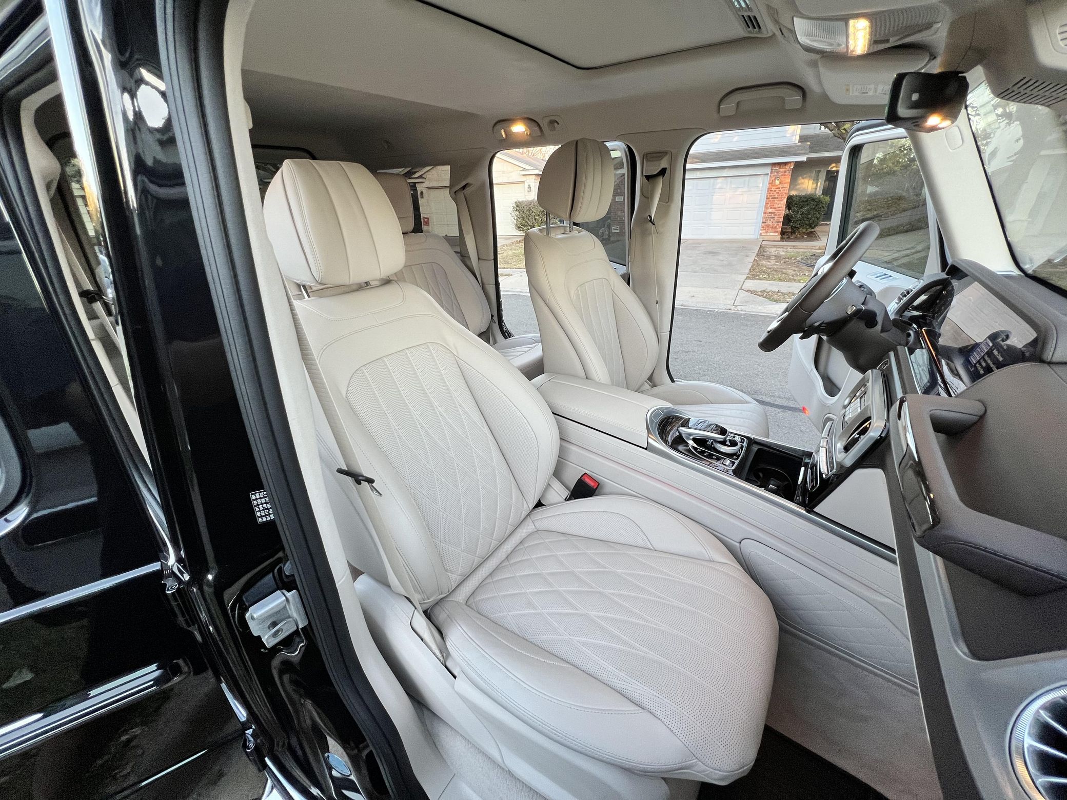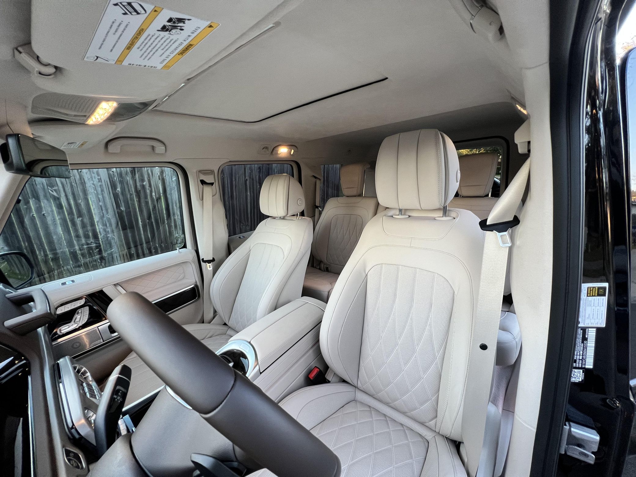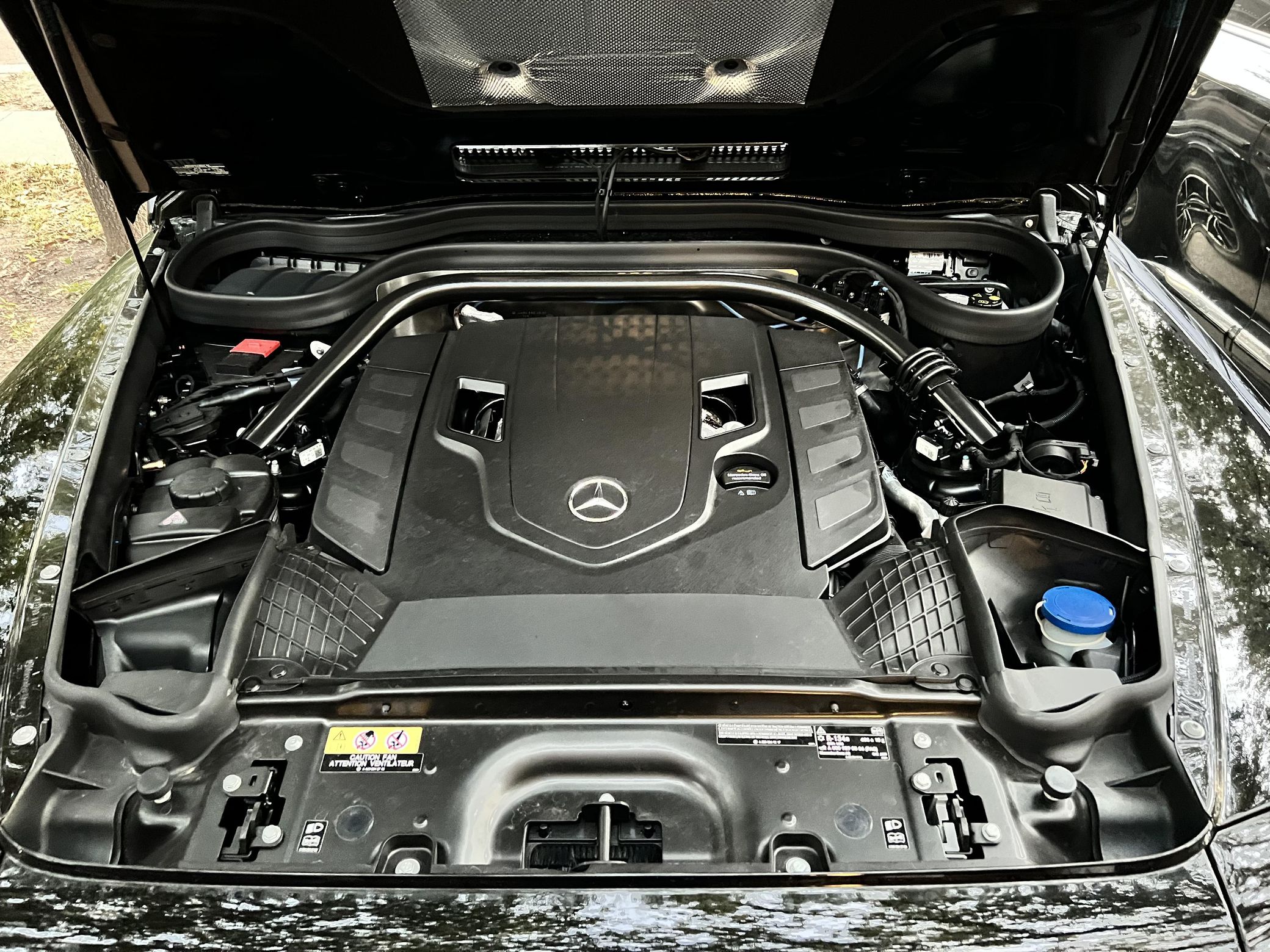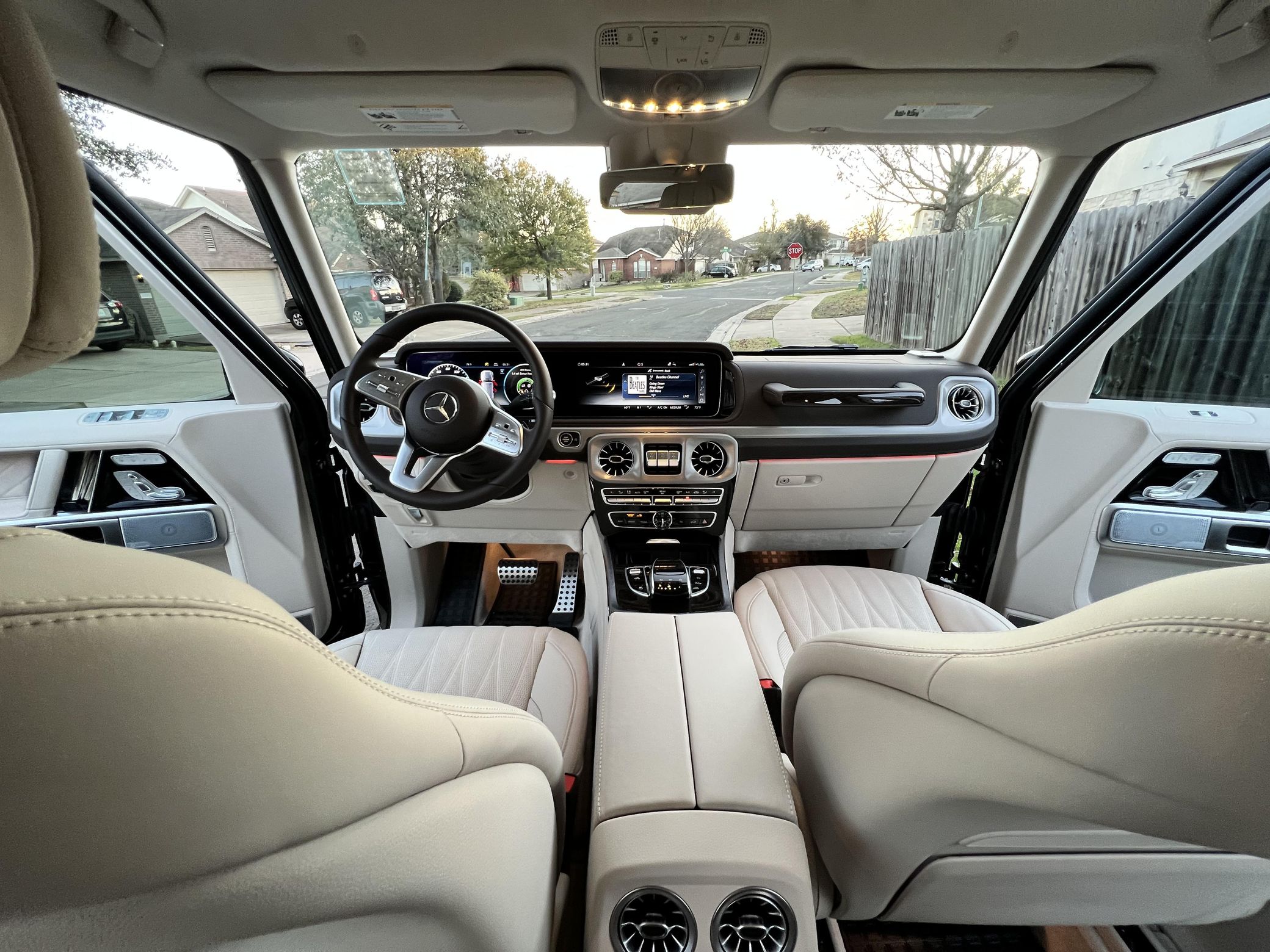 THIS… is a 2021 Mercedes-Benz G550, finished in Obsidian Black with a Macchiato Beige interior. The attached Carfax history report indicates no accidents or mileage discrepancies. According to the window sticker pictured in the photo gallery, this G550 carried a sticker price of $152,520 and came equipped with the AMG Line, Night, and Exclusive Interior Plus packages, locking differentials, adaptive damping suspension, brown ash interior trim, a Burmester sound system, and much more as detailed below. The seller reports no modifications. Mercedes-Benz gave the emblematic G-Class its first complete overhaul for the 2019 model year. Mercedes-Benz notably redesigned the frame and the steering system, and it stuffed more tech features into the cabin, but it kept the three locking differentials. Power comes from a 4.0-liter twin-turbocharged V8, rated at 416 horsepower and 450 lb-ft of torque. Output is sent to all four wheels through a 9-speed automatic transmission and a 2-speed transfer case.