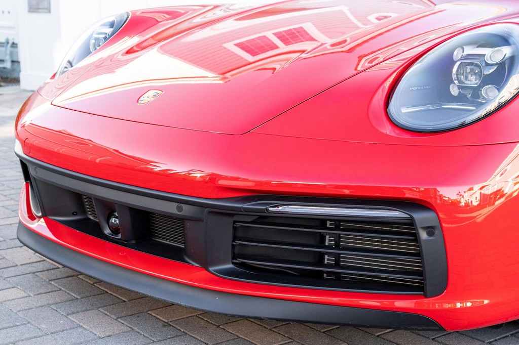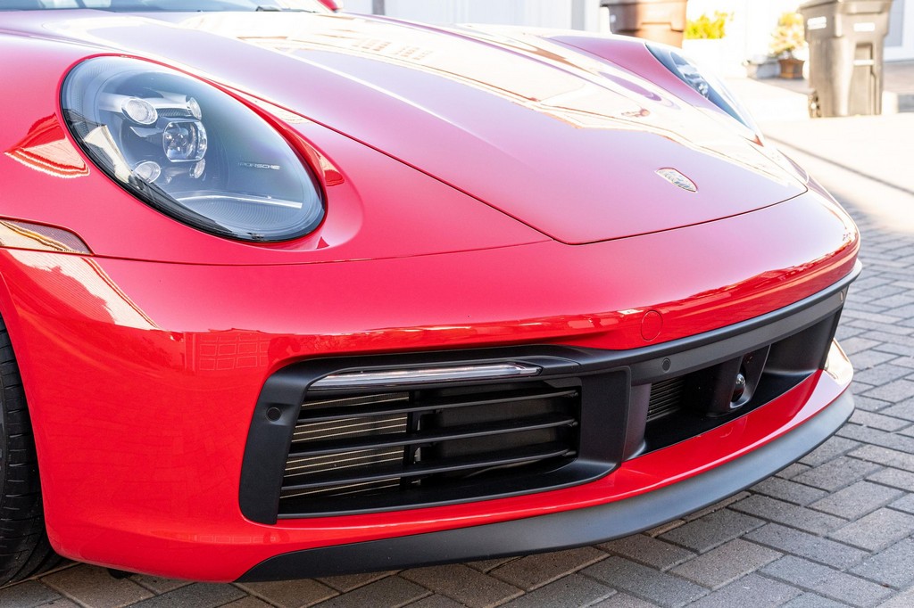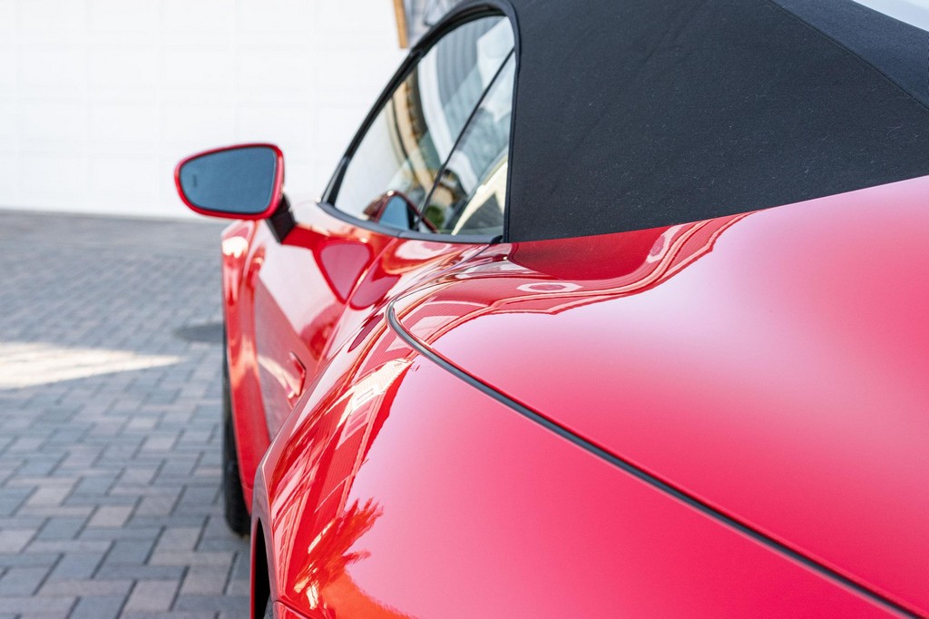 THIS… is a 2021 Porsche 911 Carrera S Cabriolet, finished in Guards Red with a black soft top, and a black interior. The attached Carfax history report lists no accidents or mileage inconsistencies. It also shows that this is a one-owner car that’s been California-owned since new. A partial list of notable equipment includes the Sport Package which features the Sport Chrono Package, a sport exhaust system, and Porsche Active Suspension Management (PASM) sport suspension. Other equipment includes 21-inch alloy wheels, 14-way power seats with memory package, a Bose sound system, Lane Change Assist (LCA), Adaptive Cruise Control (ACC), and more detailed below. Porsche released the “992” generation of the 911 for 2020. Slightly longer and wider than its predecessor, it received evolutionary design updates and much more significant changes under the body, including revised engines and an 8-speed automatic transmission. Power for this 911 comes from a twin-turbocharged 3.0-liter flat-6 engine, rated at 443 horsepower and 390 lb-ft of torque. Output is sent to the rear wheels via an 8-speed Porsche Doppelkupplung (PDK) transmission linked to a pair of shift paddles.