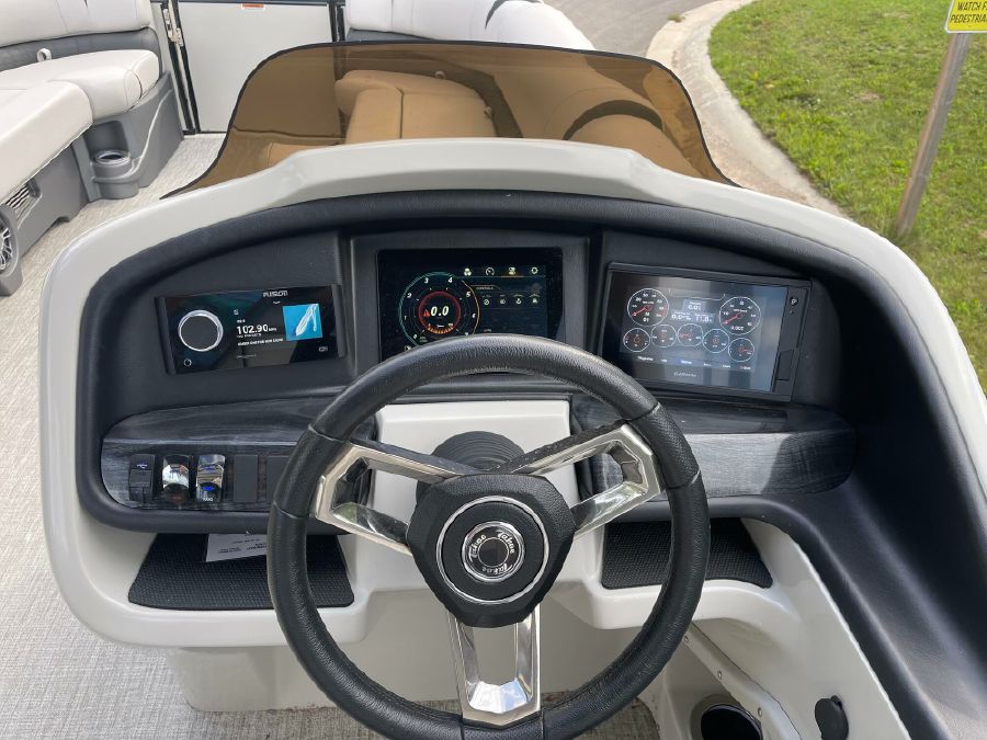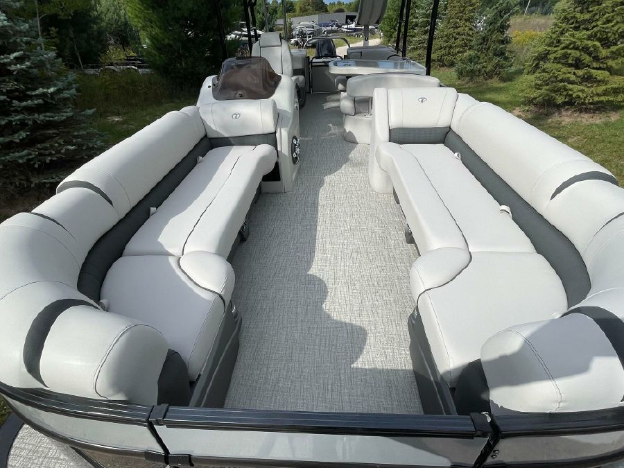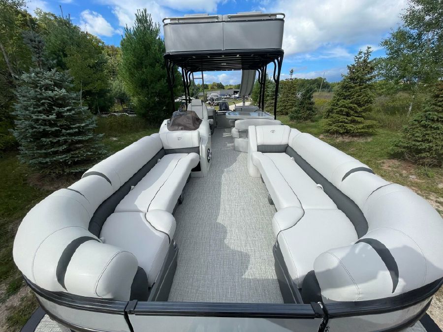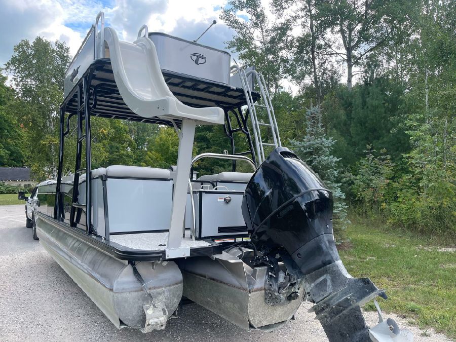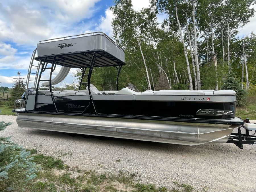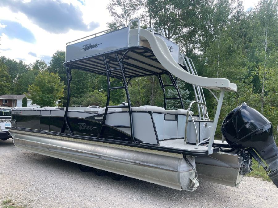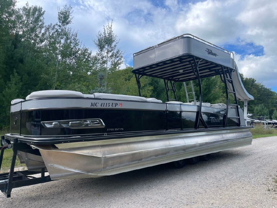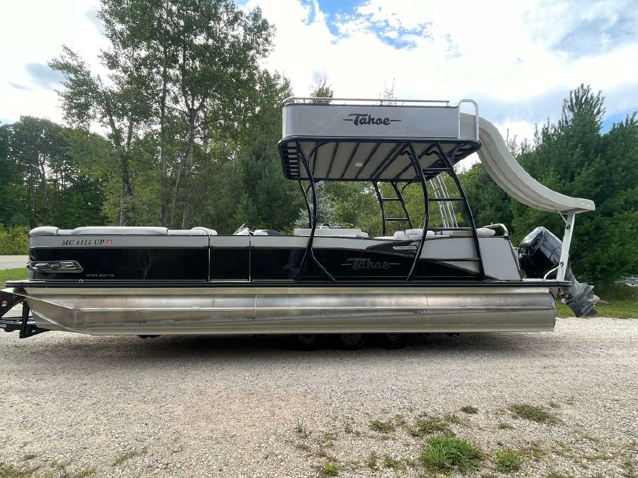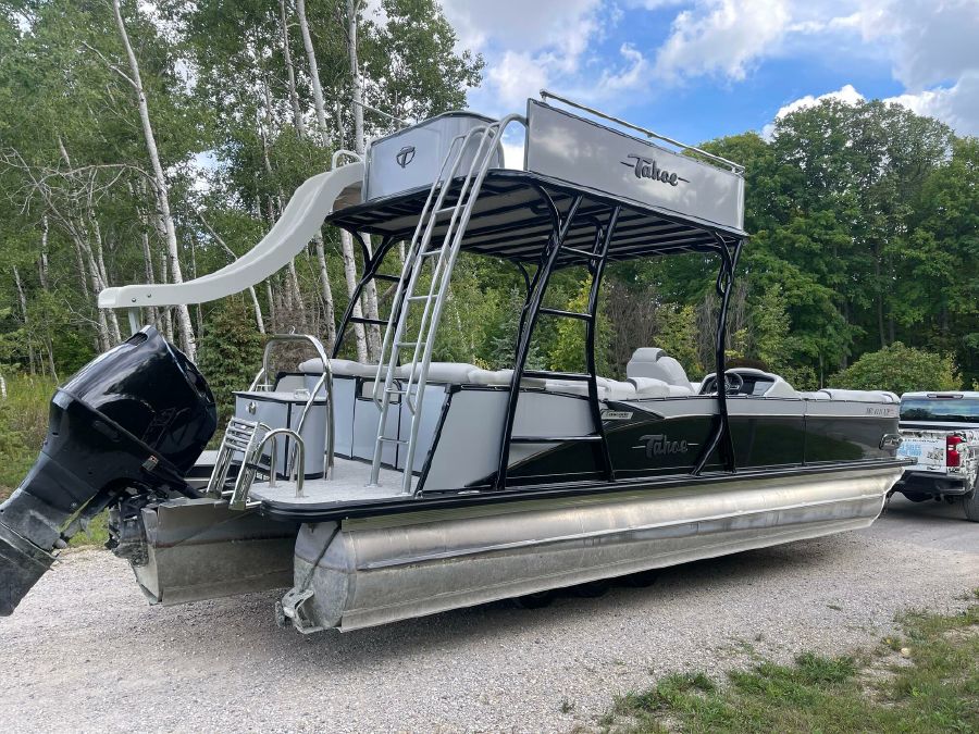 2021 Tahoe 2785 Cascade Platinum Entertainer Fun Ship, LIKE NEW BOAT with only 22.8hrs on the Double Decker tri-toon powered by a Suzuki 200hp motor. Transferable Tahoe & Suzuki warranty. Boat is in mint condition, just needs an interior detail. Very loaded Cascade Platinum. Options include Smart 80 touchscreen dash with Garmin, Premium sound system (amps & sub), electric power assist steering, RBG light package (cup holders, speakers, table, under rub rail & under water lights), blackout package and upgraded DECO uprights. Boat has full mooring cover for both top & bottom deck.