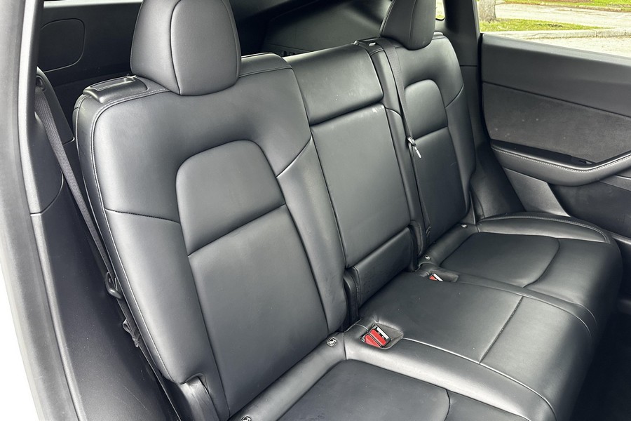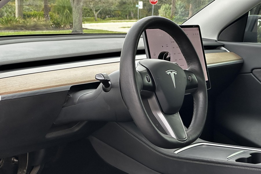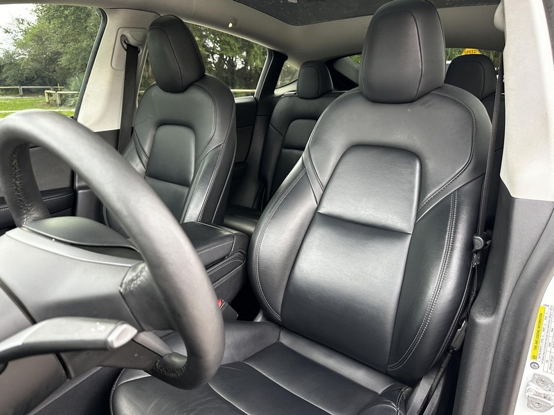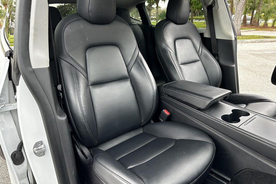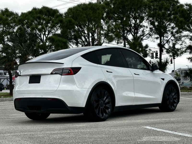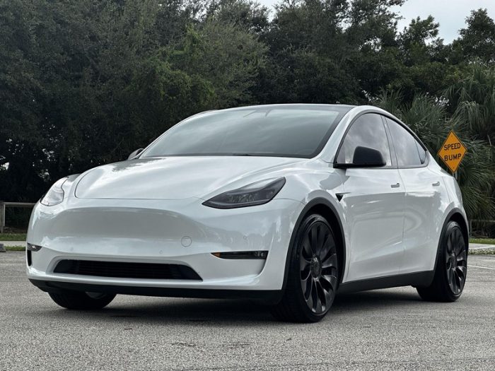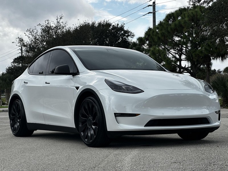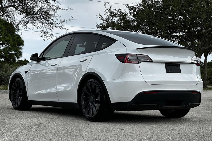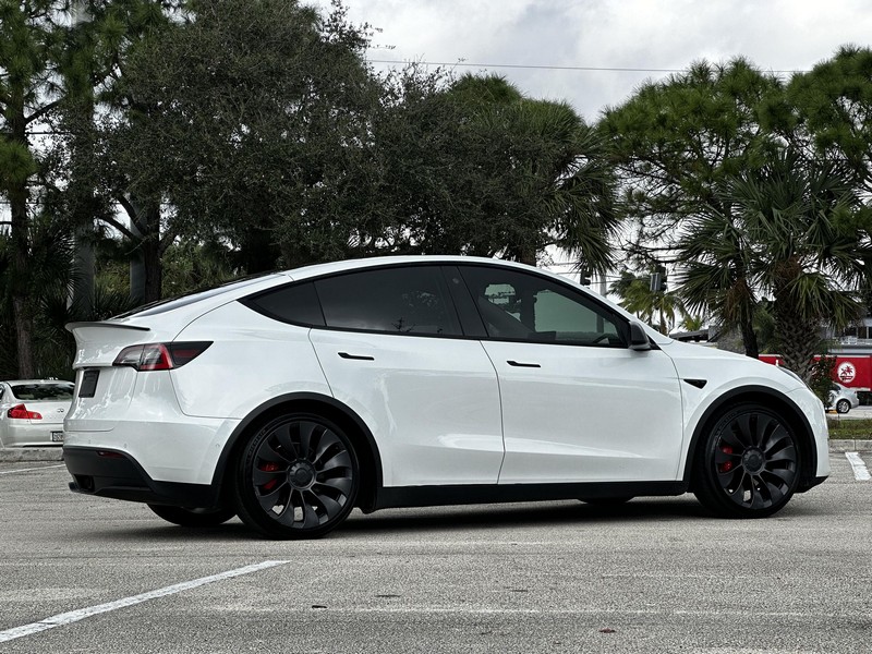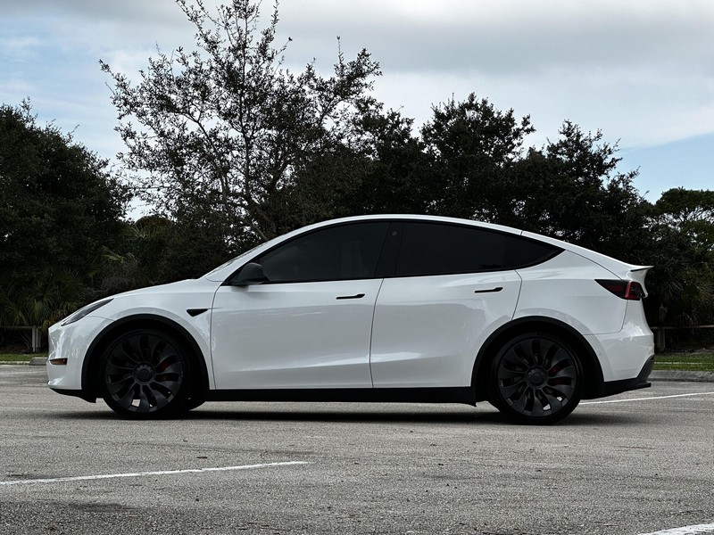 THIS… is a 2021 Tesla Model Y Performance, finished in Pearl White with a black interior. Factory equipment includes 21-inch “Überturbine” wheels, a Performance-specific braking system, a Performance-specific lowered suspension system, a panoramic glass roof, a 15-inch touchscreen for the infotainment system, a premium sound system, Autopilot technology, and the Full Self-Driving computer. The selling dealer reports that modifications are limited to tinted windows and the removal of the front and rear emblems. Power comes from a pair of electric motors, which draw electricity from a 75-kilowatt-hour lithium-ion battery pack to zap the four wheels via 450 horsepower and 471 lb-ft of torque, according to third-party estimates. In 2020, the EPA gave the Model Y Performance a maximum driving range rating of 303 miles when fitted with 21-inch wheels.