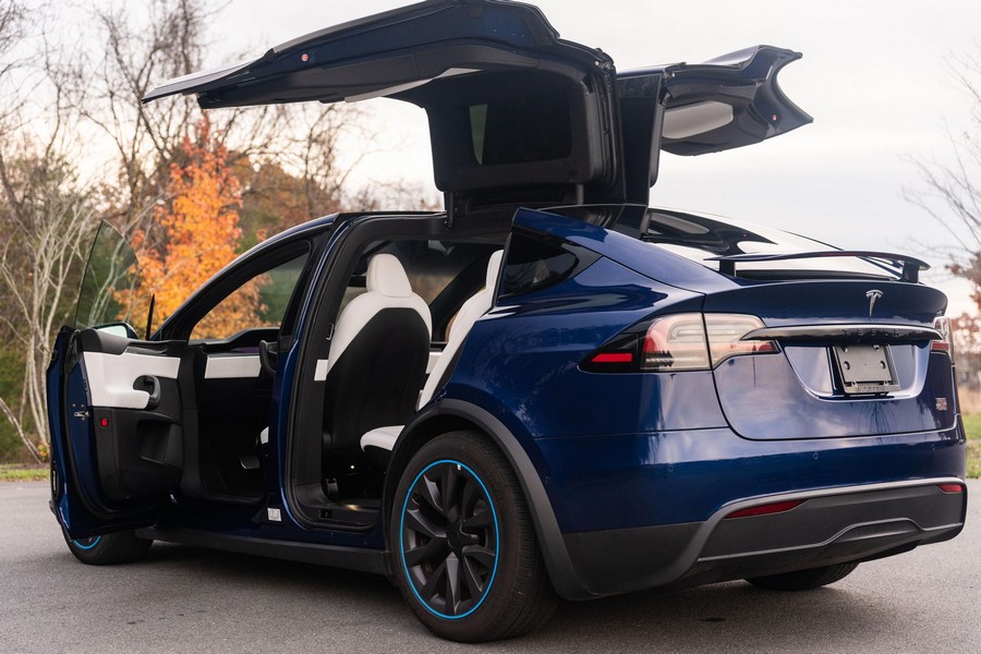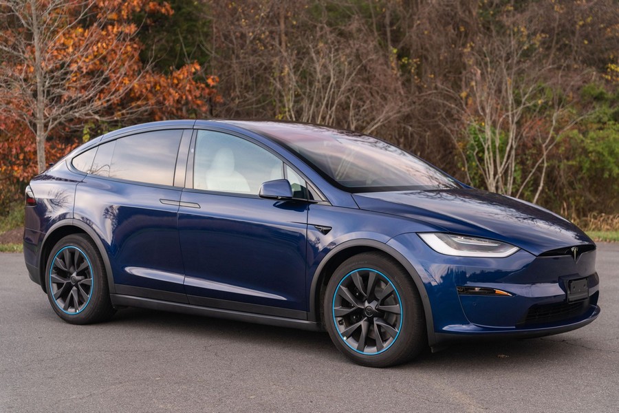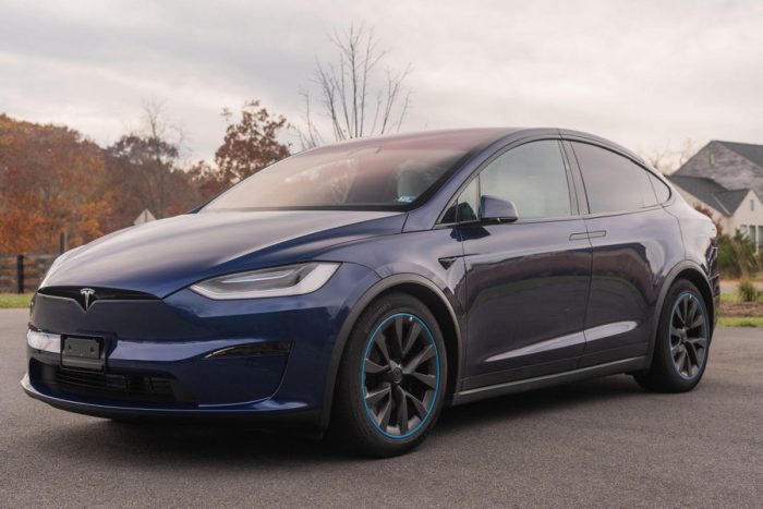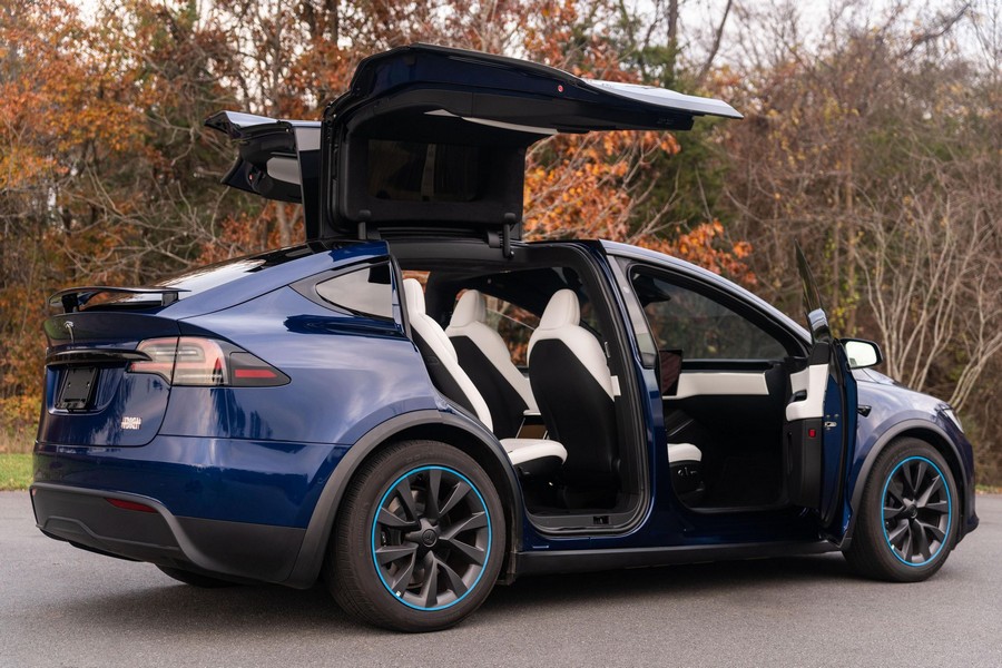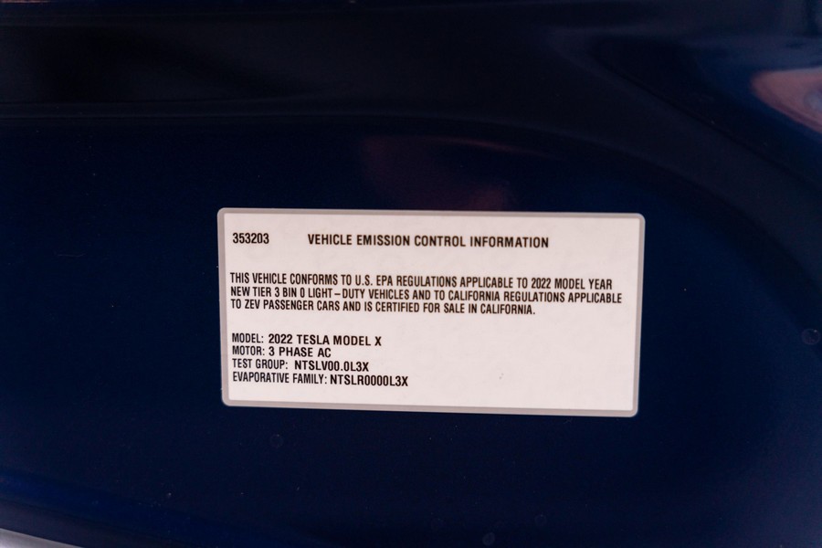 Make:Tesla Model:Model X Mileage:2,300 Engine:Triple Electric Motors Drivetrain:4WD/AWD Transmission:Automatic Body Style:SUV/Crossover Exterior Color:Deep Blue Metallic Interior Color:Black/White THIS… is a 2022 Tesla Model X Plaid, finished in Deep Blue Metallic with a black and white interior. The attached Carfax history report lists no accidents in this EV’s brief past. Factory equipment includes 20-inch “Cyberstream” wheels, a rear spoiler, carbon fiber interior trim, heated, ventilated, and power-adjustable front seats, heated second-row seats, heated and folding third-row seats, a Yoke steering wheel, a panoramic windshield, a 17-inch touchscreen for the infotainment system, and a 22-speaker sound system. Modifications reported by the seller are limited to Rimsavers on the wheels. Power comes from three electric motors, which draw electricity from a 100-kilowatt-hour lithium-ion battery pack to zap the four wheels with 1,020 horsepower. Fitted with 20-inch wheels, the Model X Plaid earned a maximum driving range rating of 333 miles from the EPA. Equipment A window sticker is pictured in the gallery, and a partial list of notable equipment includes: -20-inch “Cyberstream” wheels -LED exterior lighting -Rear spoiler -Premium interior -Carbon fiber interior trim -Heated, ventilated, and power-adjustable front seats -Heated second-row seats -Heated and folding third-row seats -Yoke steering wheel -12.3-inch digital instrument cluster -2 inductive charging pads -Panoramic windshield -17-inch touchscreen for the infotainment system -8-inch rear touchscreen -22-speaker sound system -Navigation system -Autopilot technology Modifications -Rimsavers on the wheels Recent Service History The seller states this Model X has not required service due to its low mileage. Other Items Included in Sale -2 key cards and 2 key fobs -Owner’s manual -Window sticker -Trailer hitch kit (including storage case) -Tesla-branded screen-cleaning cloth -Rubber floor and trunk mats -Charging cables and adapters
